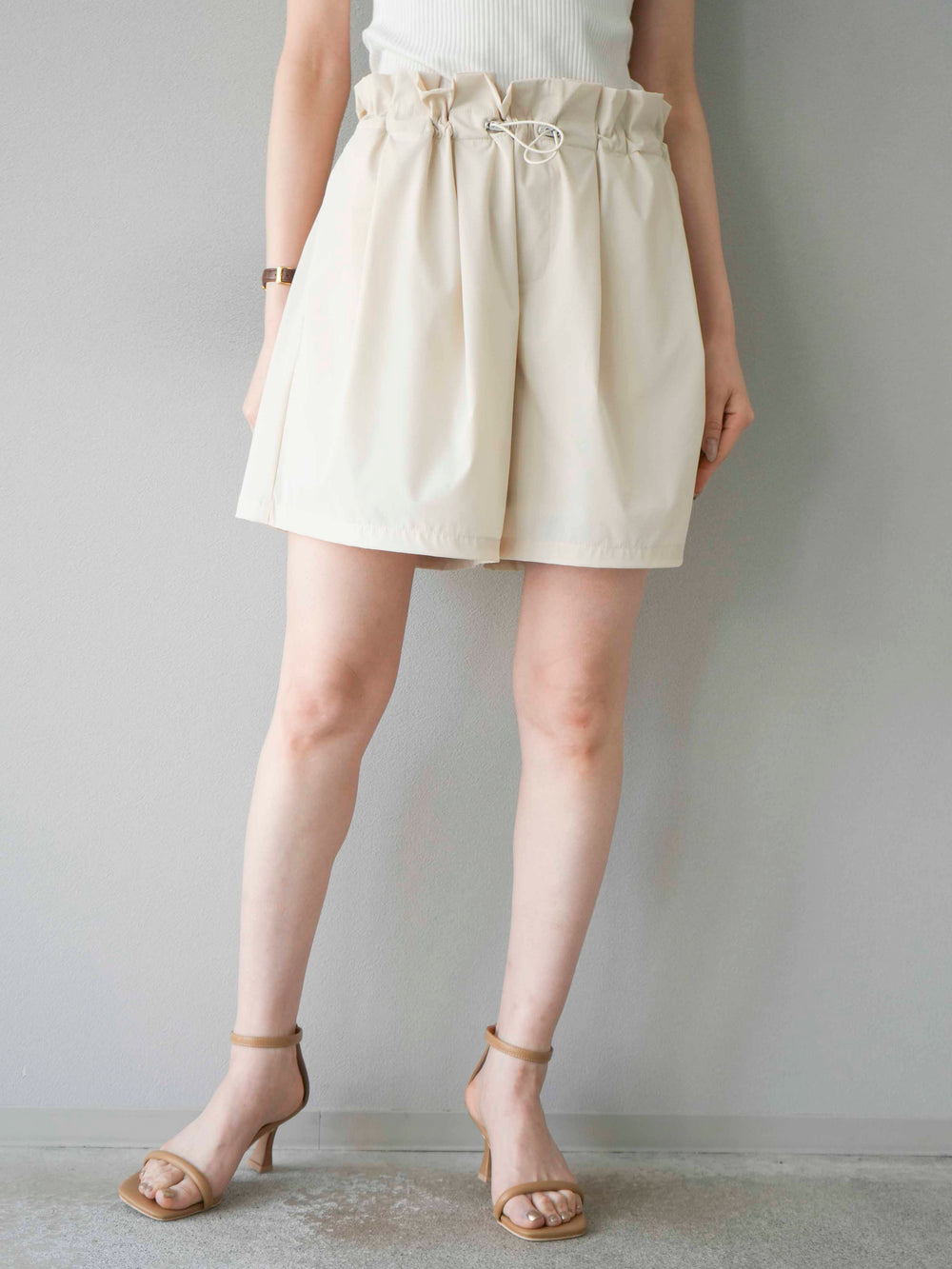 [預購] ICE TOUCH 荷葉邊褶皺短褲/米白色