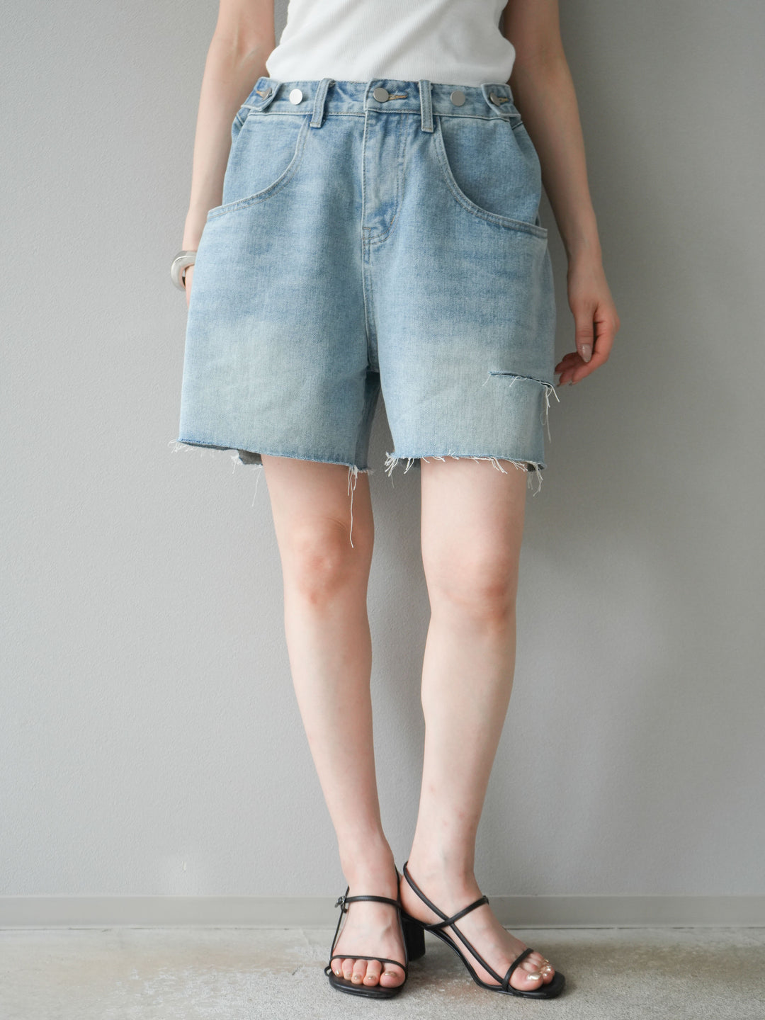 【預購】寬版牛仔褲配束腹帶/淺藍