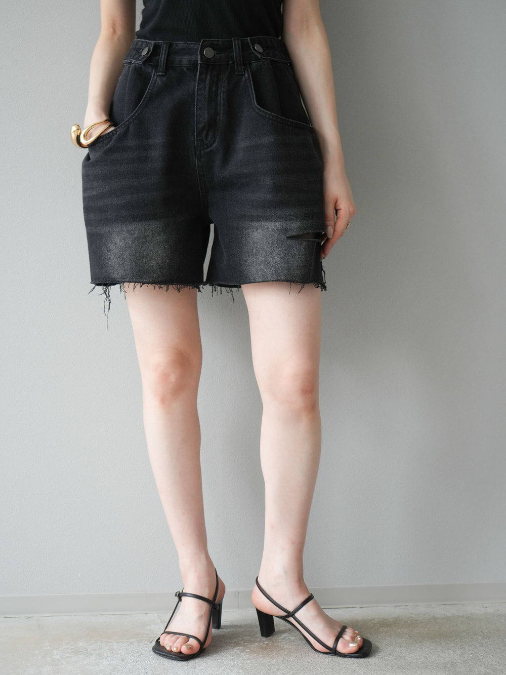 [預購] ICE TOUCH 荷葉邊褶皺短褲/黑色