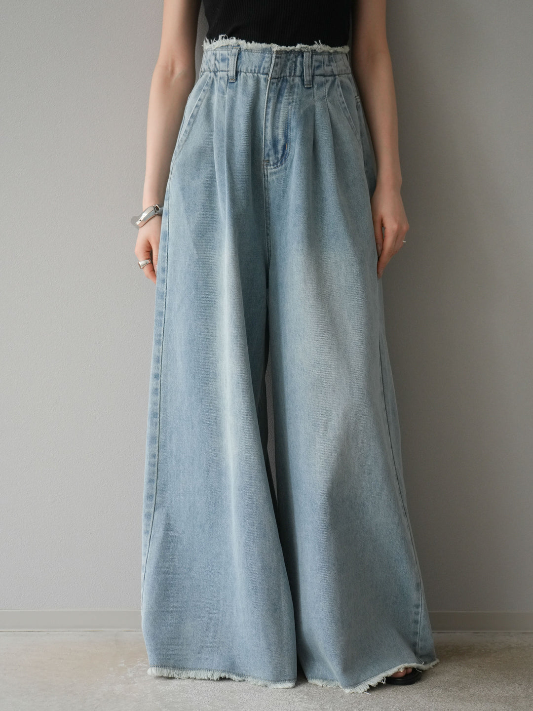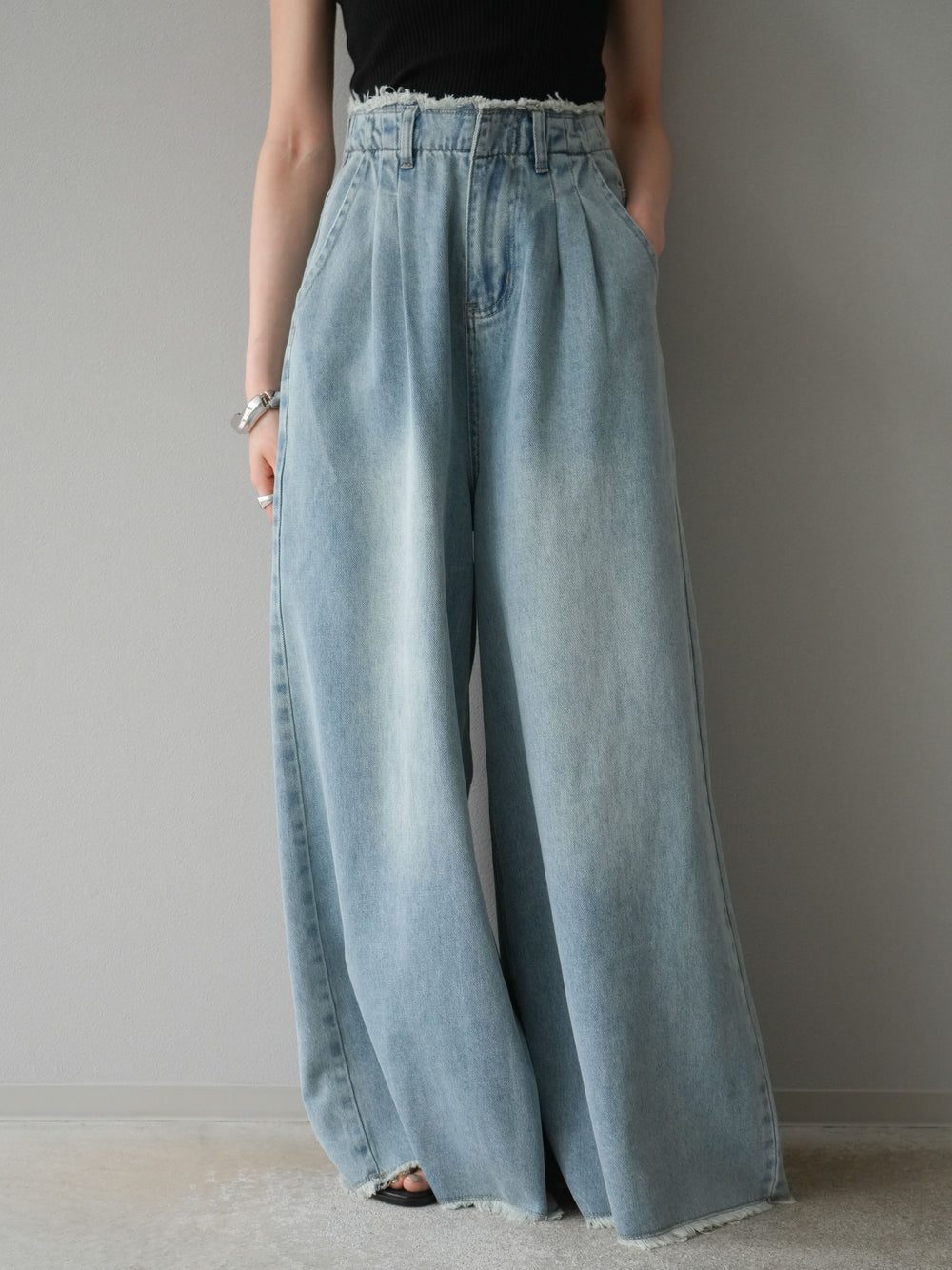 【預購】流蘇高腰寬牛仔褲/淺藍