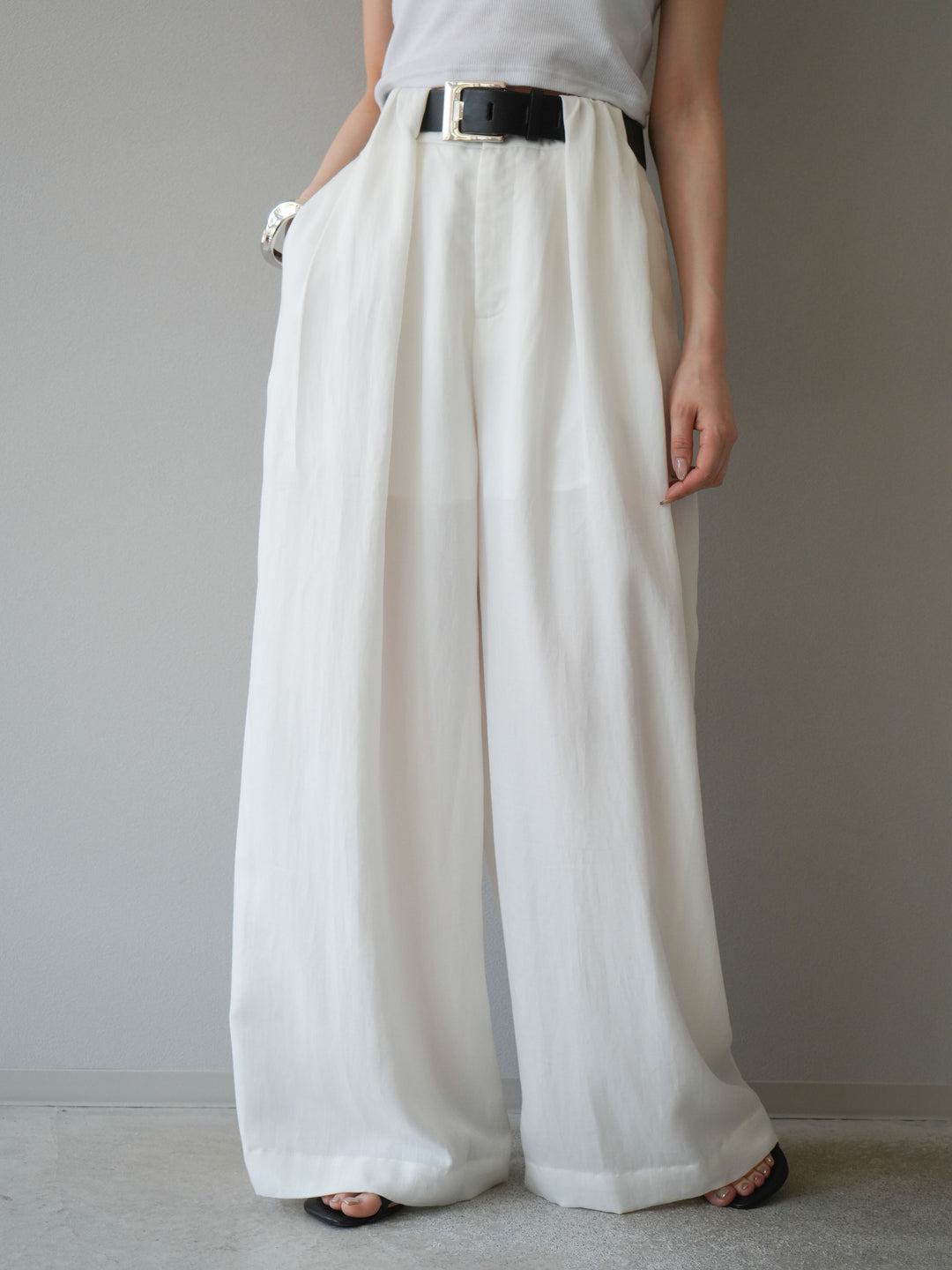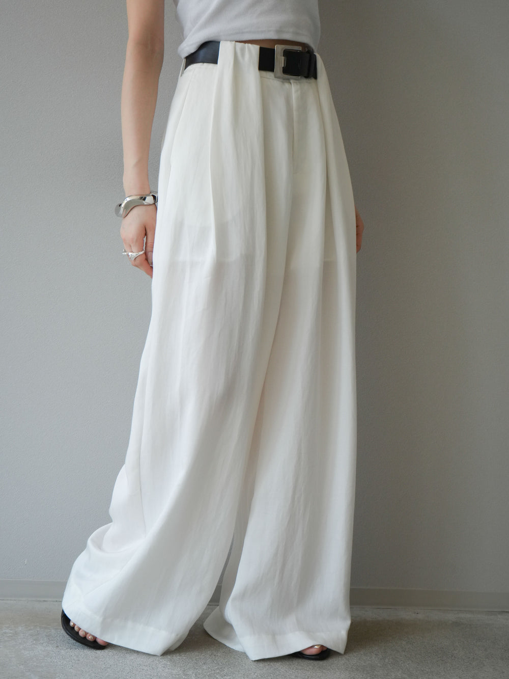 【預購】寬褲配大帶/象牙白