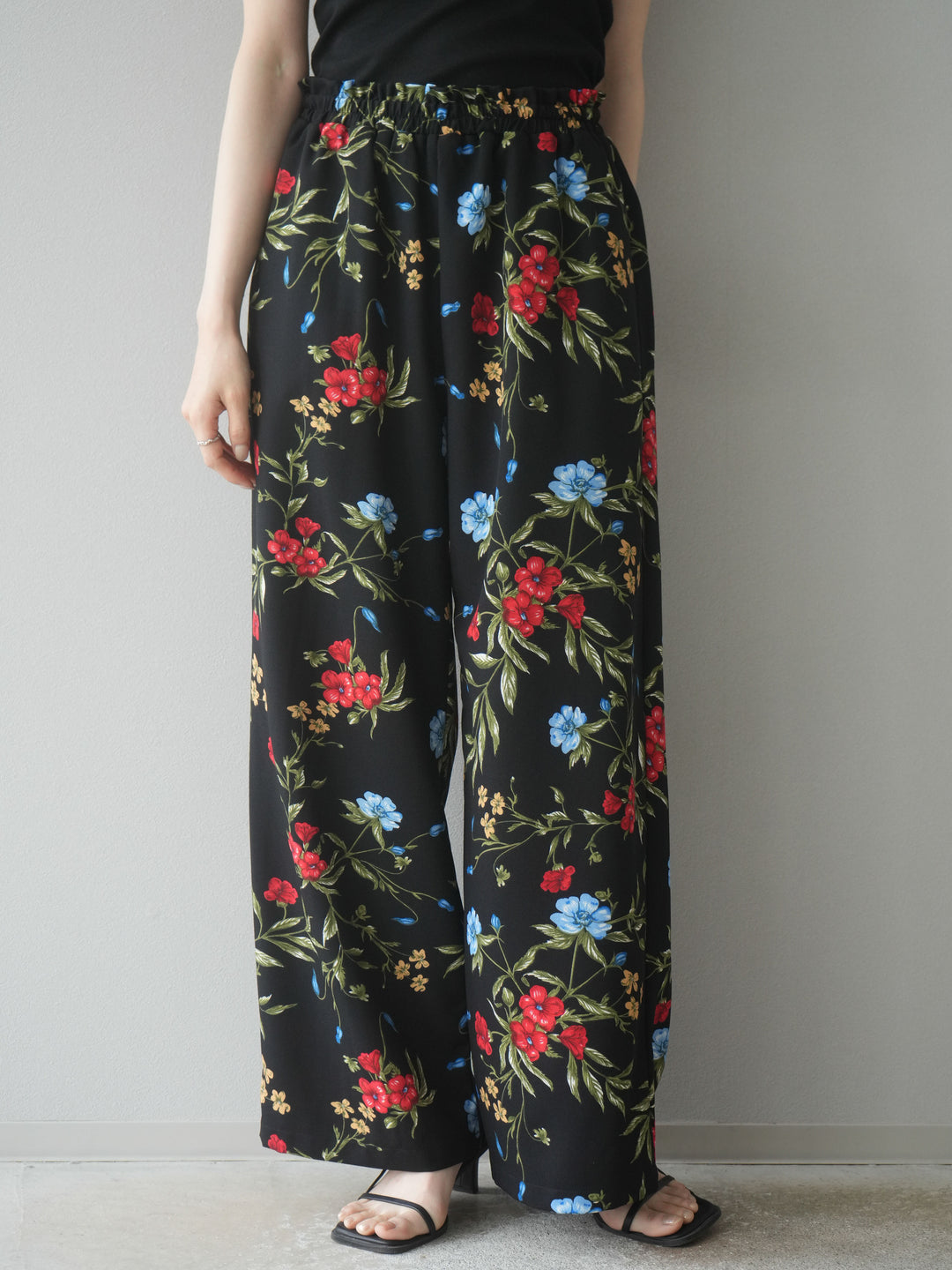 【預購】植物圖案休閒褲/黑色