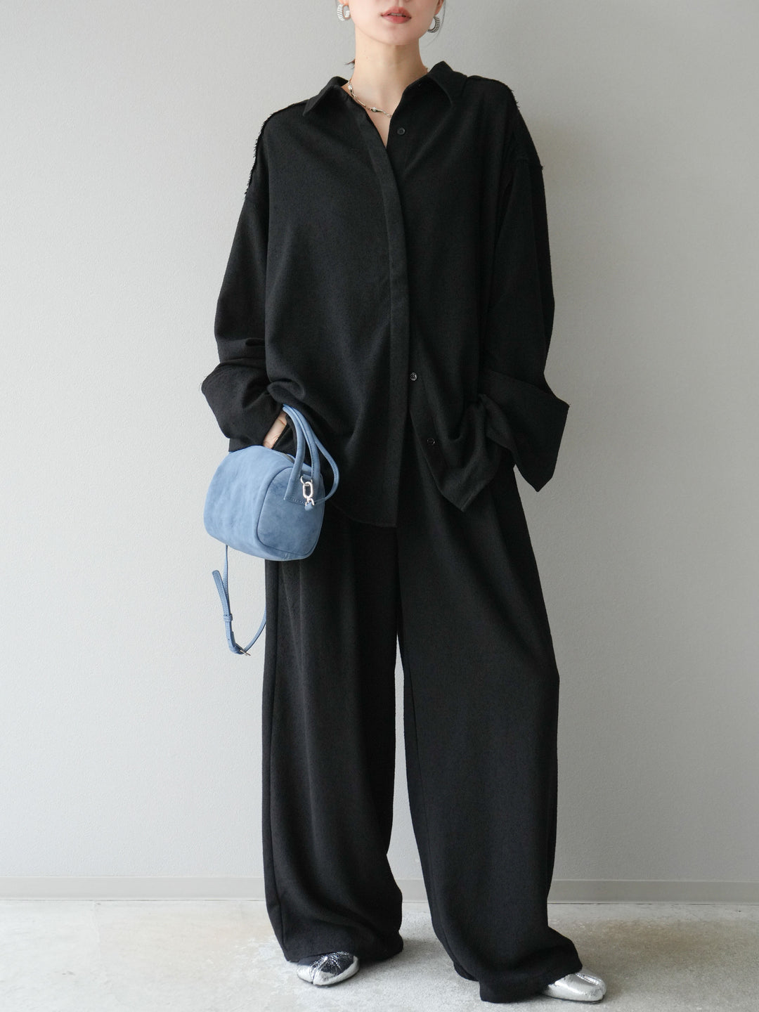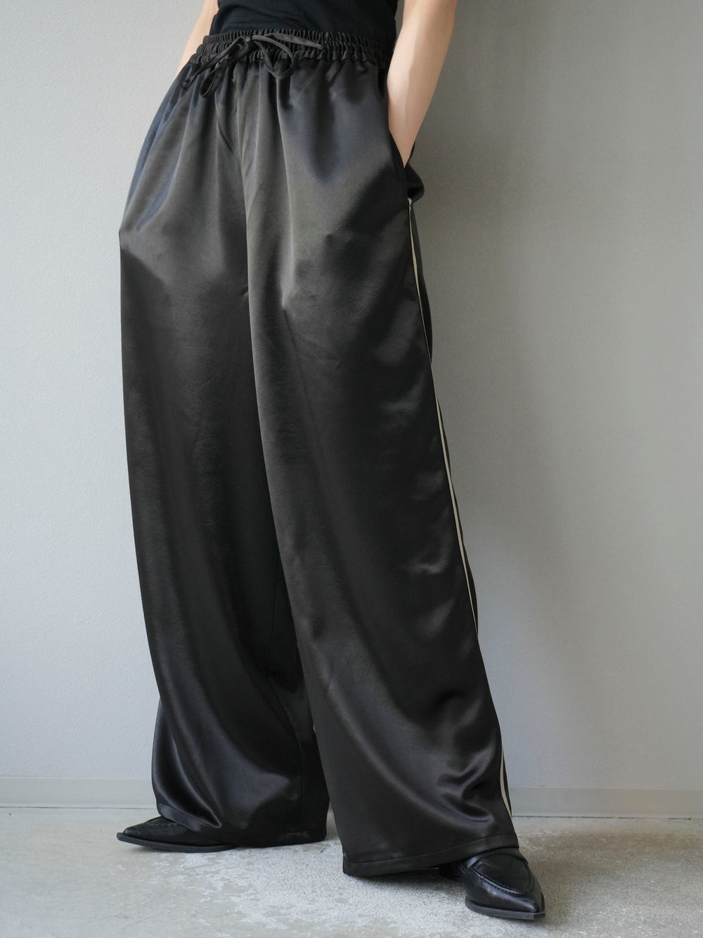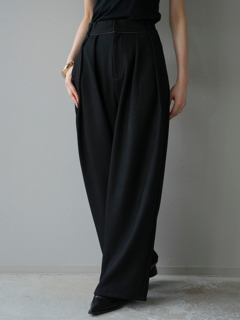 [予約]レザーパイピングタックワイドパンツ/ブラック