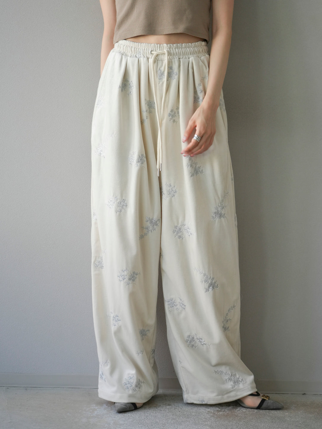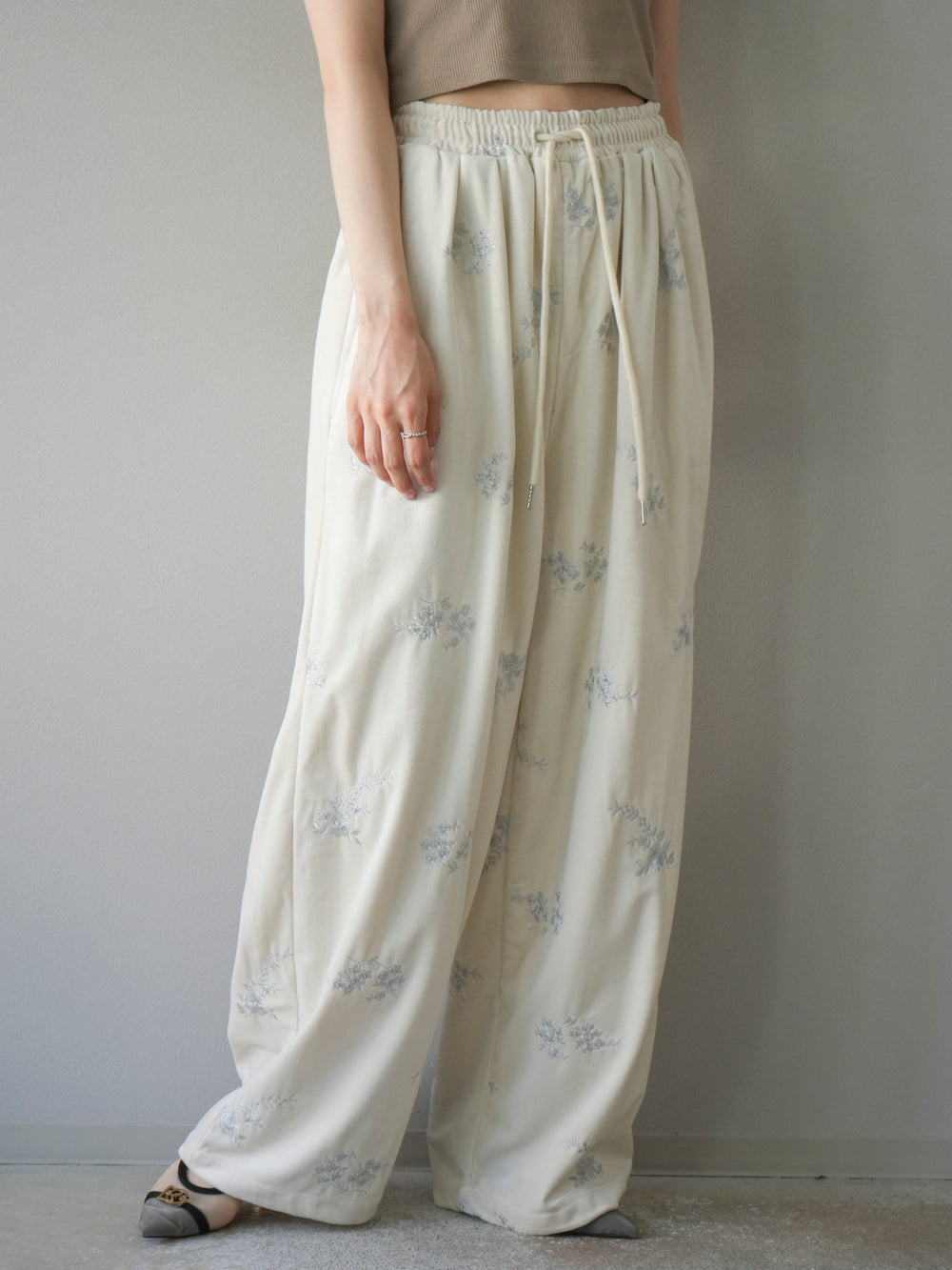 [予約]ベロアフラワーエンブロイダリーイージーパンツ/エクリュ