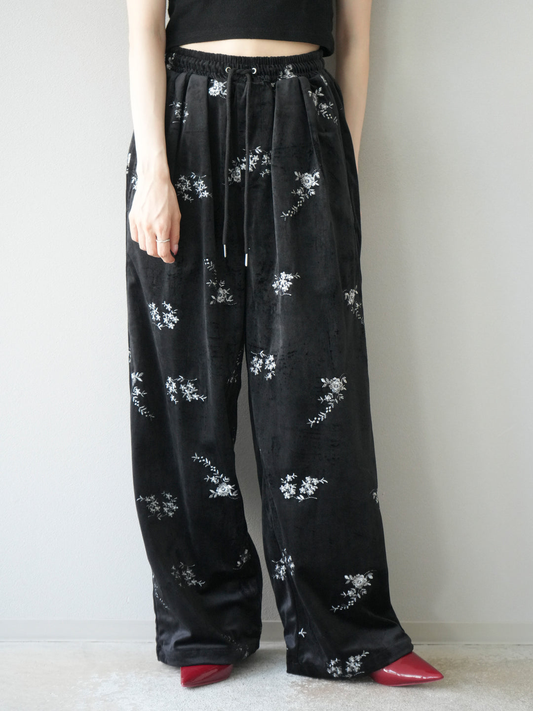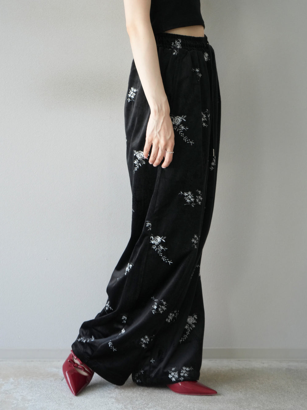 [予約]ベロアフラワーエンブロイダリーイージーパンツ/ブラック