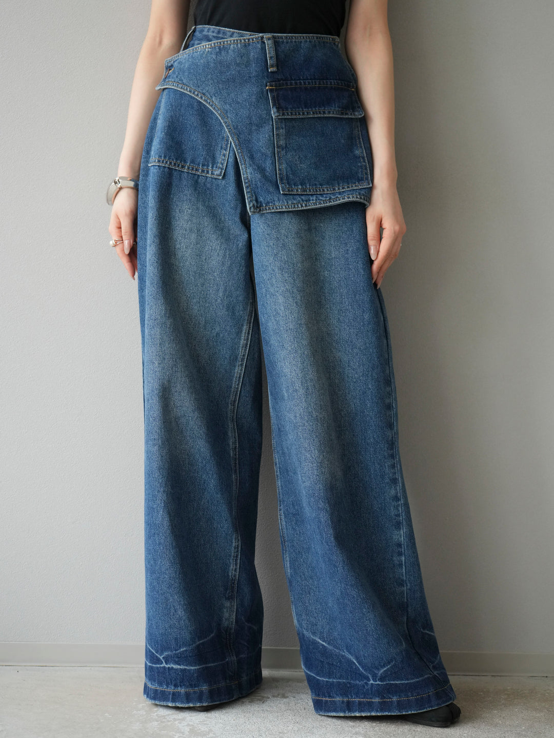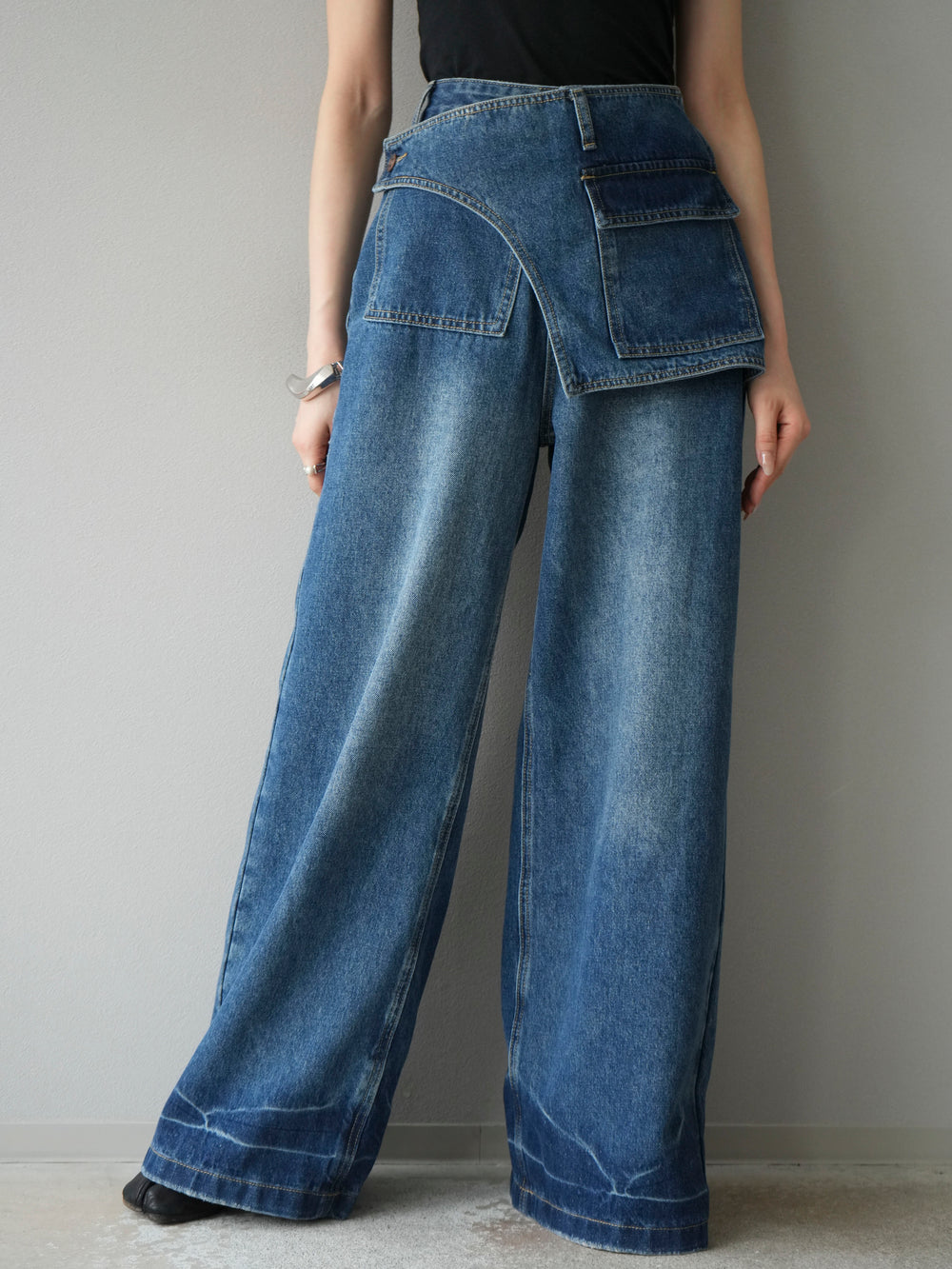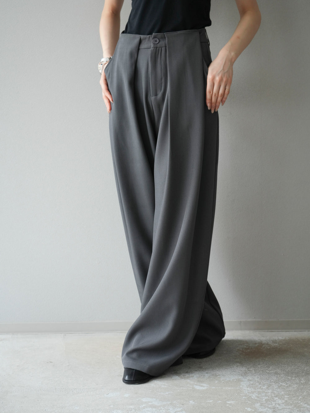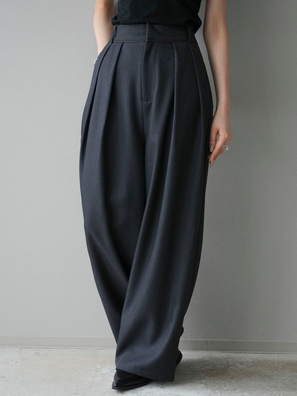 [予約]レザーパイピングタックワイドパンツ/グレー