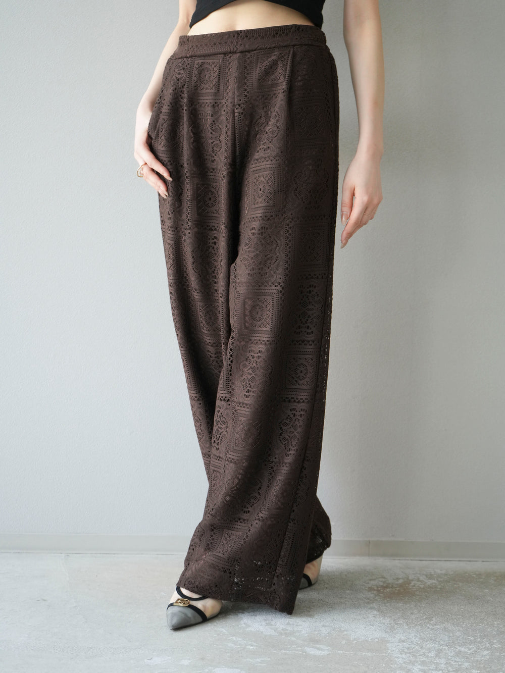 [予約]ベロアフラワーエンブロイダリーイージーパンツ/ブラウン