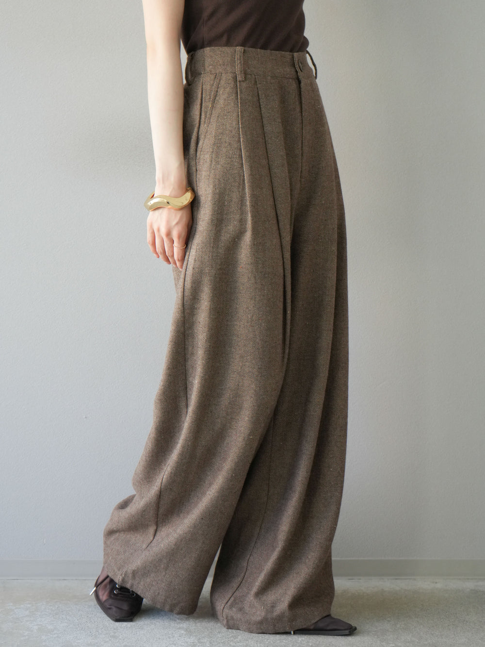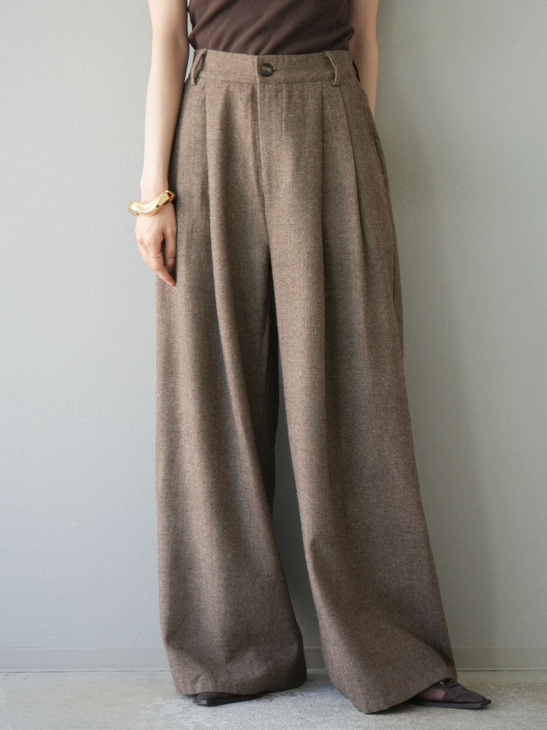 [予約]ツイードタッチタックワイドパンツ/ブラウン