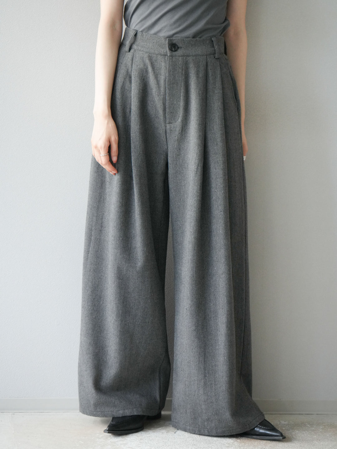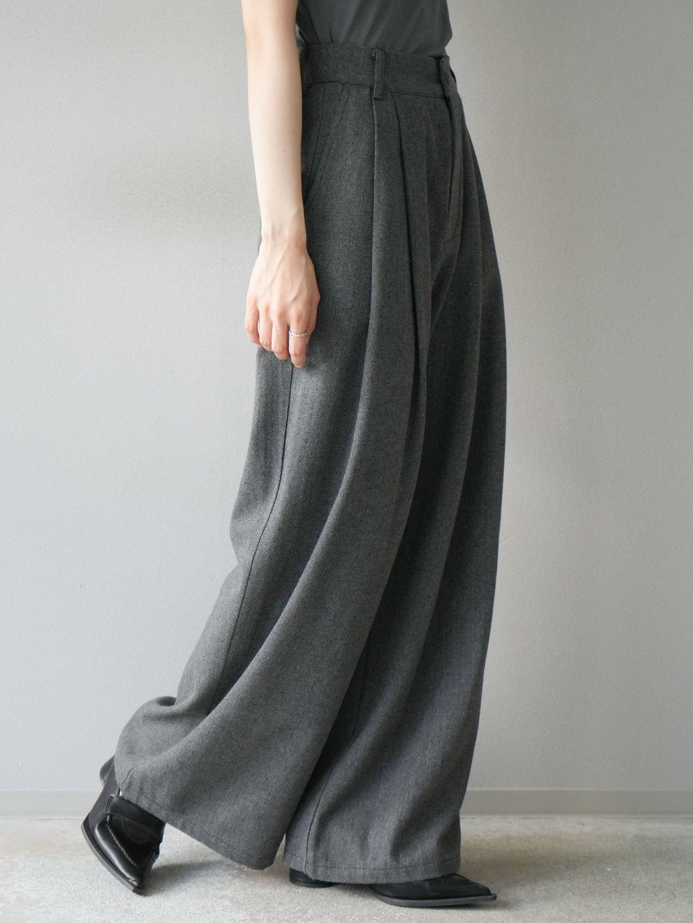 [予約]ツイードタッチタックワイドパンツ/ダークグレー