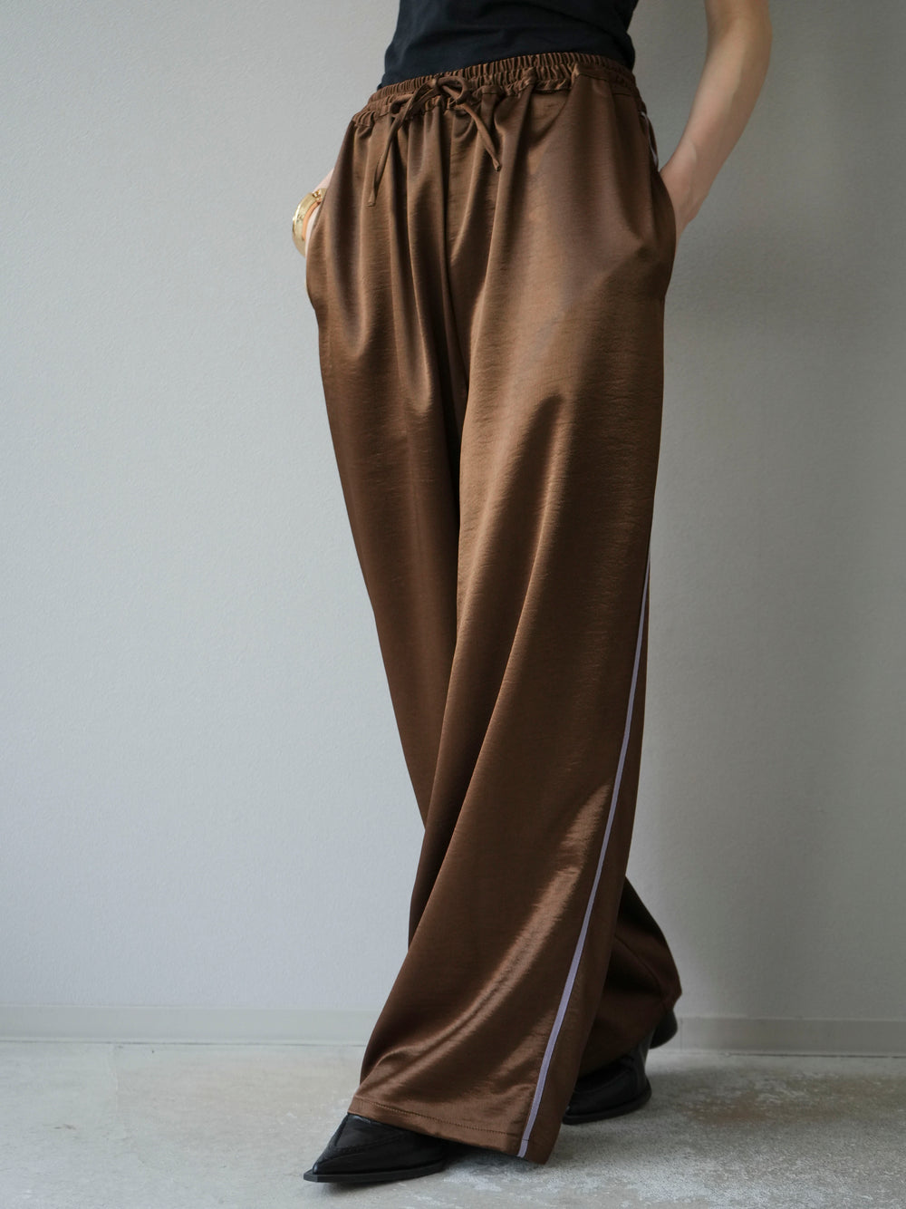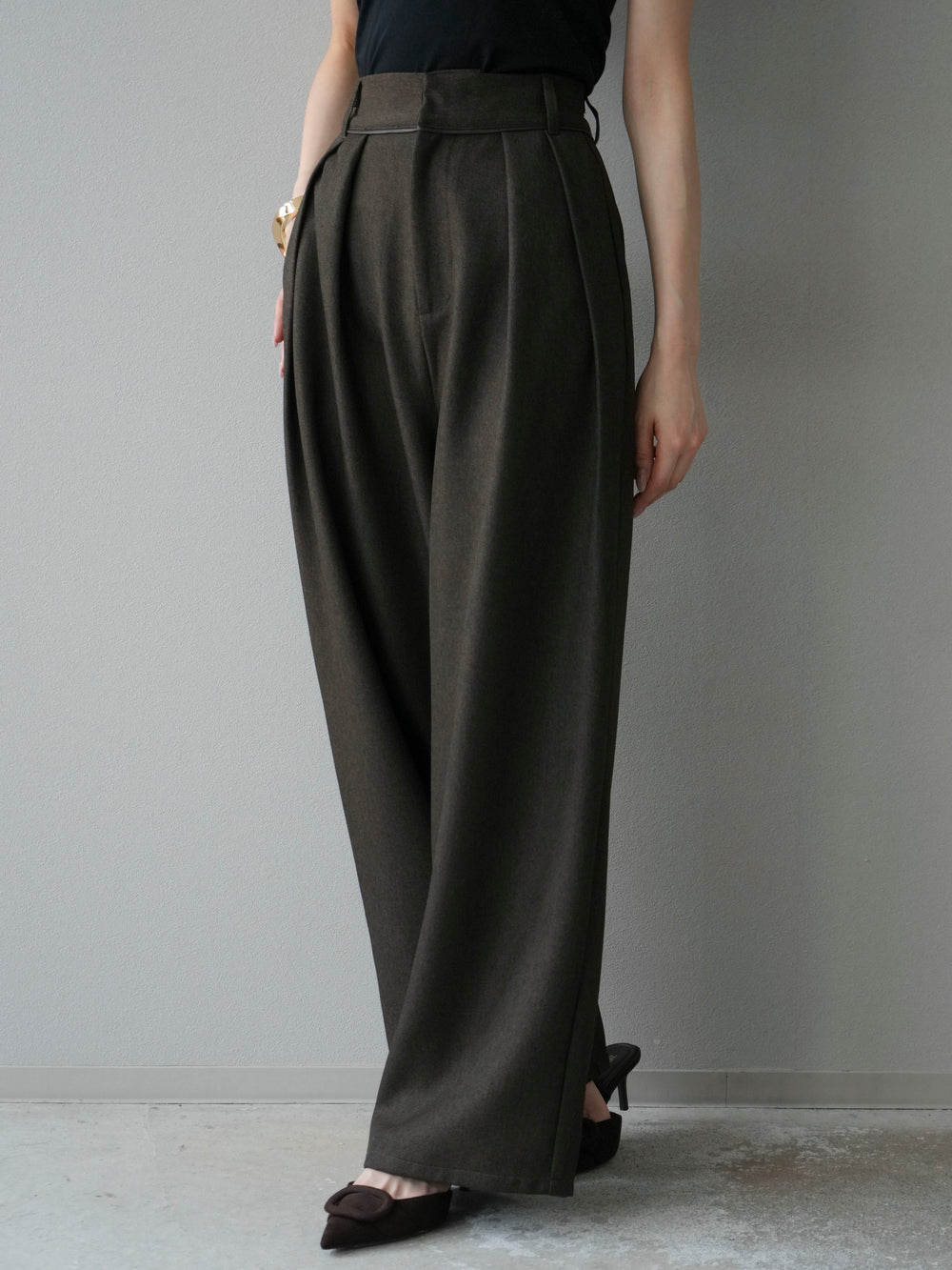 [予約]レザーパイピングタックワイドパンツ/ブラウン