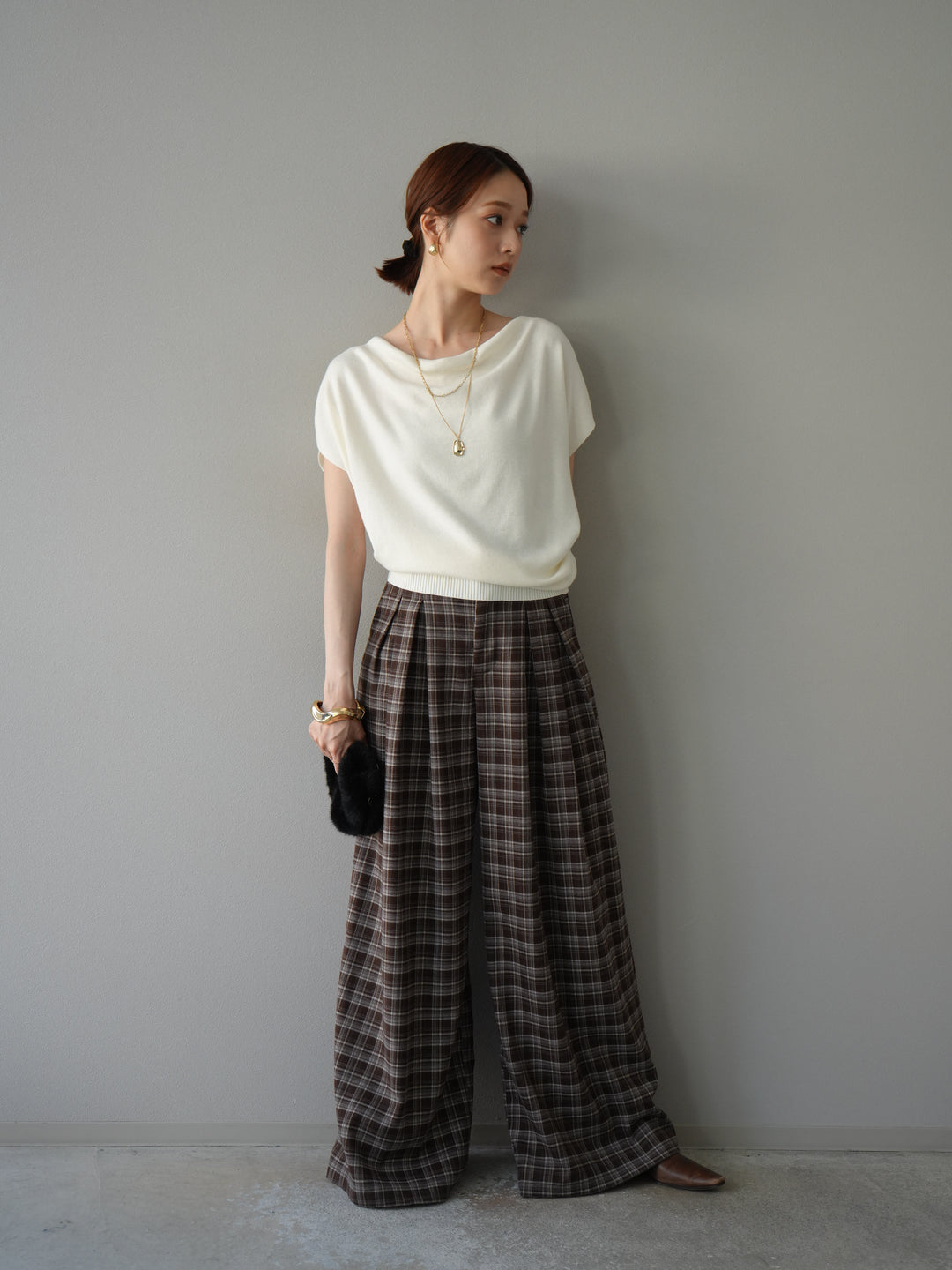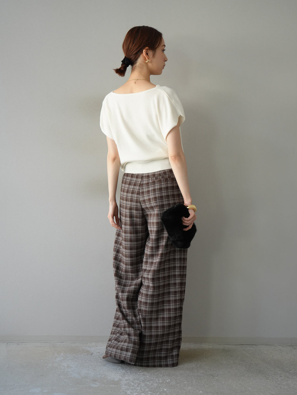 [予約]ウールタッチチェックワイドパンツ/ブラウン