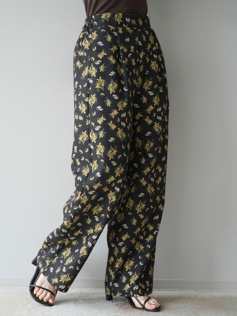 [預購] 人造絲柔韌竹節植物圖案直筒褲/黑色