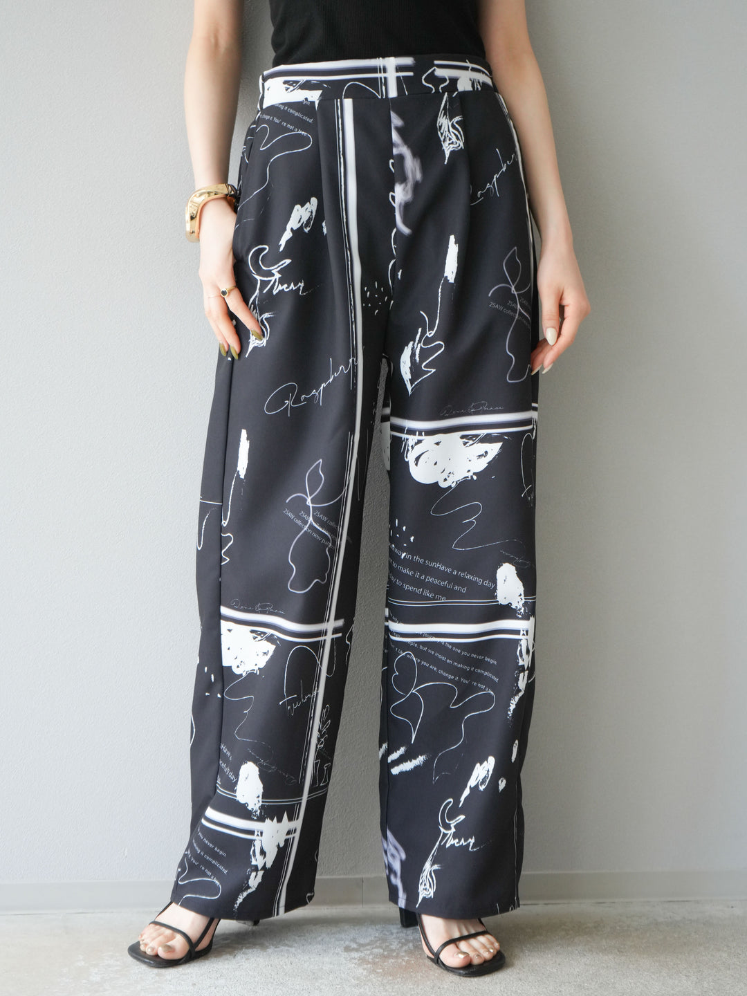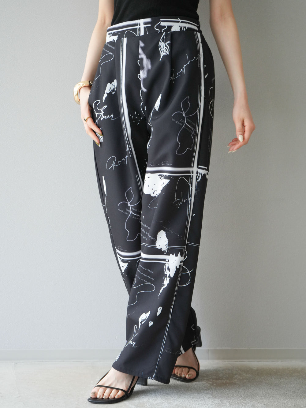 [預購] Rayon Flex Slather 隨機圖案直筒褲/黑色
