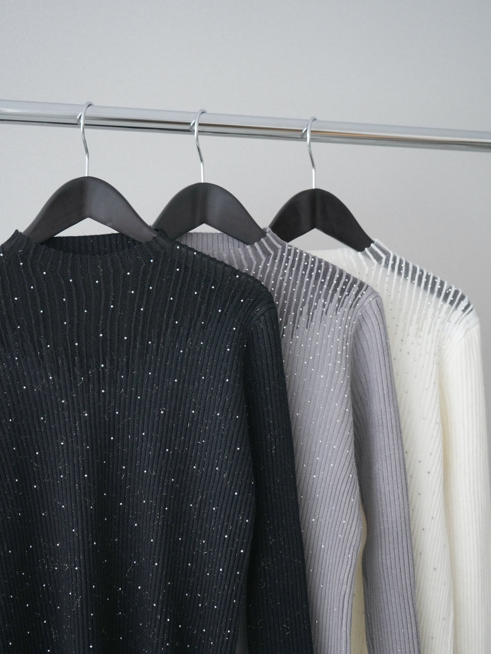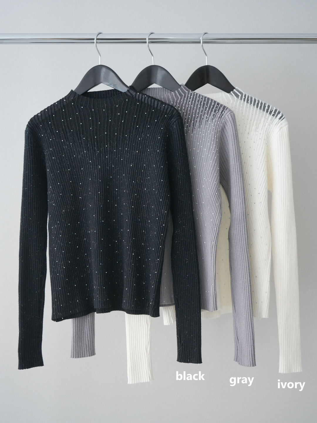 [SET]シアー切替スパンコールリブニットトップス+シアー切替スパンコールリブニットトップス(2set)