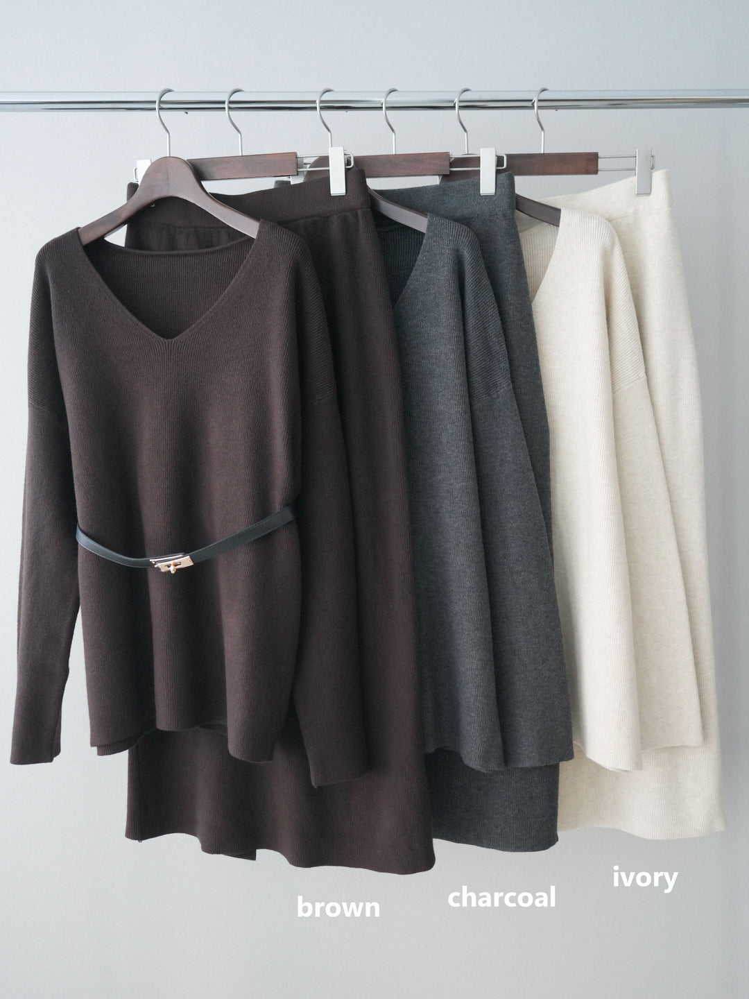 [SET]ベルト付Vネックニット&スカートSET UP(2set)