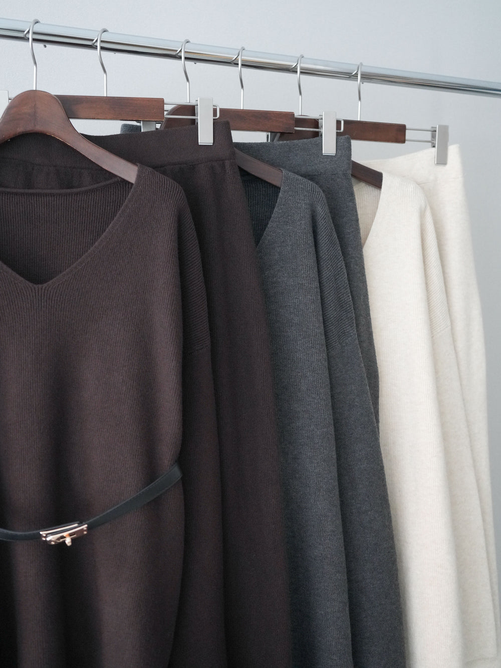 [SET]ベルト付Vネックニット&スカートSET UP+ベルト付Vネックニット&スカートSET UP(2set)