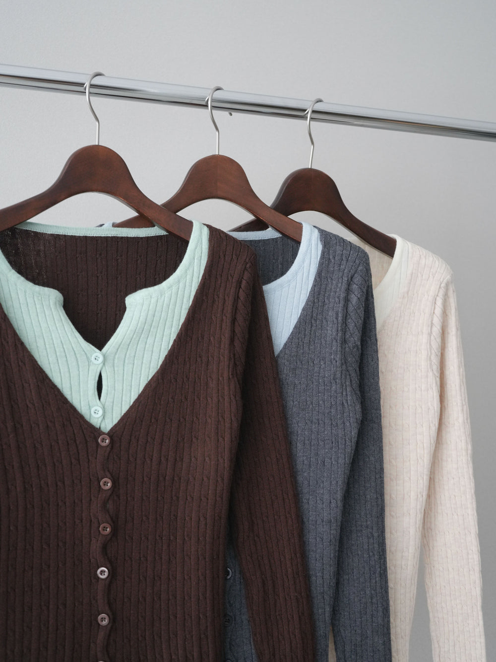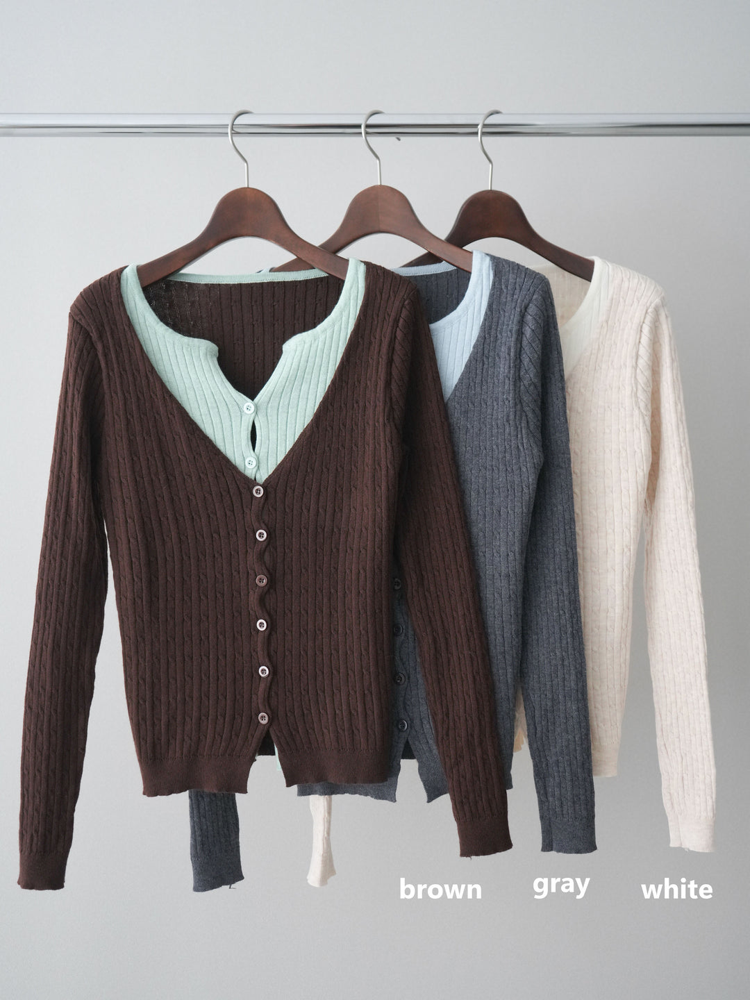 [SET]バイカラーレイヤードニットカーディガン+バイカラーレイヤードニットカーディガン(2set)