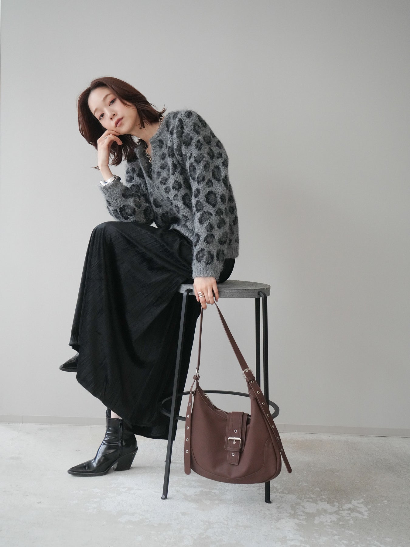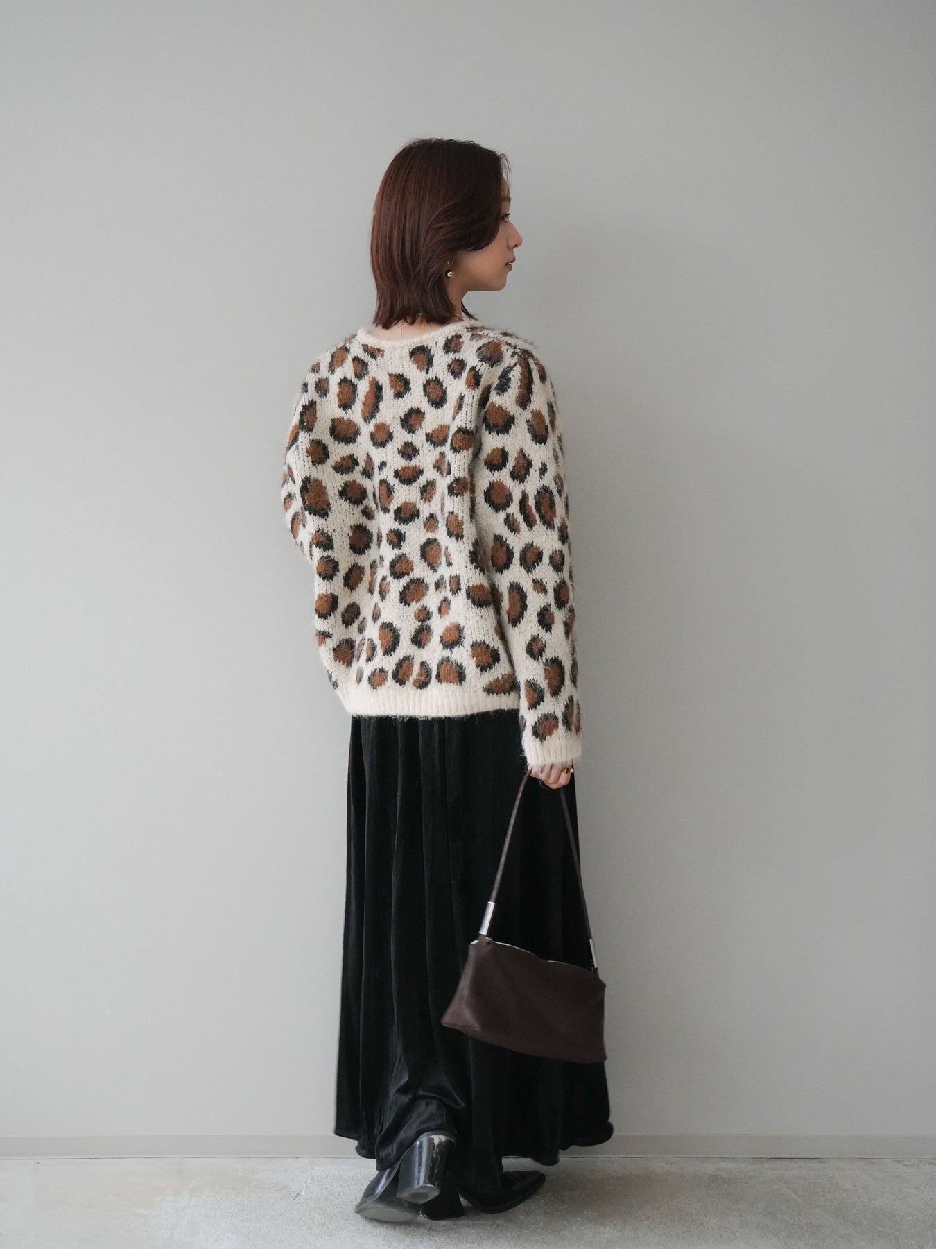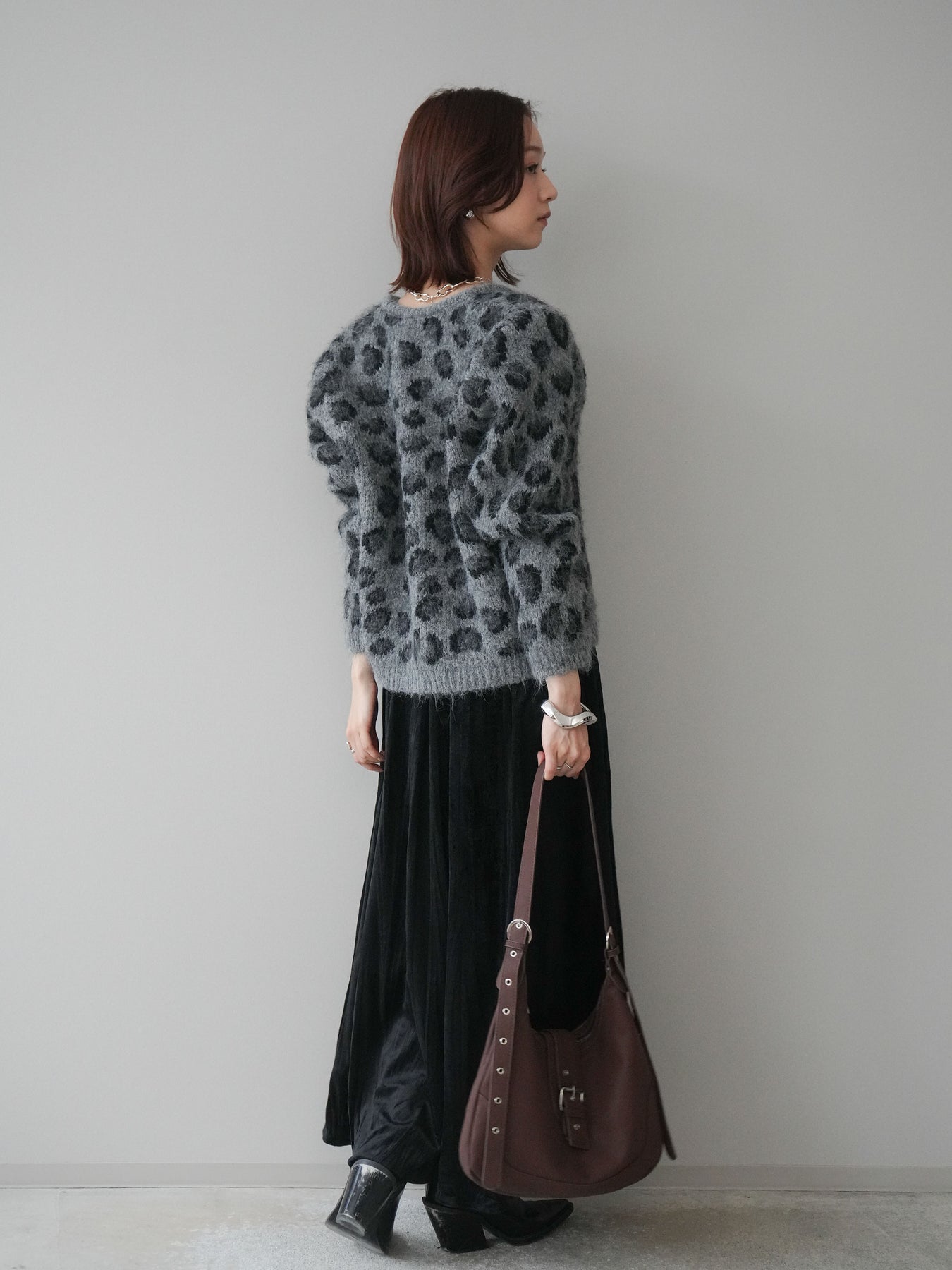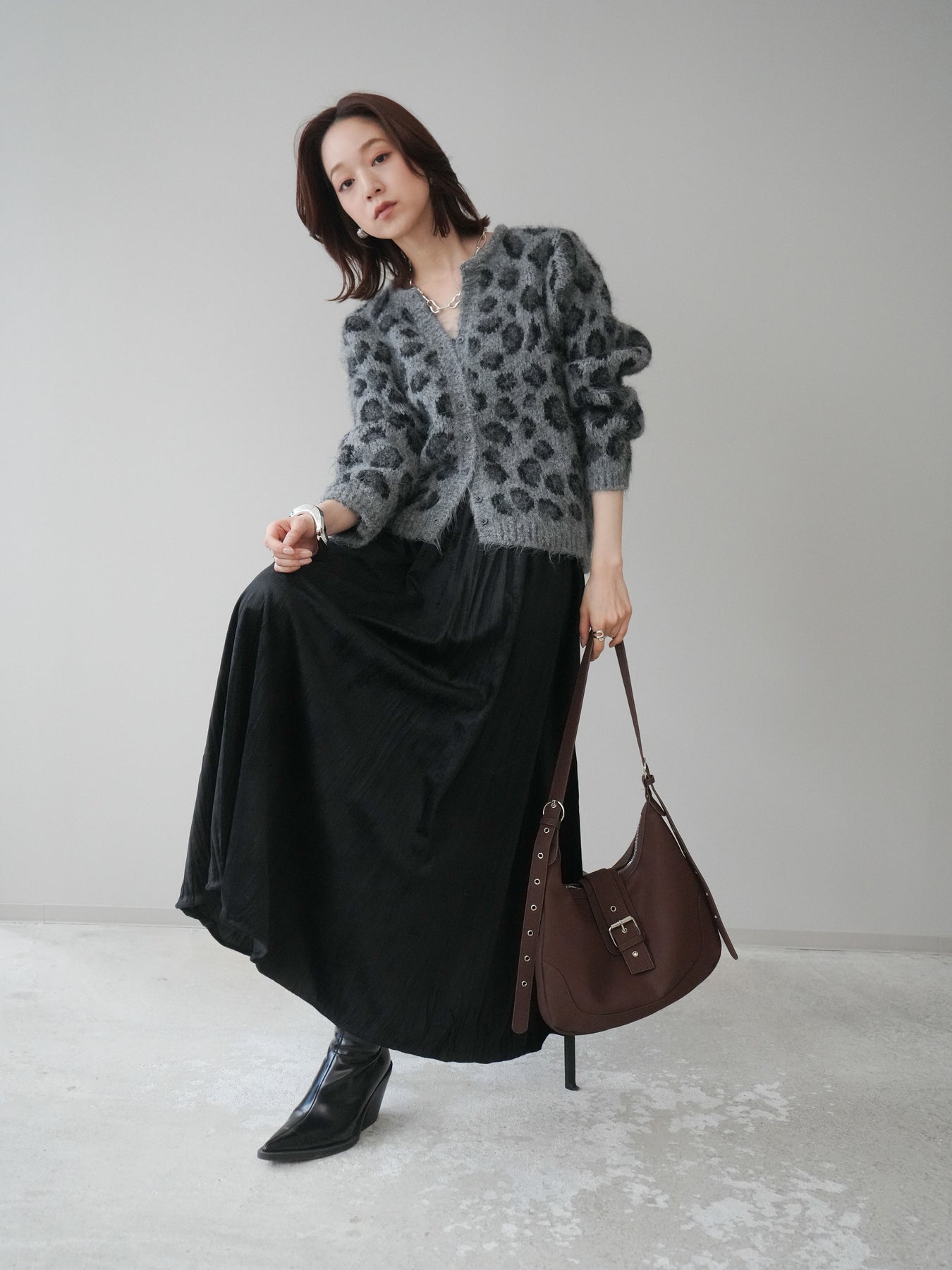 [SET]モヘアタッチレオパード柄ニットカーディガン+ワッシャーベロアプリーツスカート(2set)