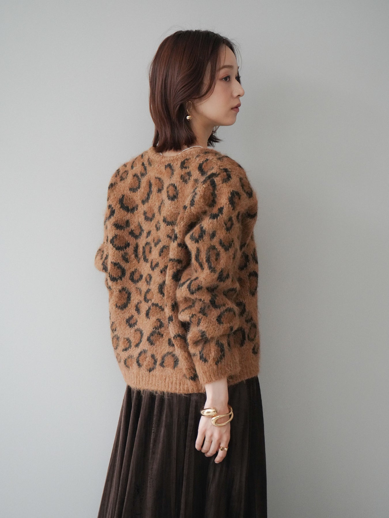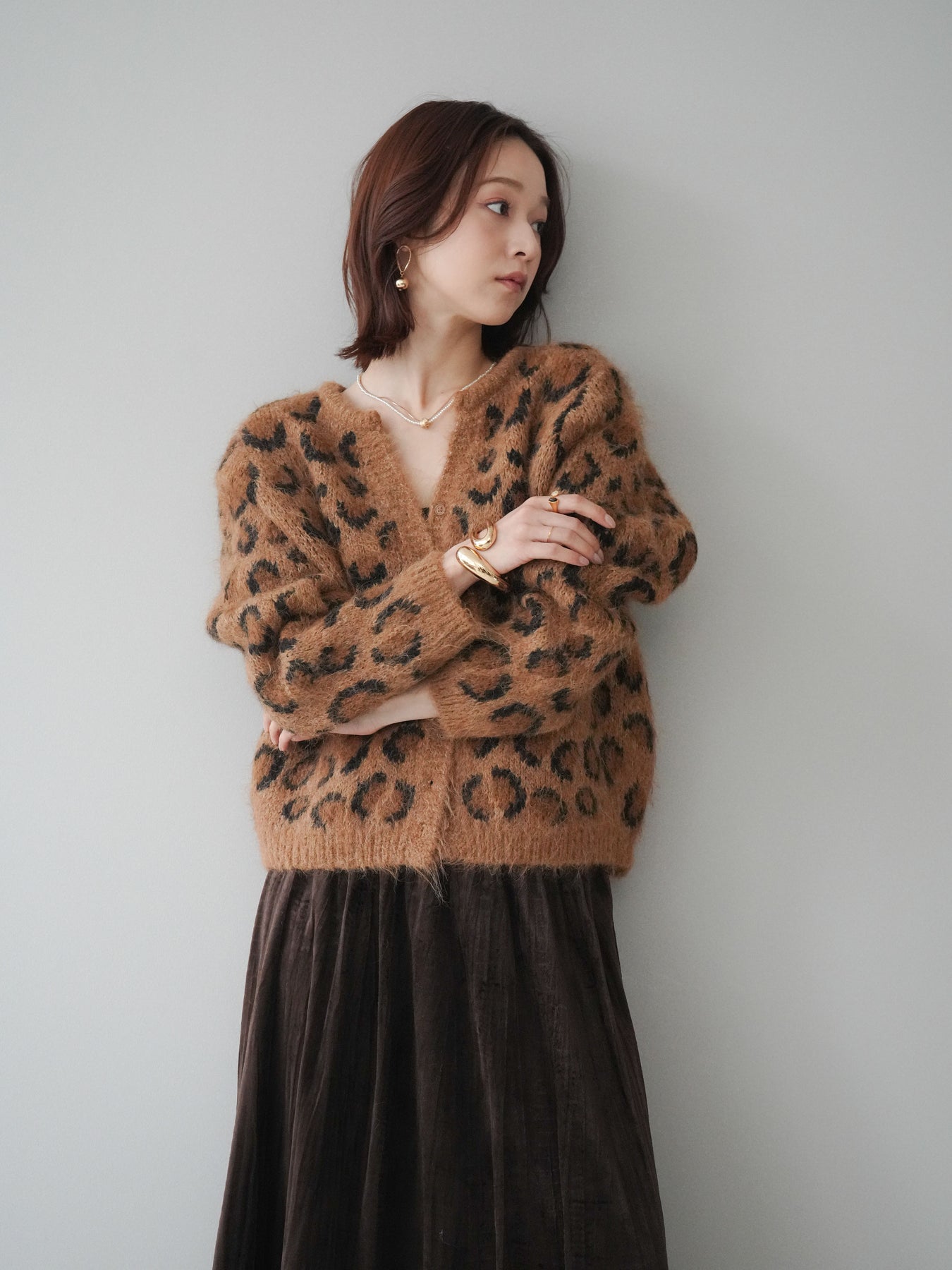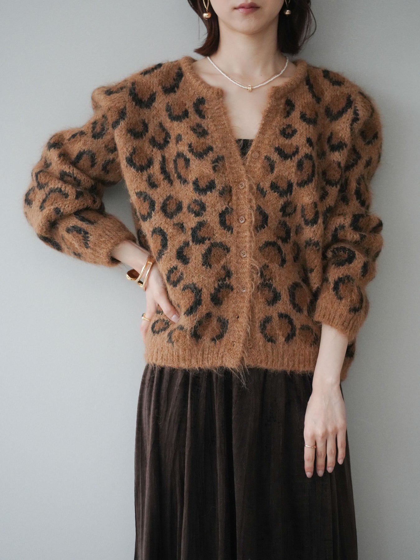 [予約]モヘアタッチレオパード柄ニットカーディガン