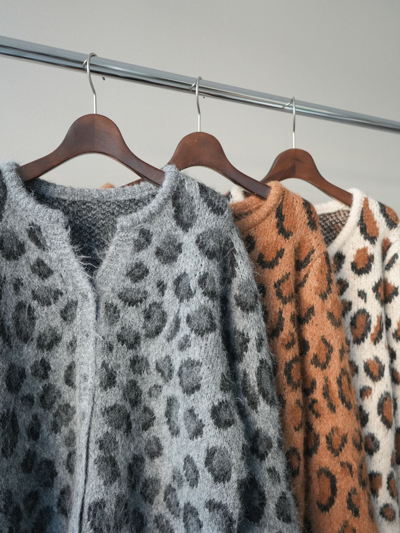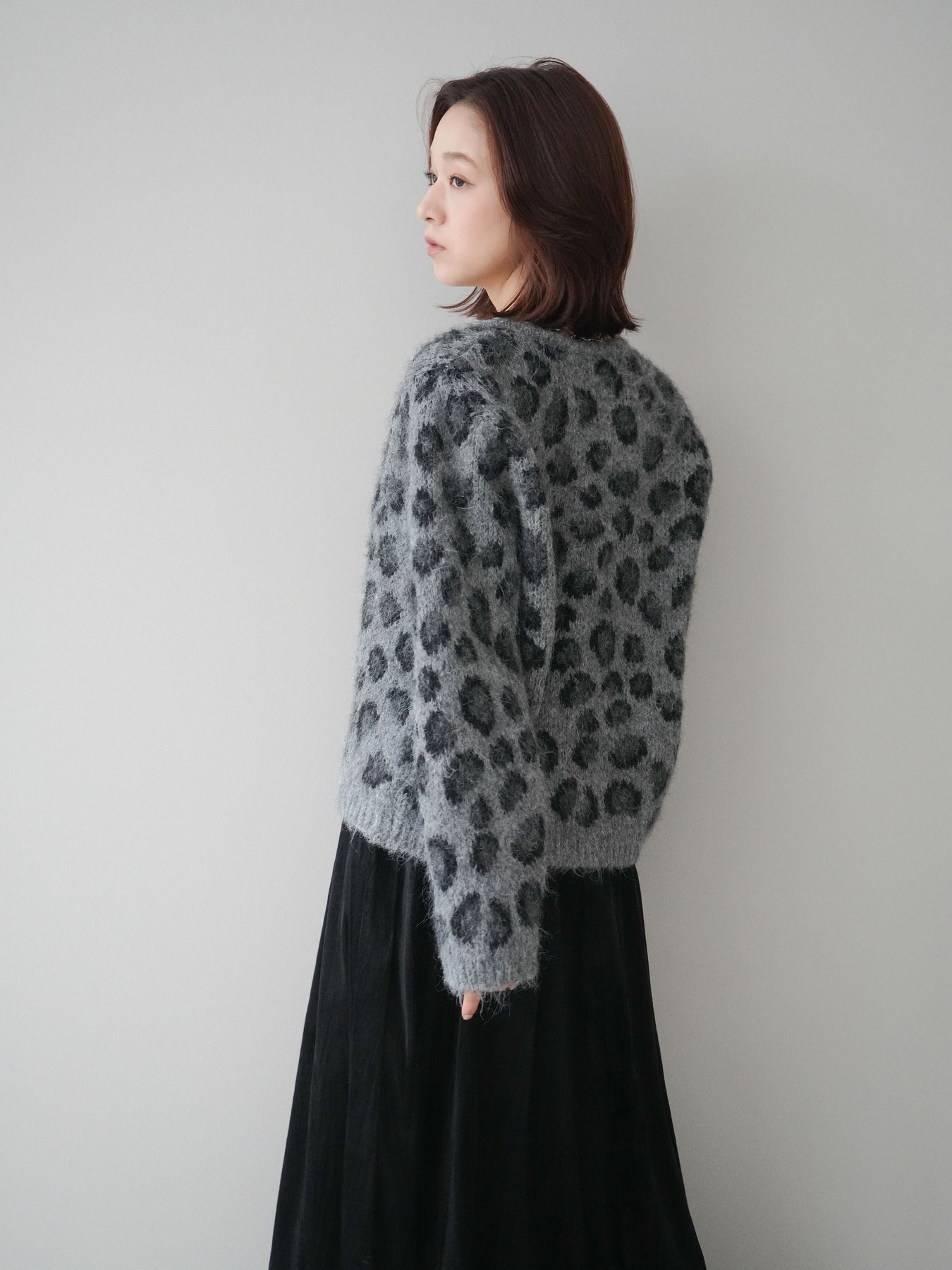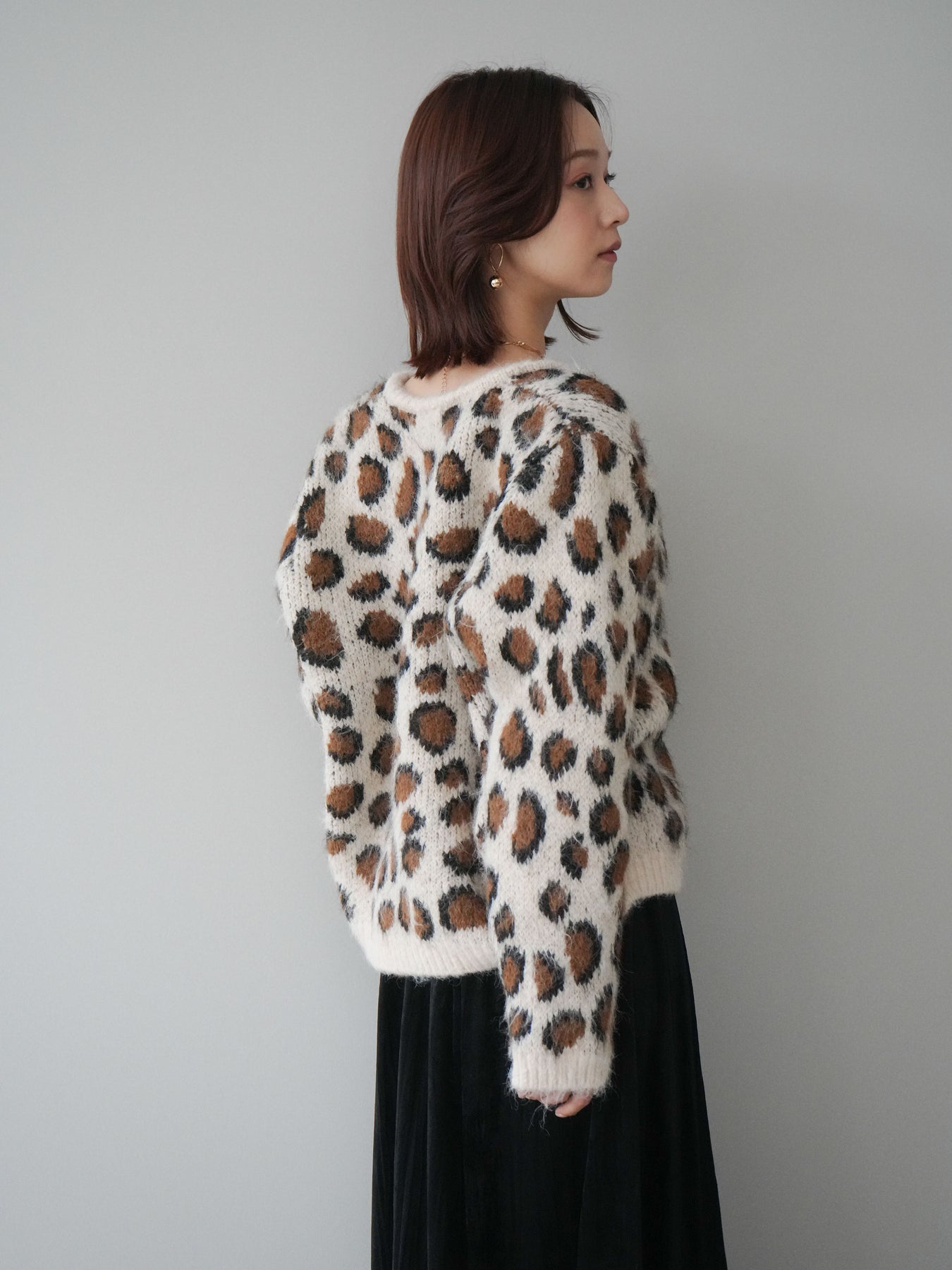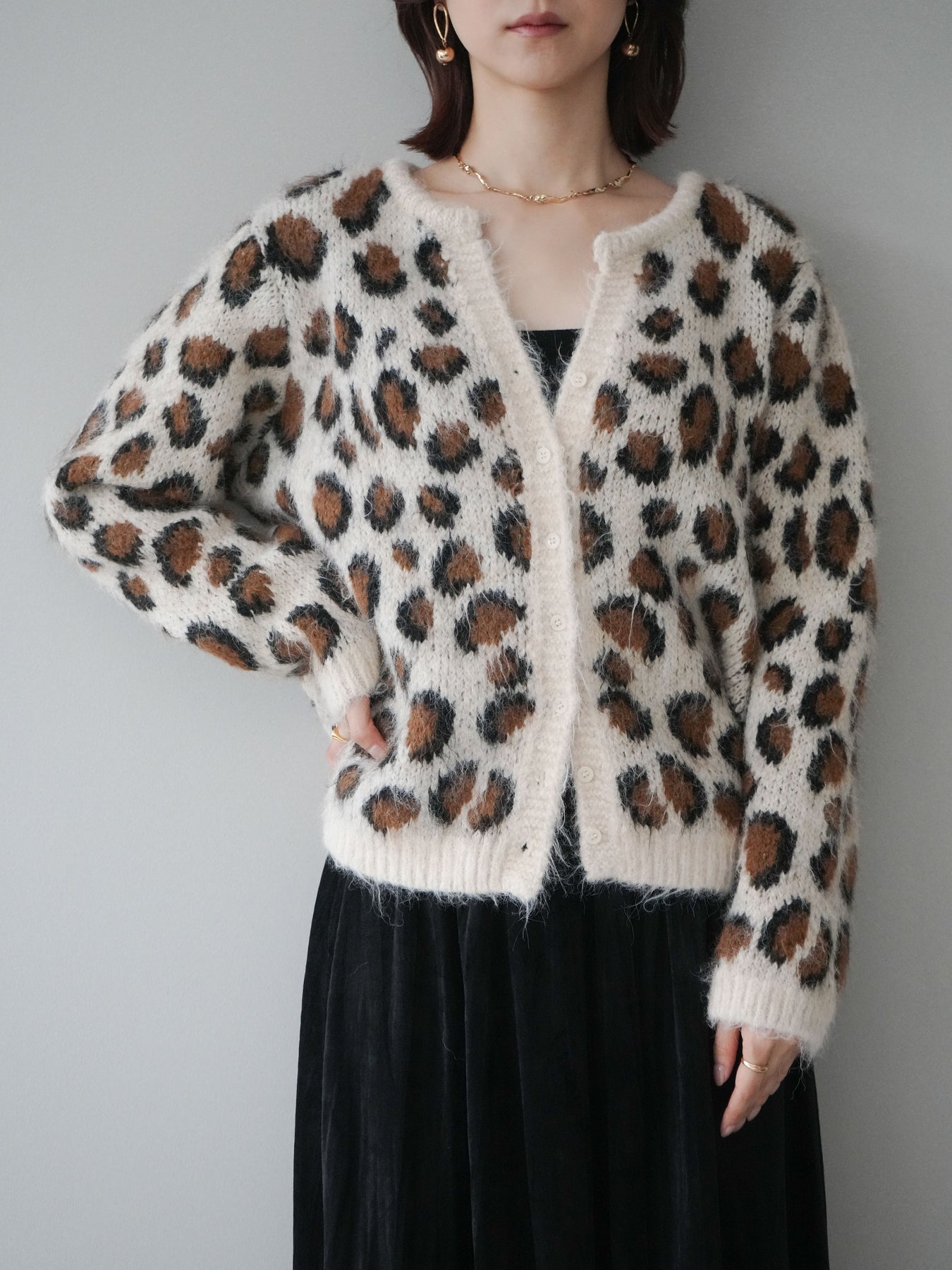 [予約]モヘアタッチレオパード柄ニットカーディガン