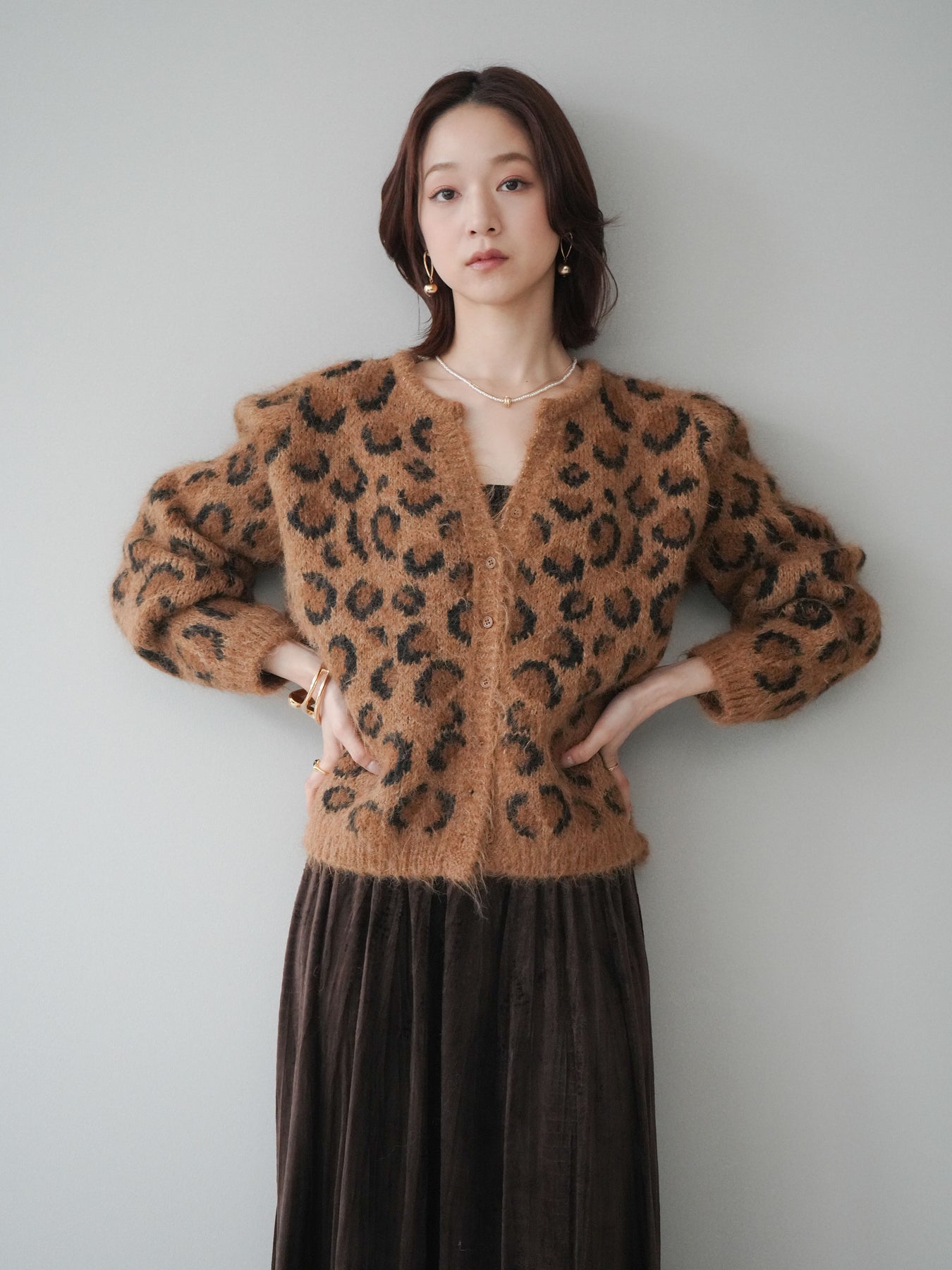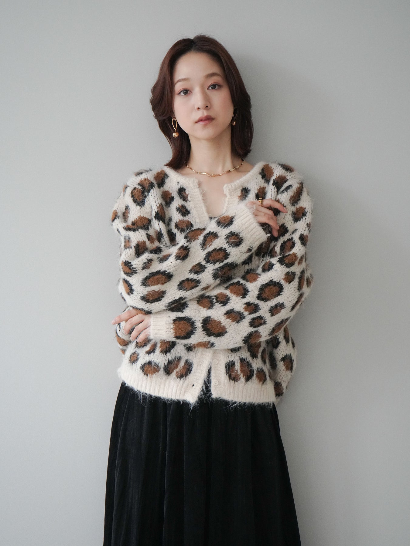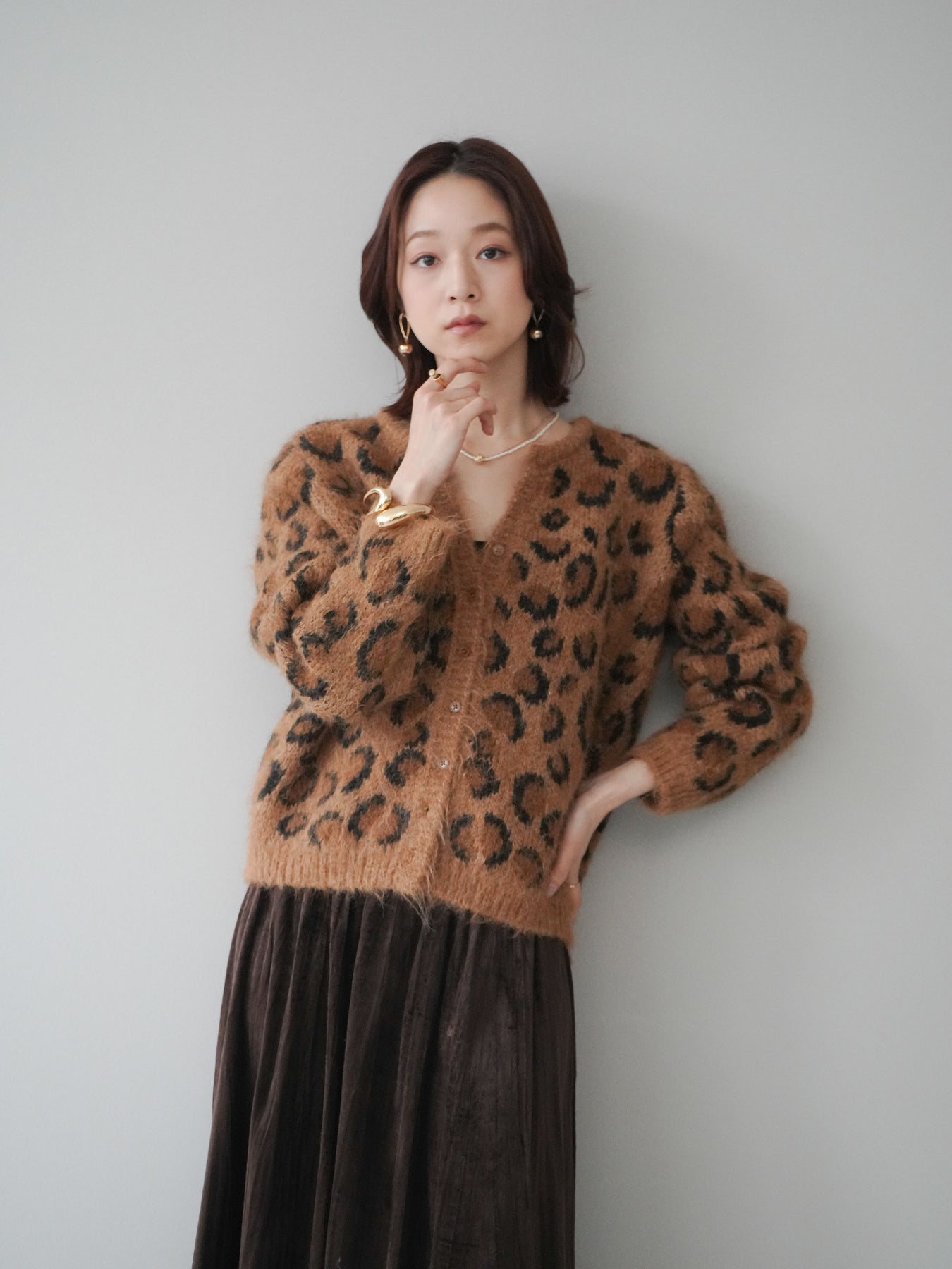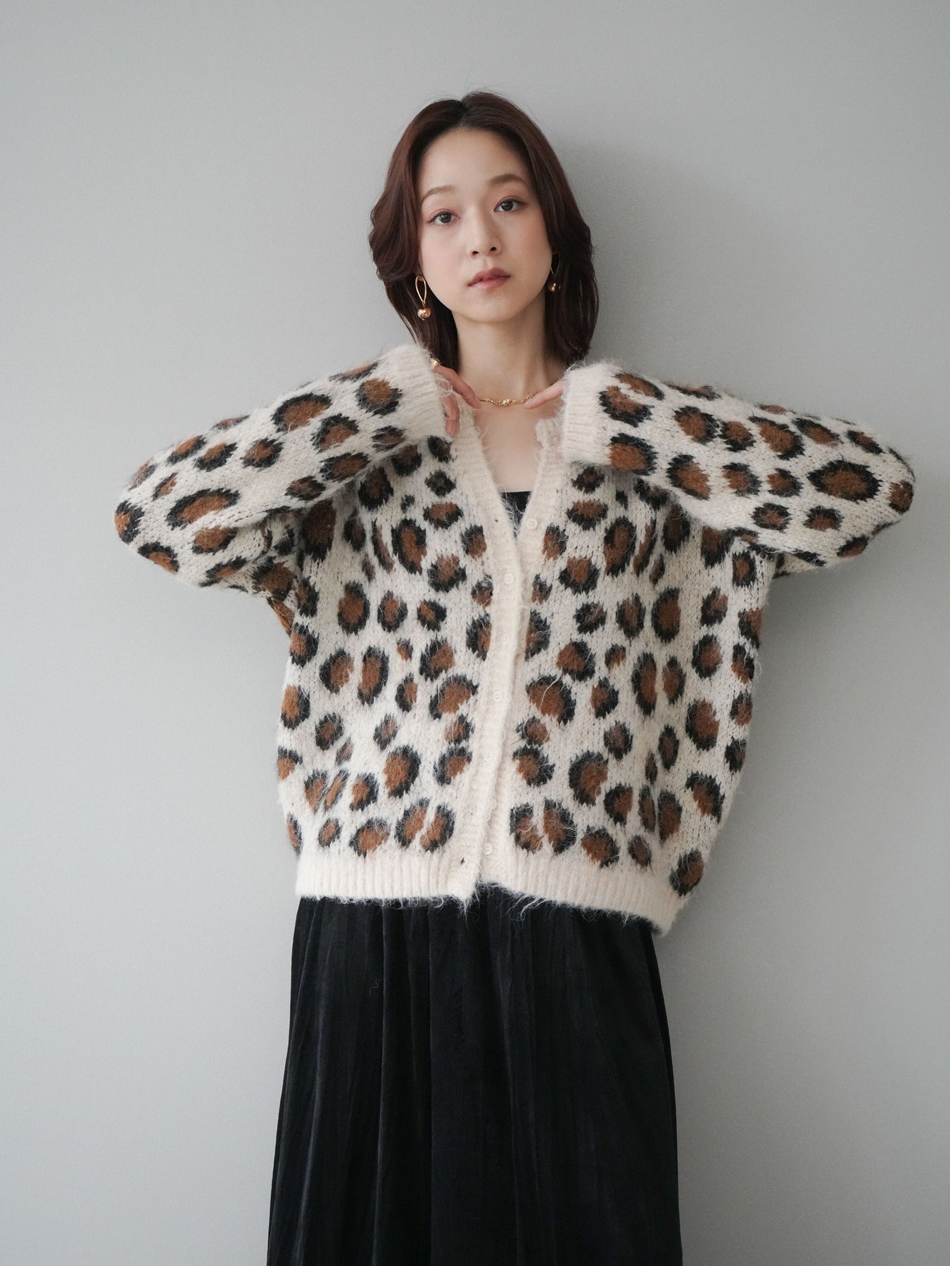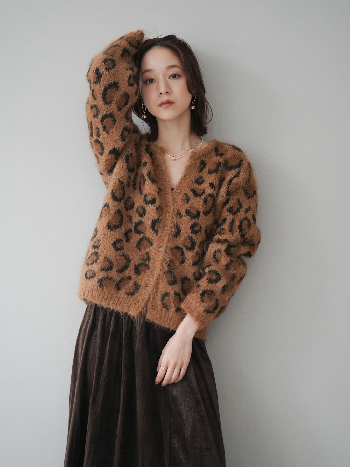 ◆ [予約]モヘアタッチレオパード柄ニットカーディガン