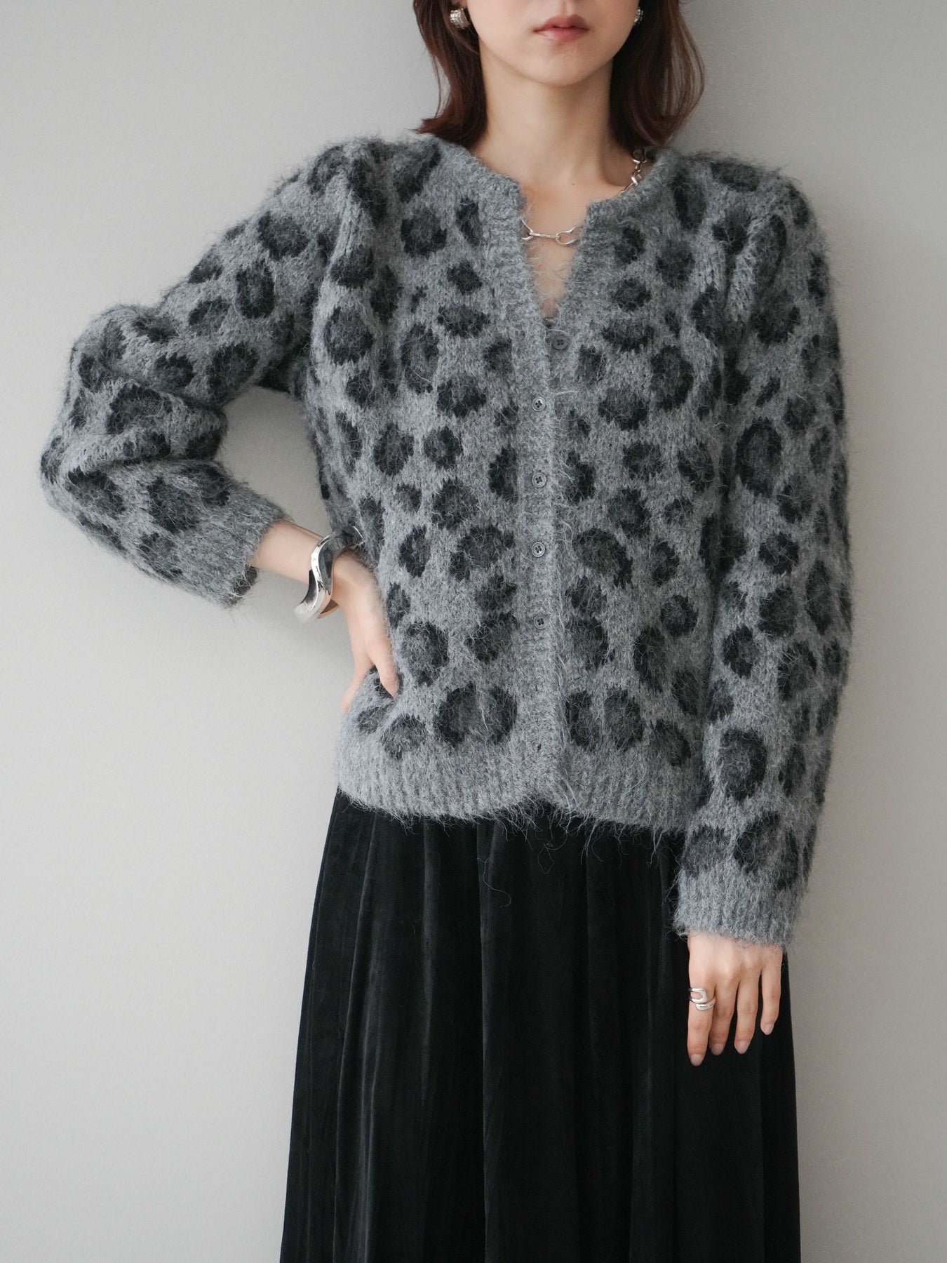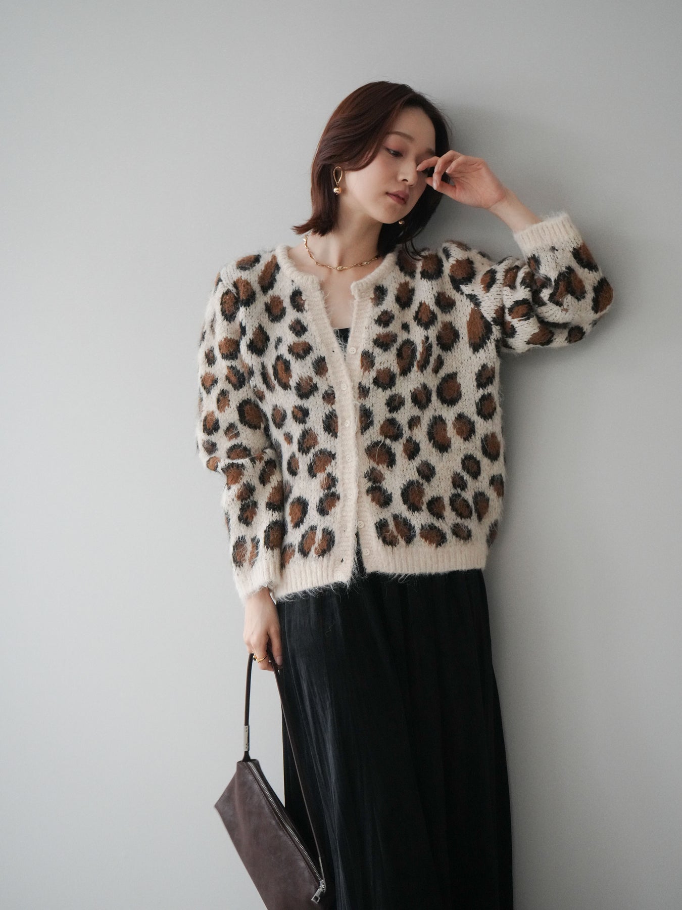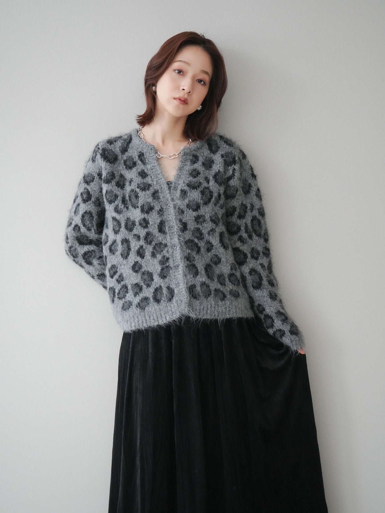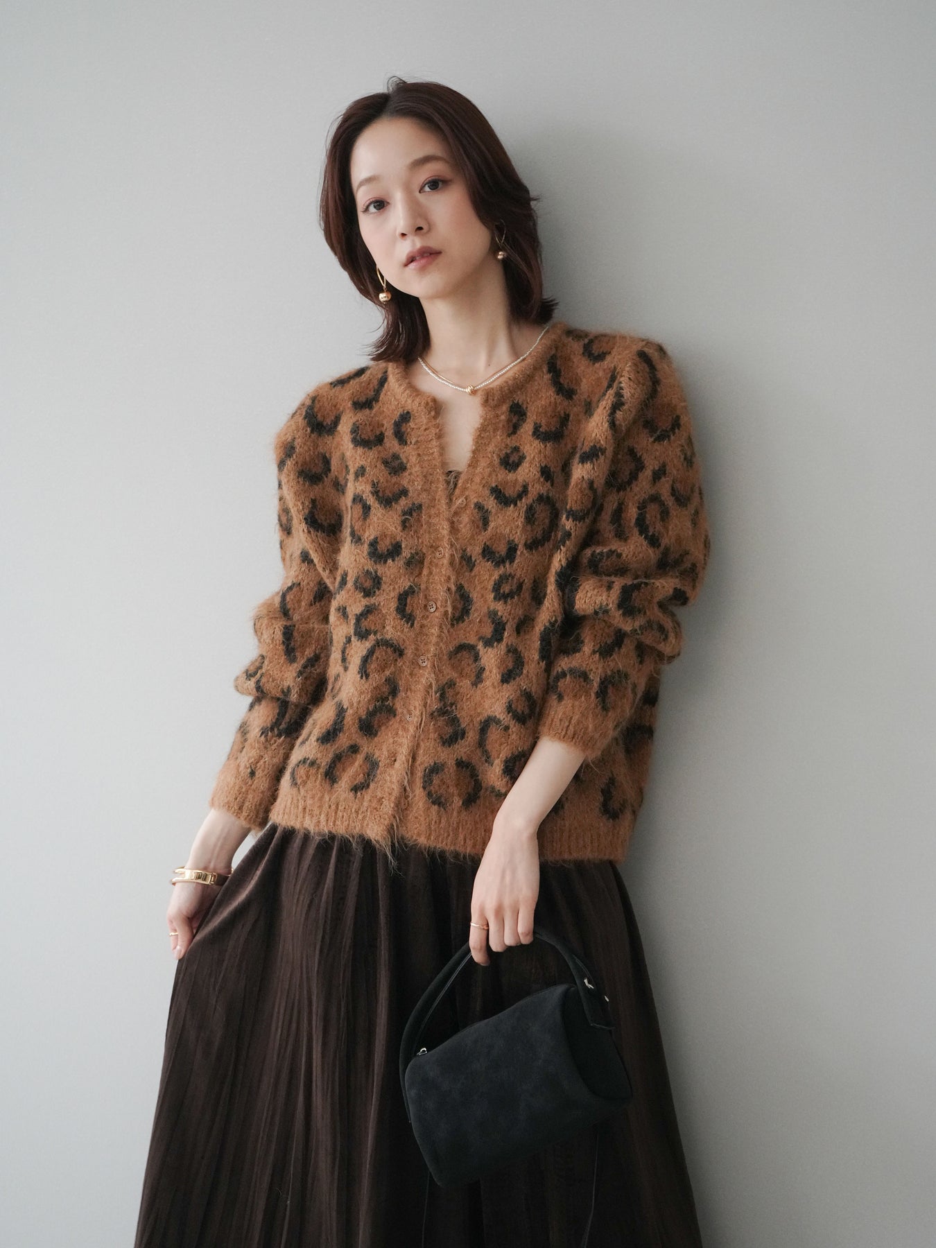 ◆ [予約]モヘアタッチレオパード柄ニットカーディガン