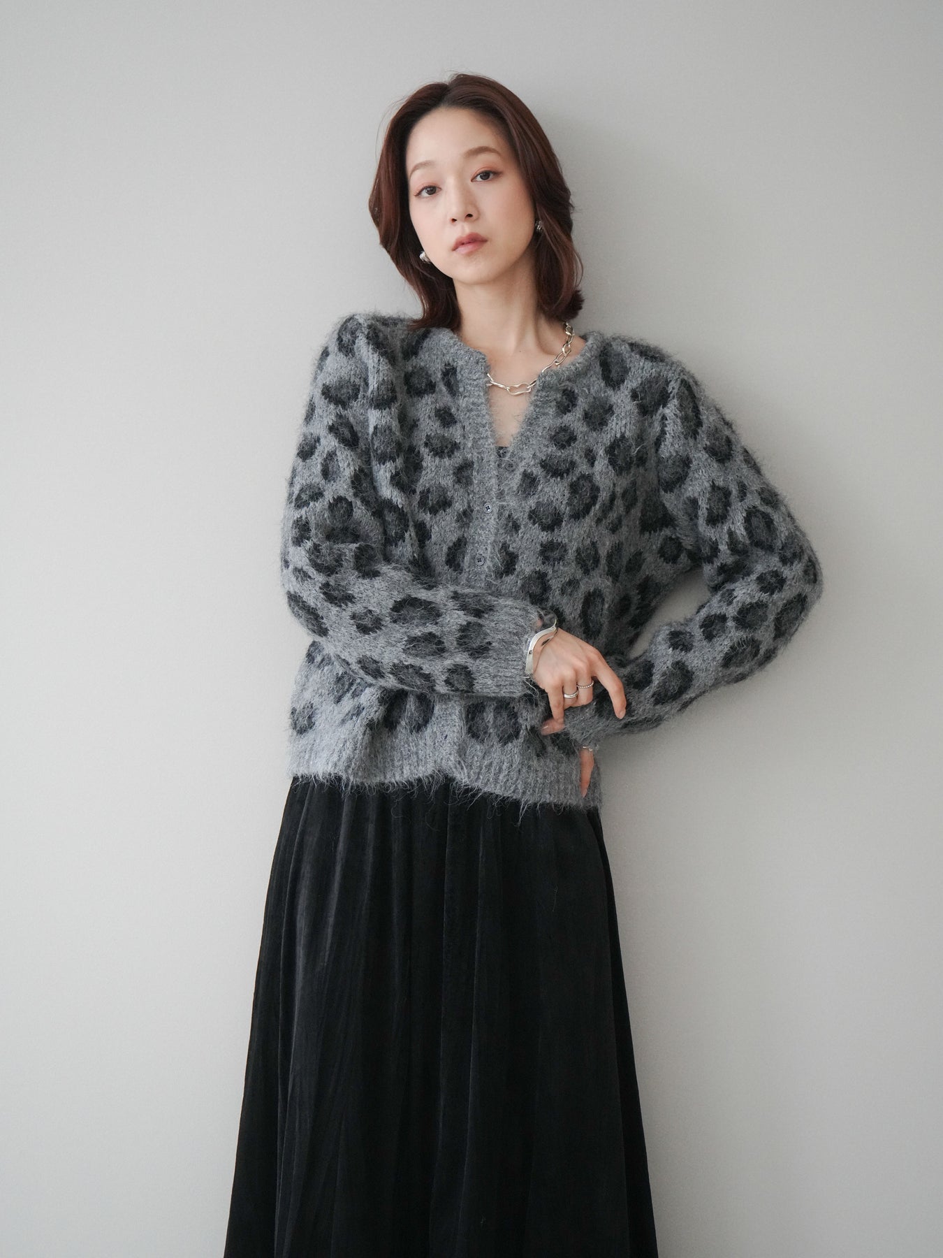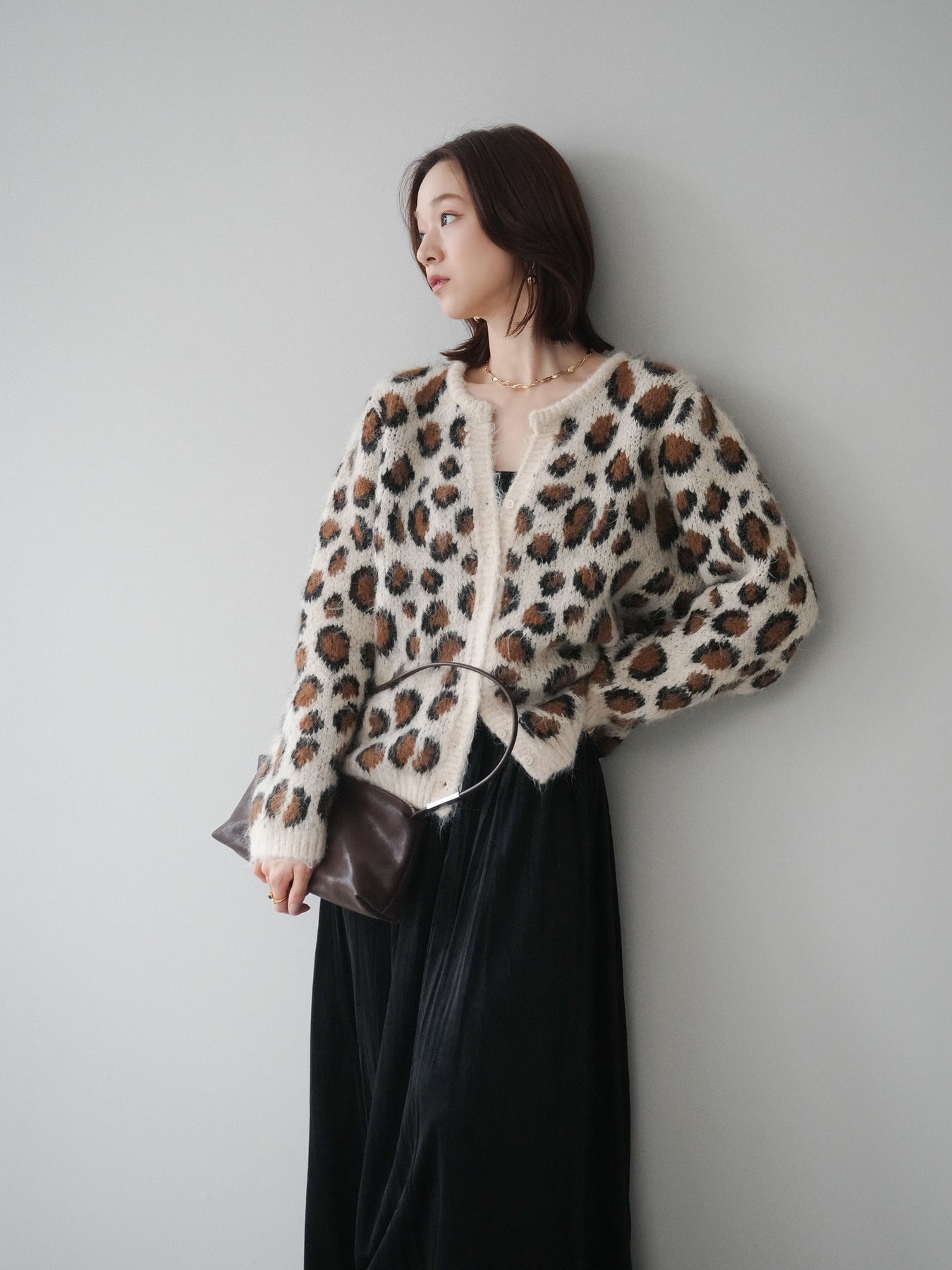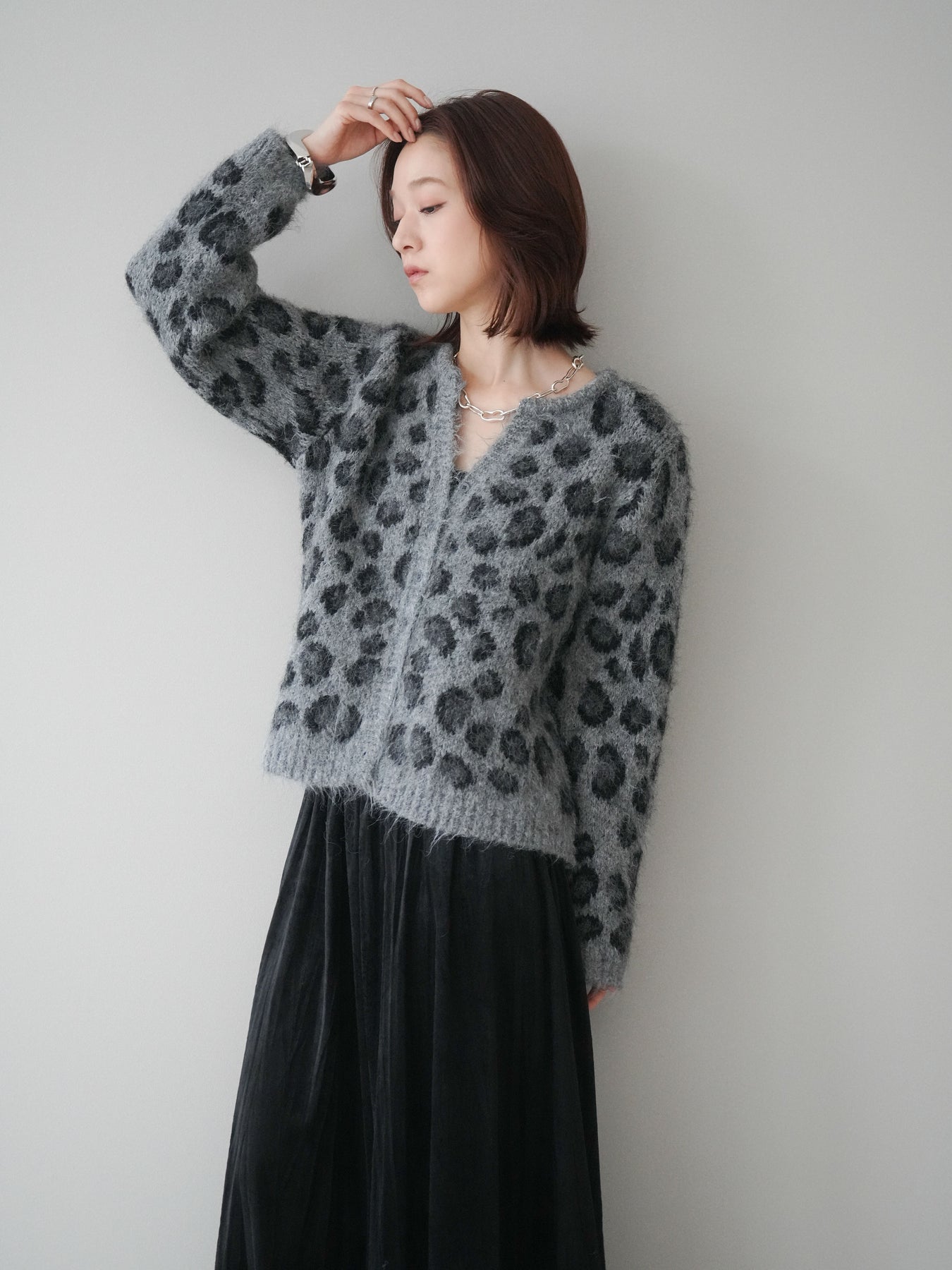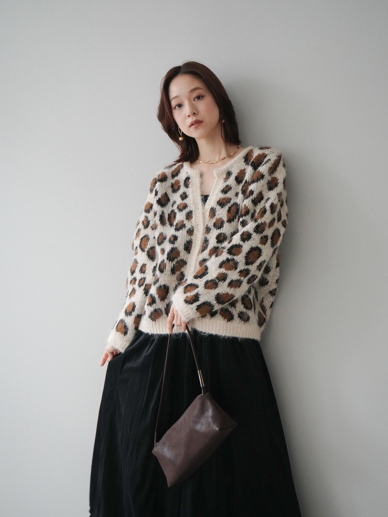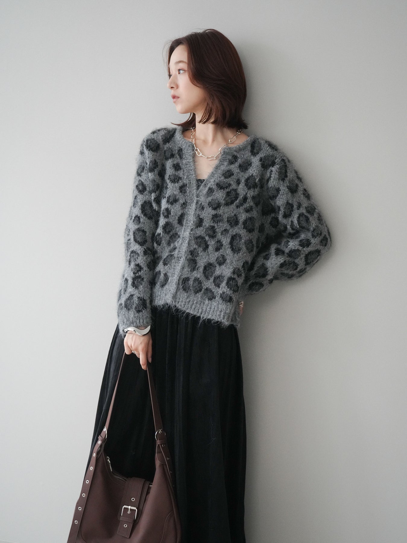◆ [予約]モヘアタッチレオパード柄ニットカーディガン