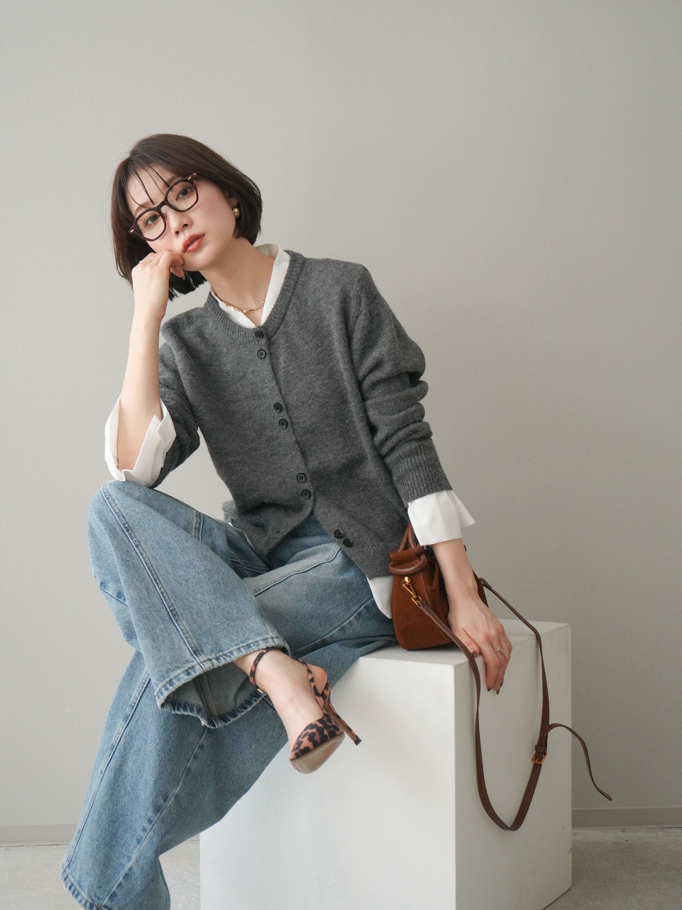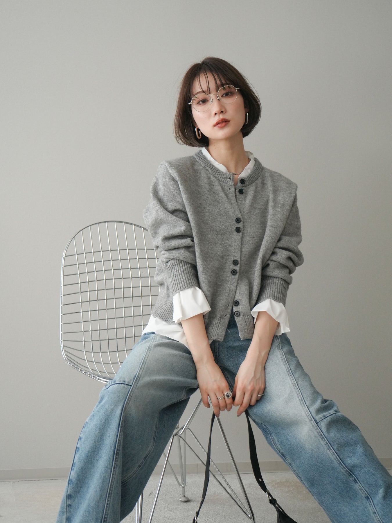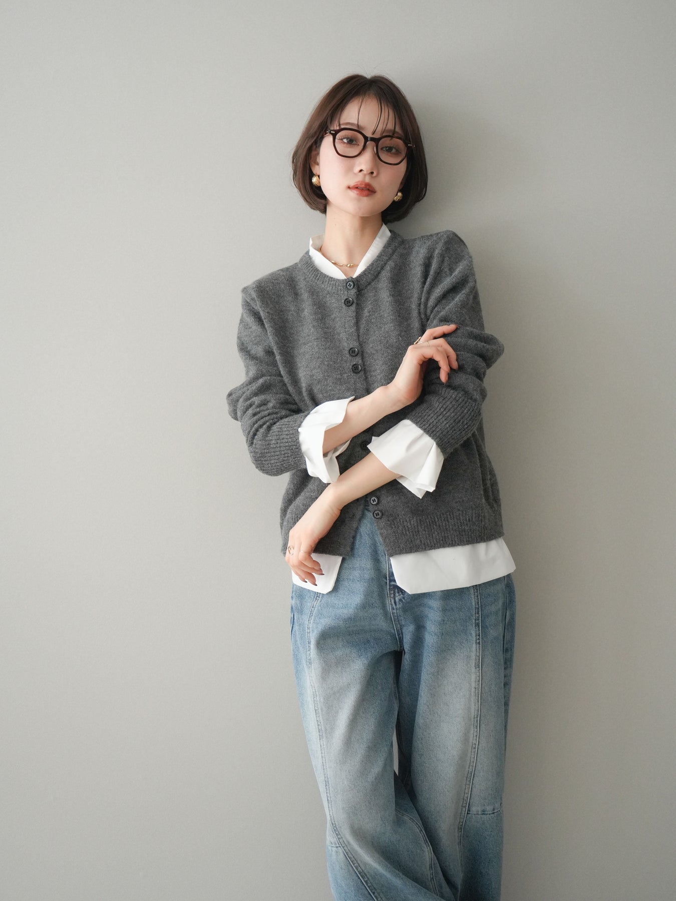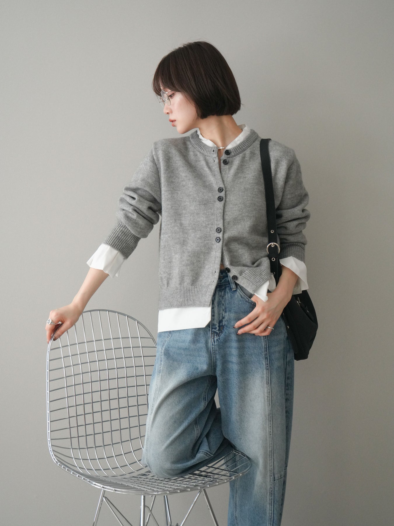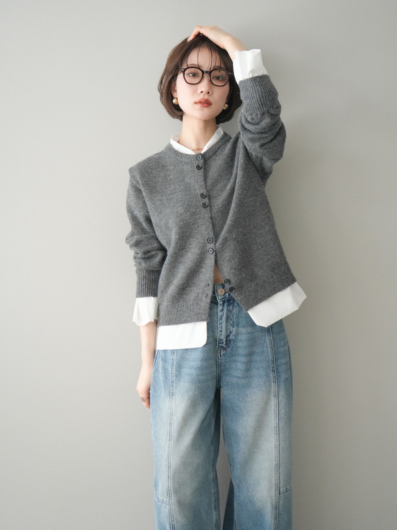 ニットと布帛素材を組み合わせた、レイヤード風デザインが魅力のニットカーディガン。襟元や裾、袖口から覗く布帛ディテールが、シンプルなニットスタイルに程よいきちんと感と軽やかさをプラスします。前を留めてトップスとしても、羽織りとしても着用でき、コーディネートの幅が広がる一着。程よくゆとりのあるシルエットで体のラインを拾いにくく、デイリーからお出かけまで幅広いシーンで活躍します。 ※ボトムス、キャミソール(インナー)以外の商品は一律でインナーは付属していません。