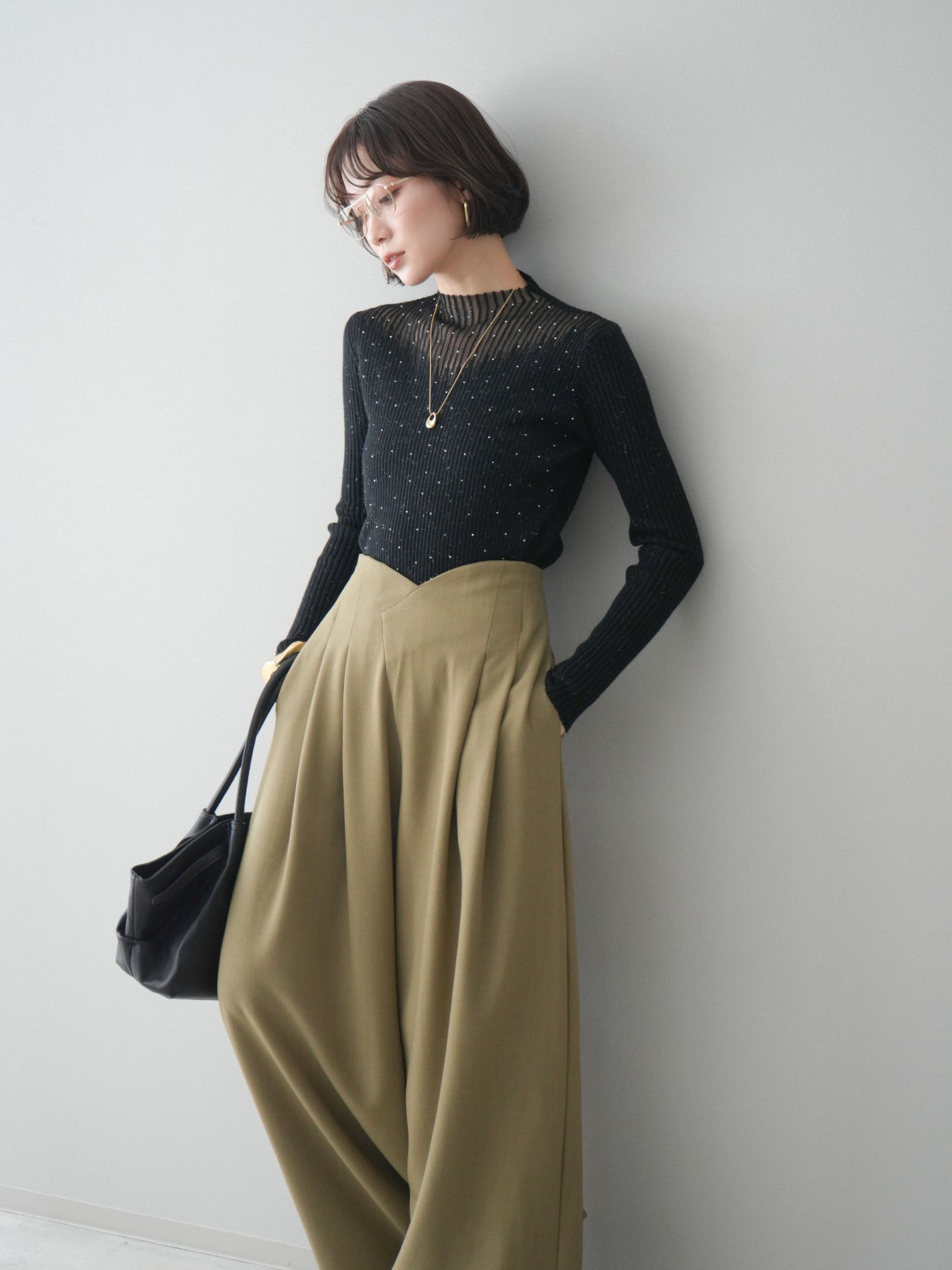さりげく煌めくスパンコールと、シアー切替デザインが印象的なリブニットトップス。繊細な透け感がデコルテや肩まわりを軽やかに演出し、シンプルな中にも女性らしい華やかさをプラスします。程よくフィットするリブ素材がすっきりとしたシルエットを叶え、1枚ではもちろん、ジャケットやカーディガンのインナーとしても着映えする一着。デイリーからきれいめシーンまで、幅広いスタイリングに取り入れやすいアイテムです。 ※ボトムス、キャミソール(インナー)以外の商品は一律でインナーは付属していません。