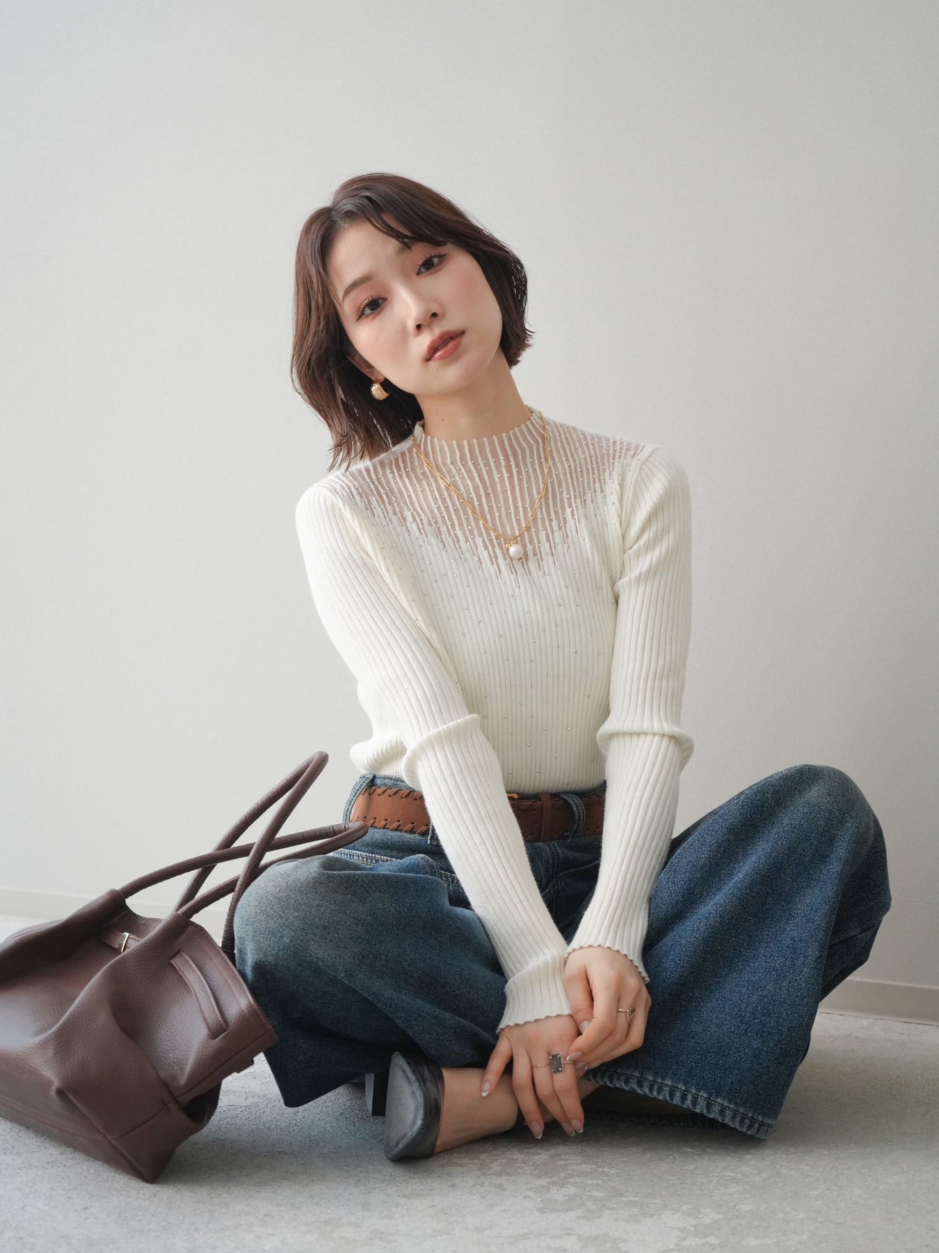 さりげく煌めくスパンコールと、シアー切替デザインが印象的なリブニットトップス。繊細な透け感がデコルテや肩まわりを軽やかに演出し、シンプルな中にも女性らしい華やかさをプラスします。程よくフィットするリブ素材がすっきりとしたシルエットを叶え、1枚ではもちろん、ジャケットやカーディガンのインナーとしても着映えする一着。デイリーからきれいめシーンまで、幅広いスタイリングに取り入れやすいアイテムです。 ※ボトムス、キャミソール(インナー)以外の商品は一律でインナーは付属していません。