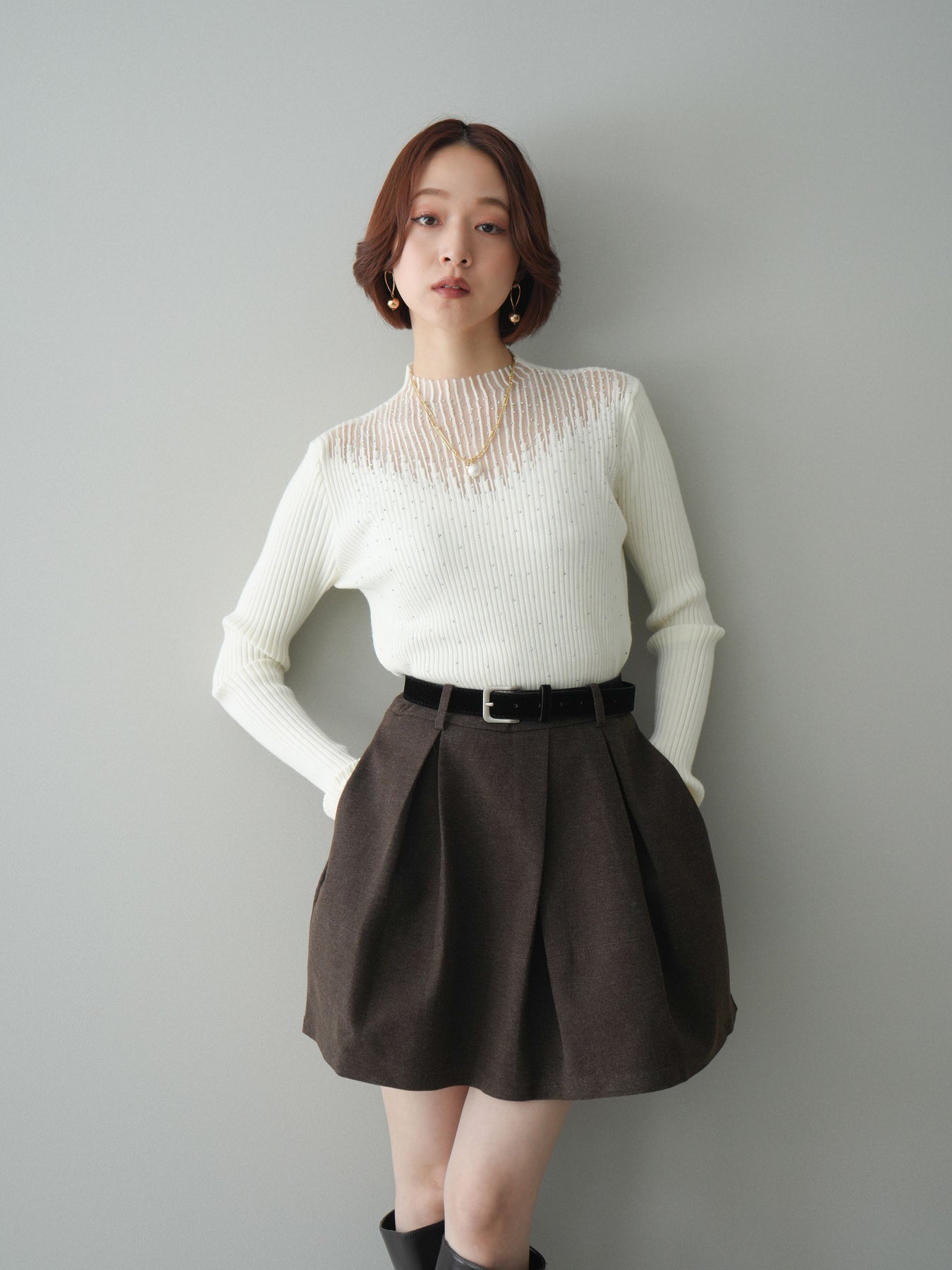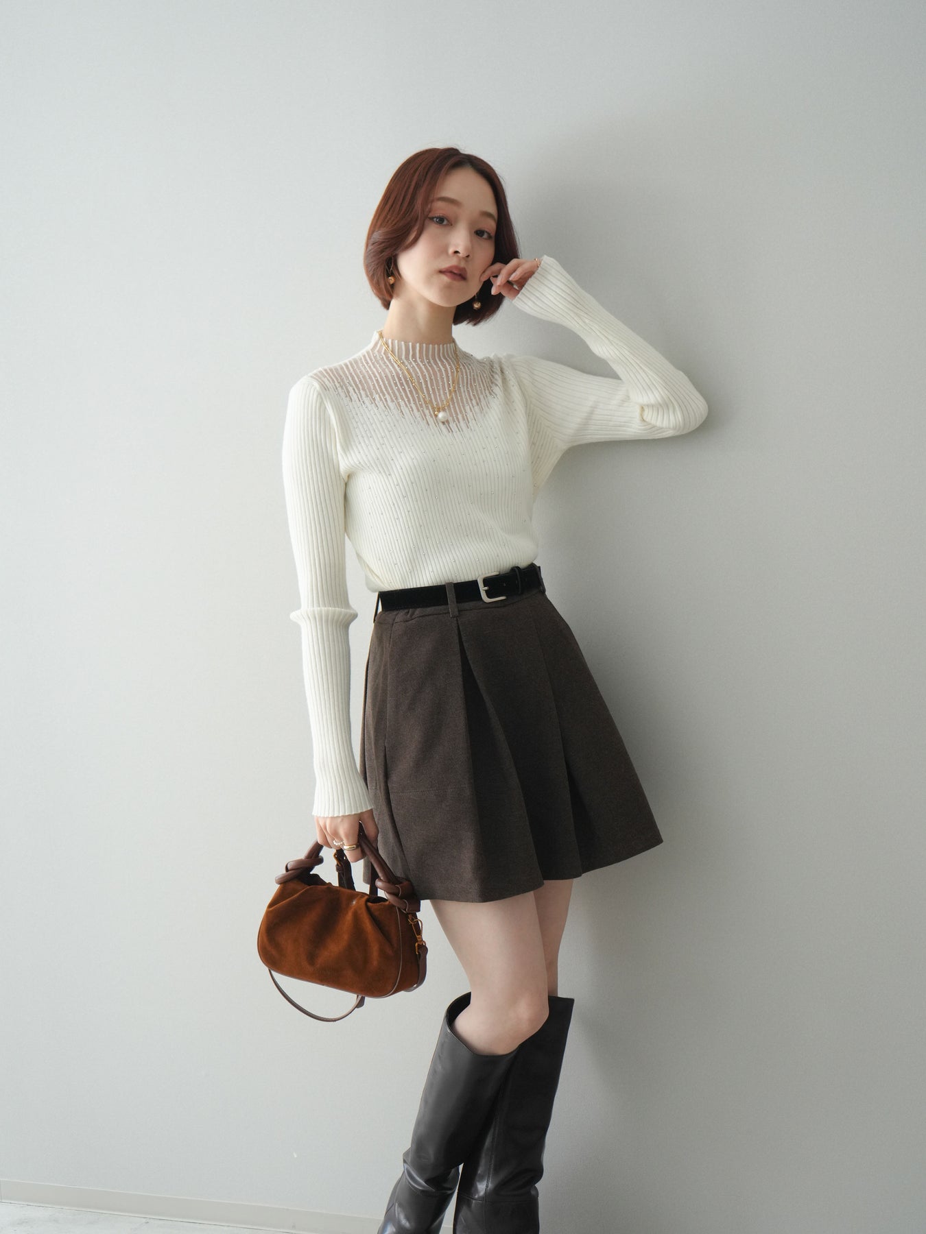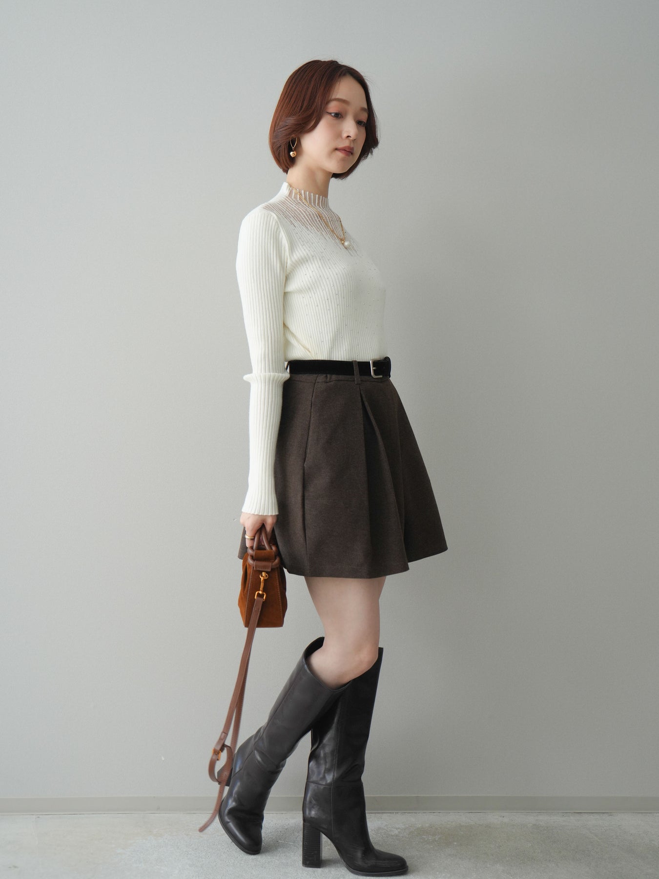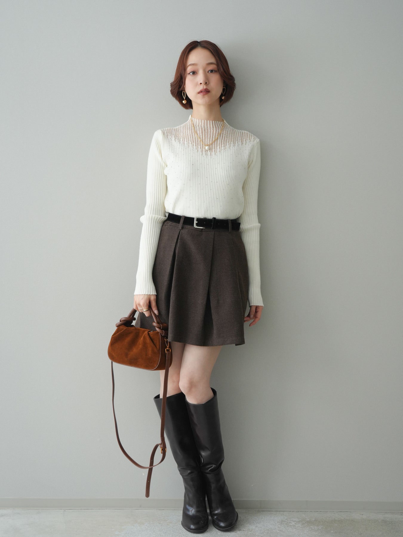 ◆ [予約]ベルト付きタックミニスカート