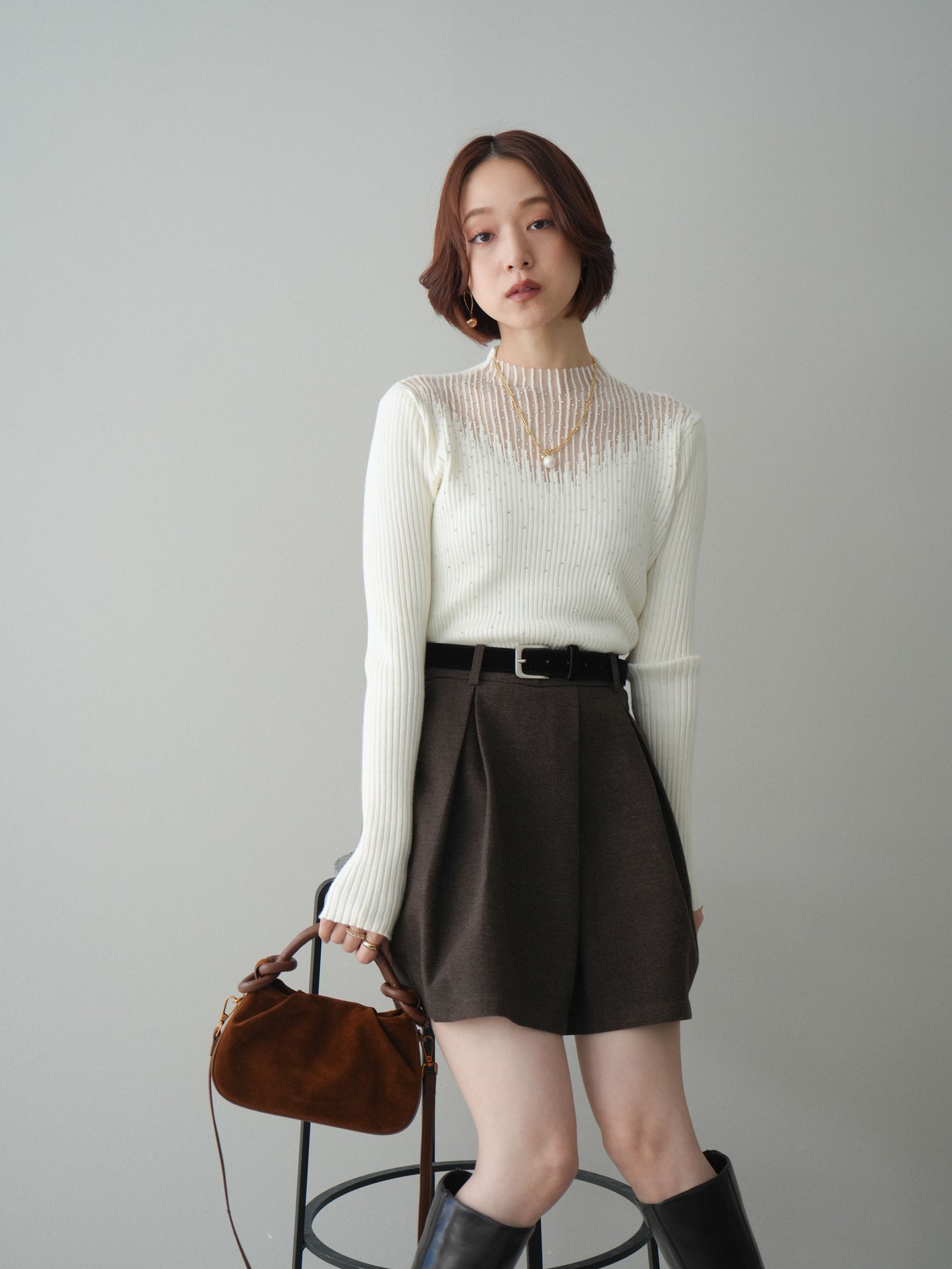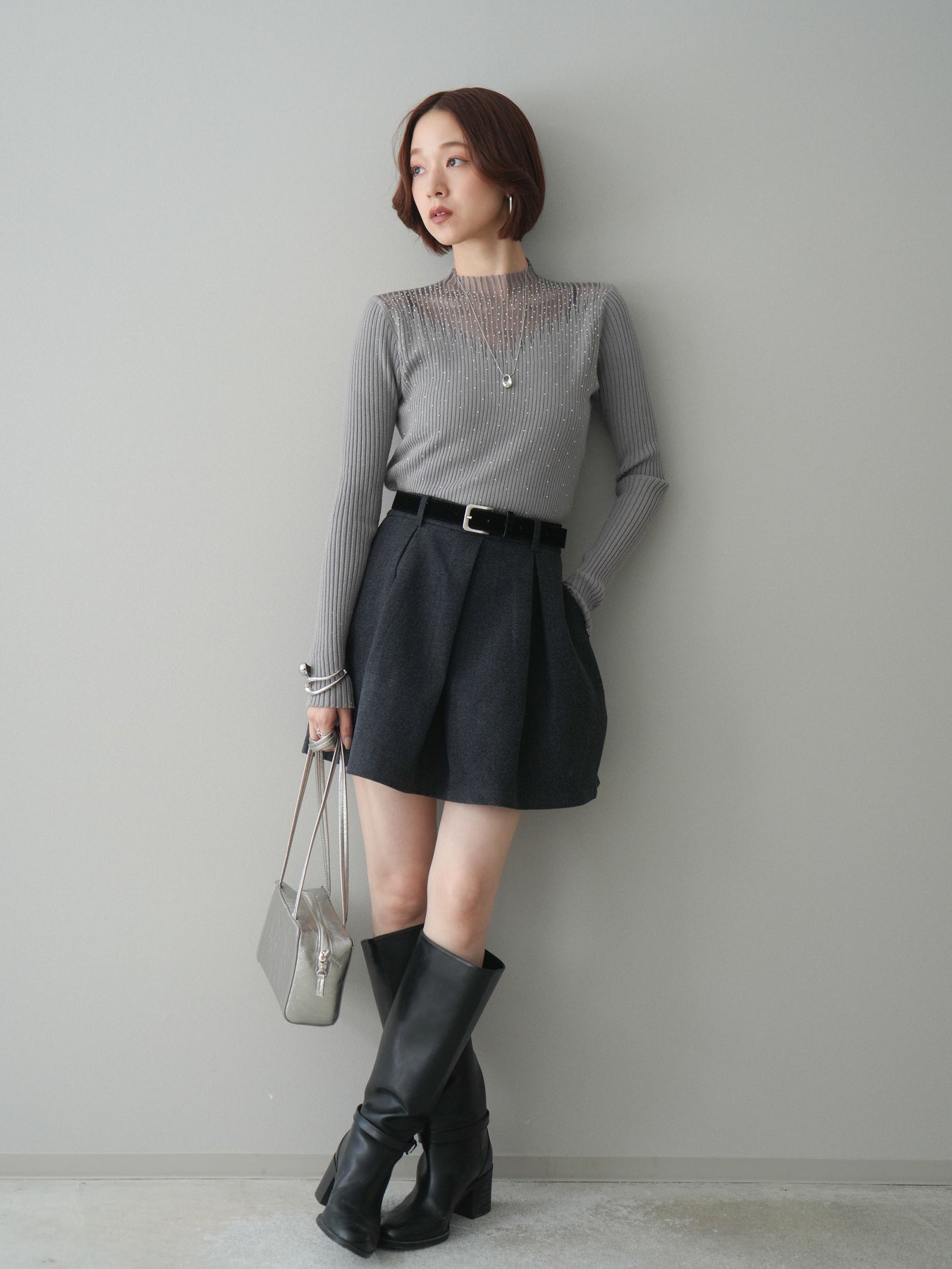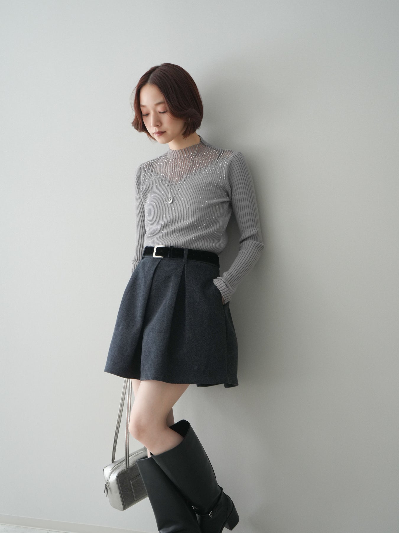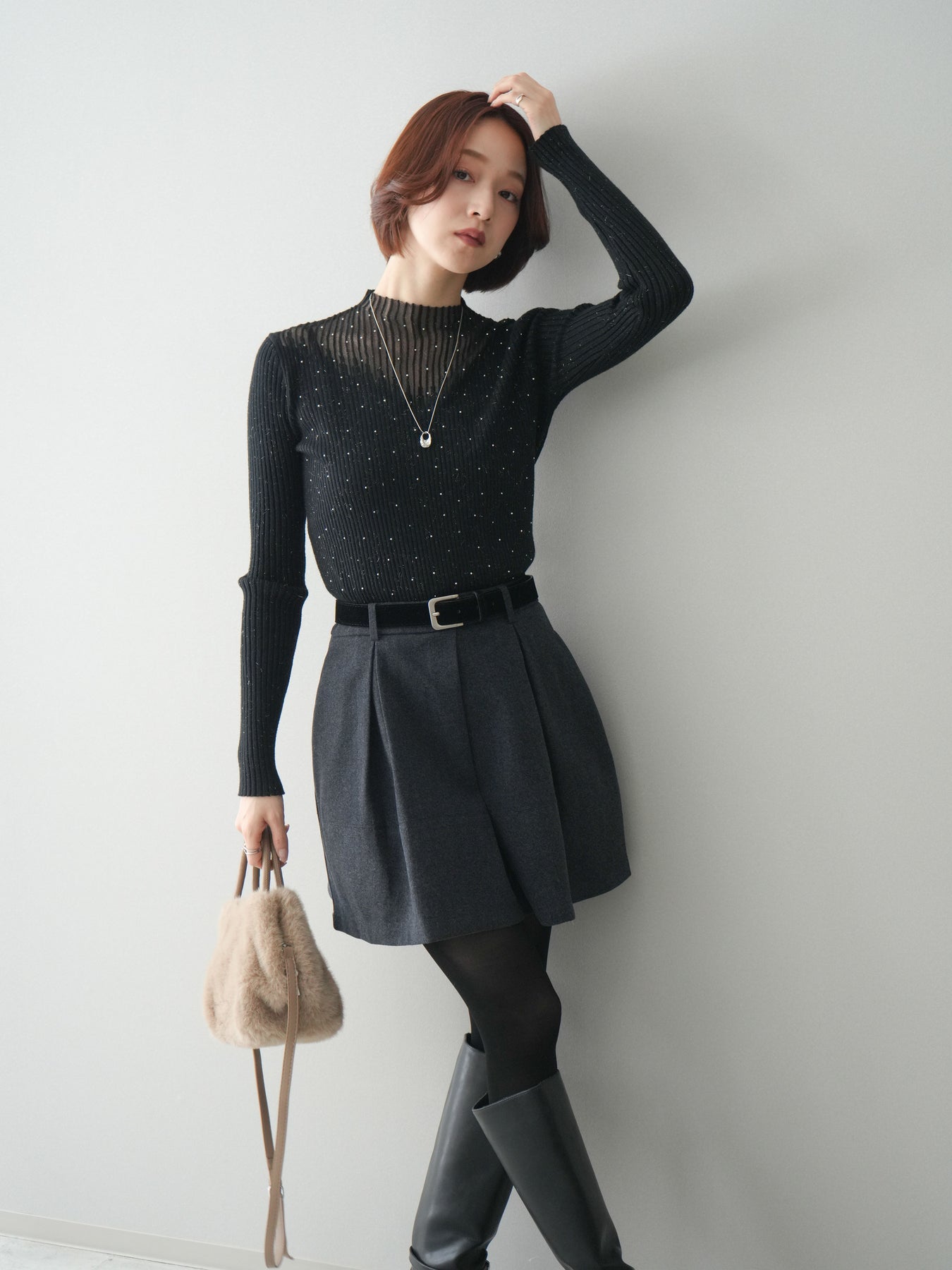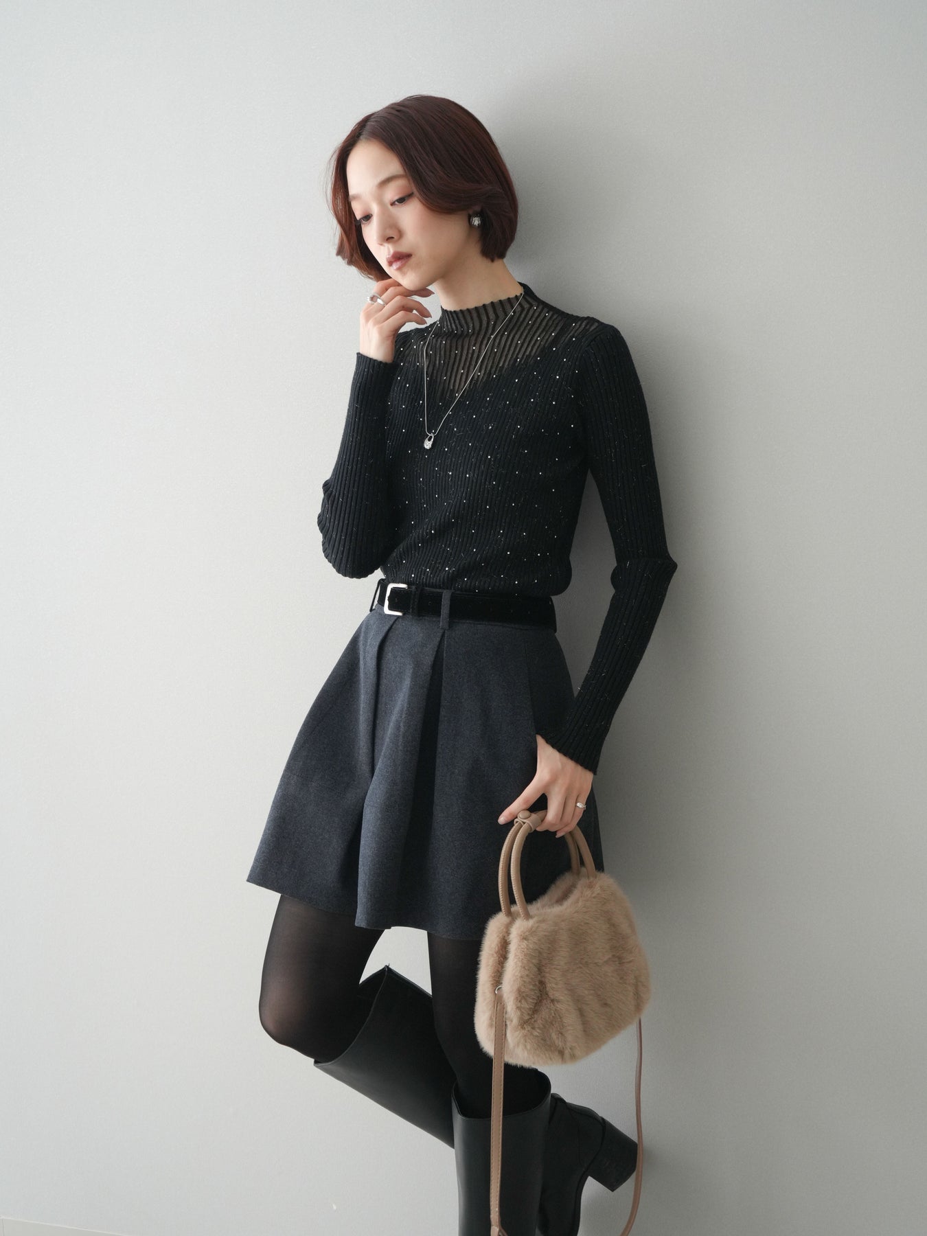 ◆ [予約]ベルト付きタックミニスカート