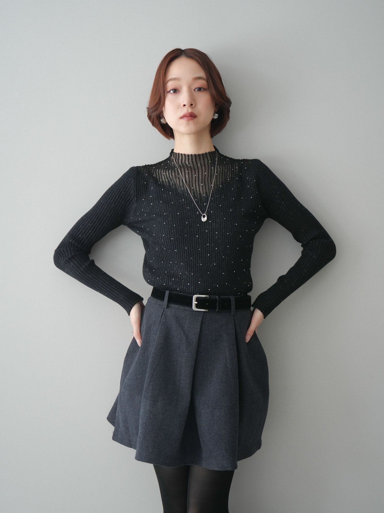 さりげく煌めくスパンコールと、シアー切替デザインが印象的なリブニットトップス。繊細な透け感がデコルテや肩まわりを軽やかに演出し、シンプルな中にも女性らしい華やかさをプラスします。程よくフィットするリブ素材がすっきりとしたシルエットを叶え、1枚ではもちろん、ジャケットやカーディガンのインナーとしても着映えする一着。デイリーからきれいめシーンまで、幅広いスタイリングに取り入れやすいアイテムです。 ※ボトムス、キャミソール(インナー)以外の商品は一律でインナーは付属していません。