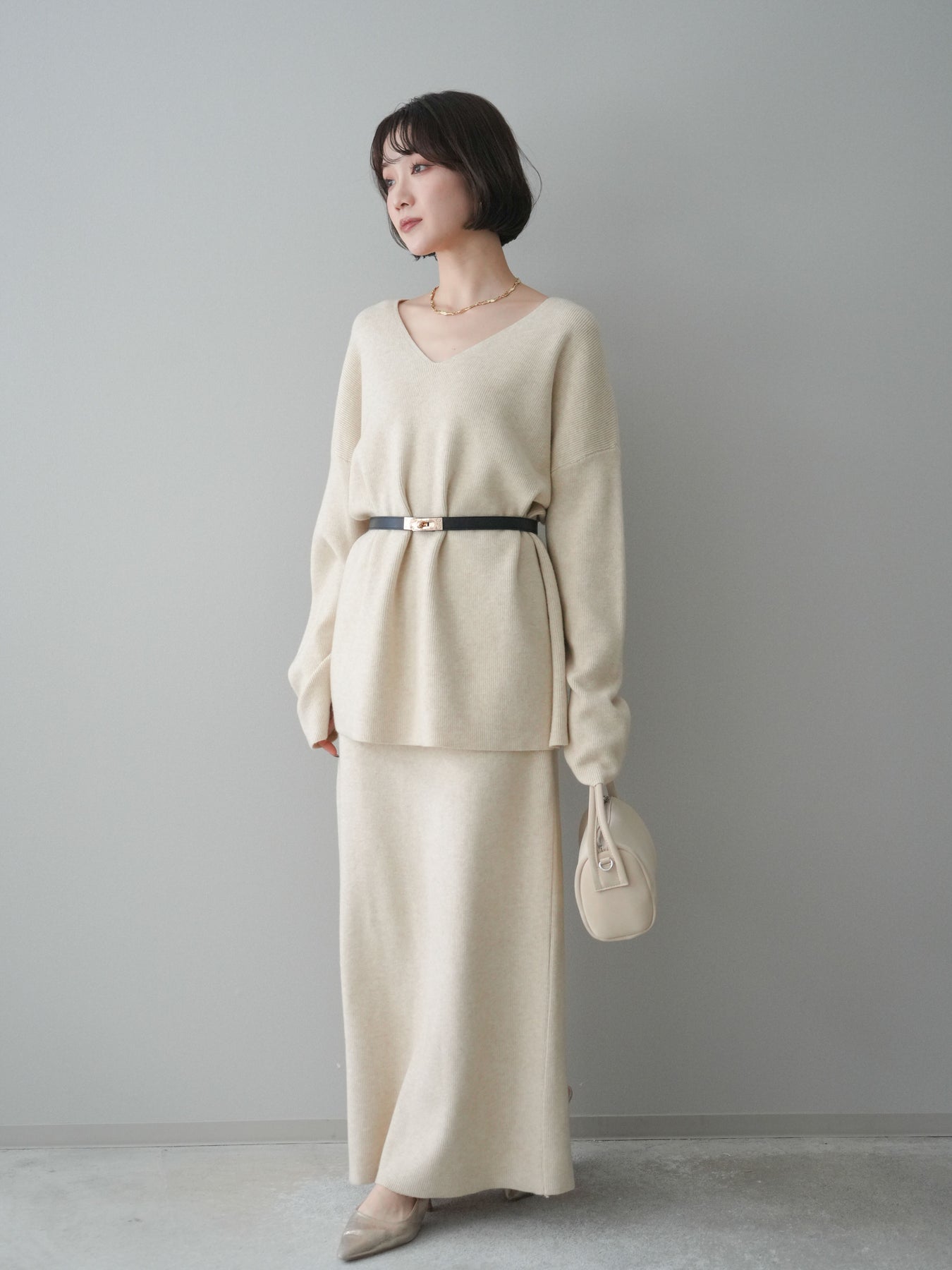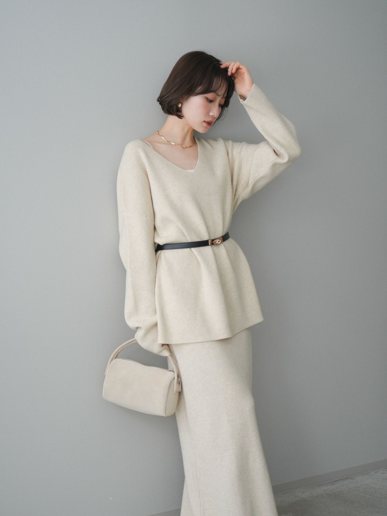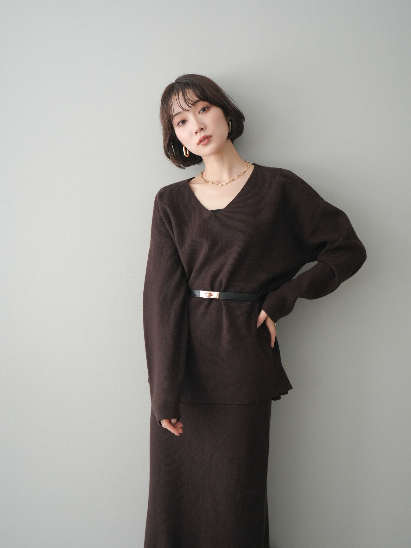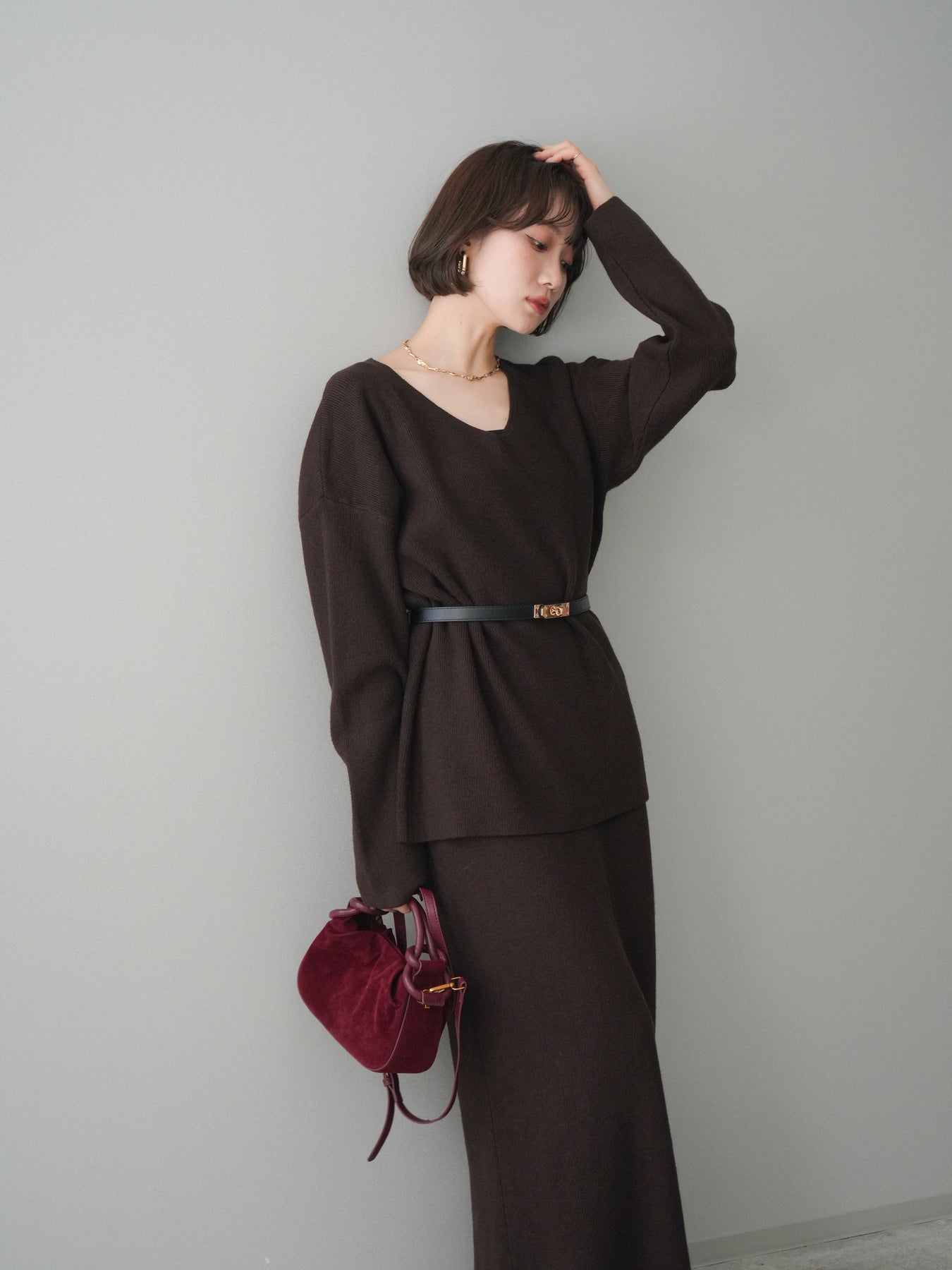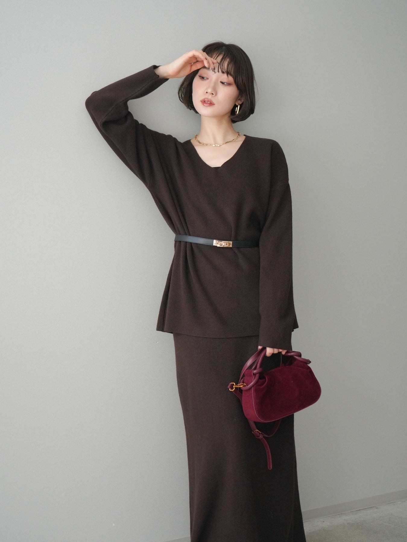 ◆ [予約]ベルト付Vネックニット&スカートSET UP