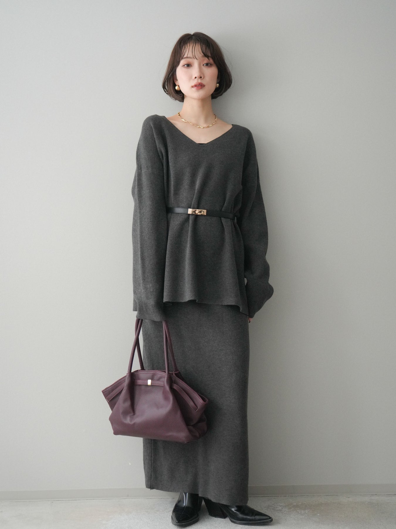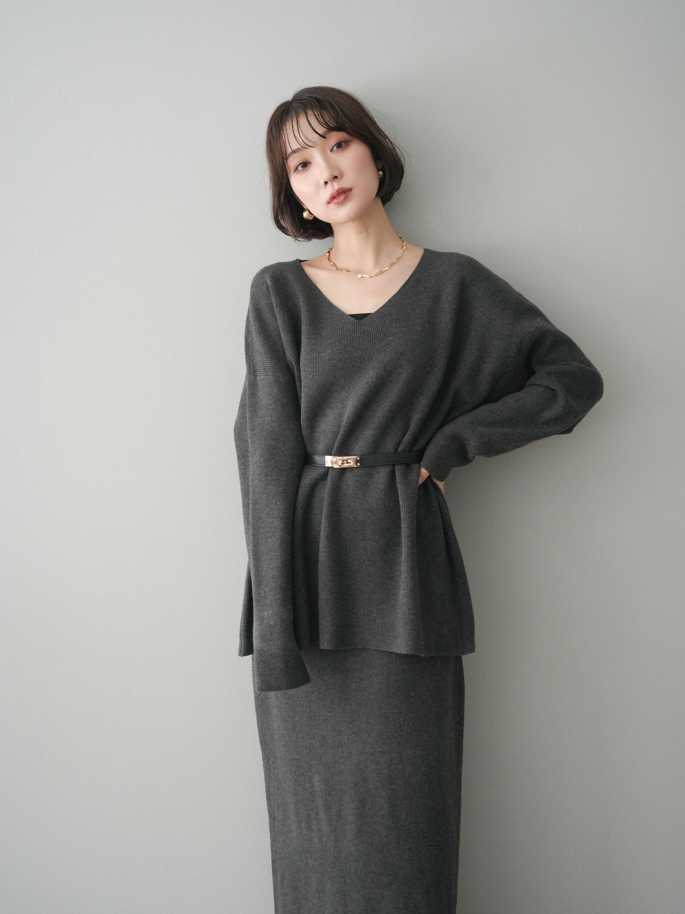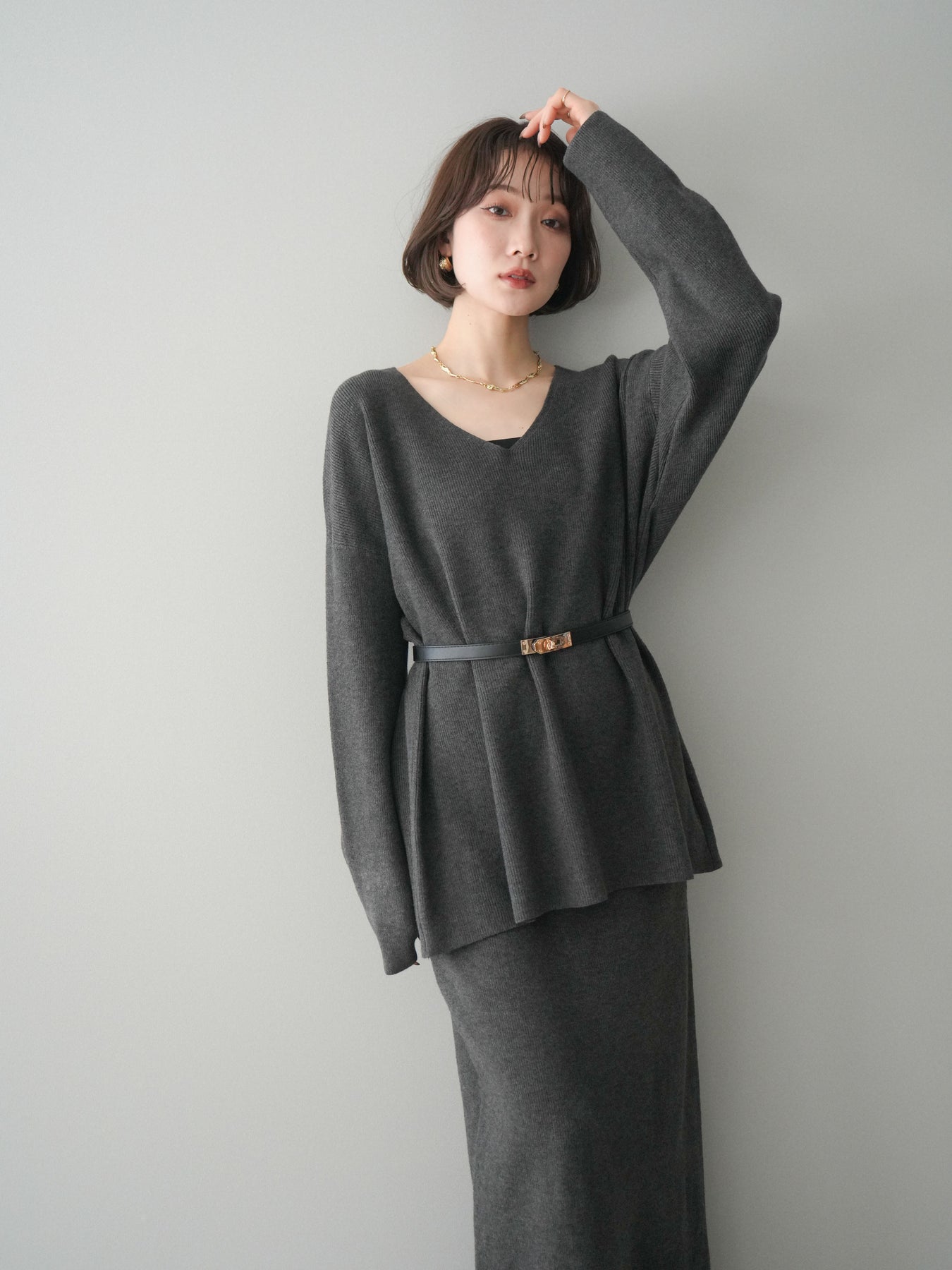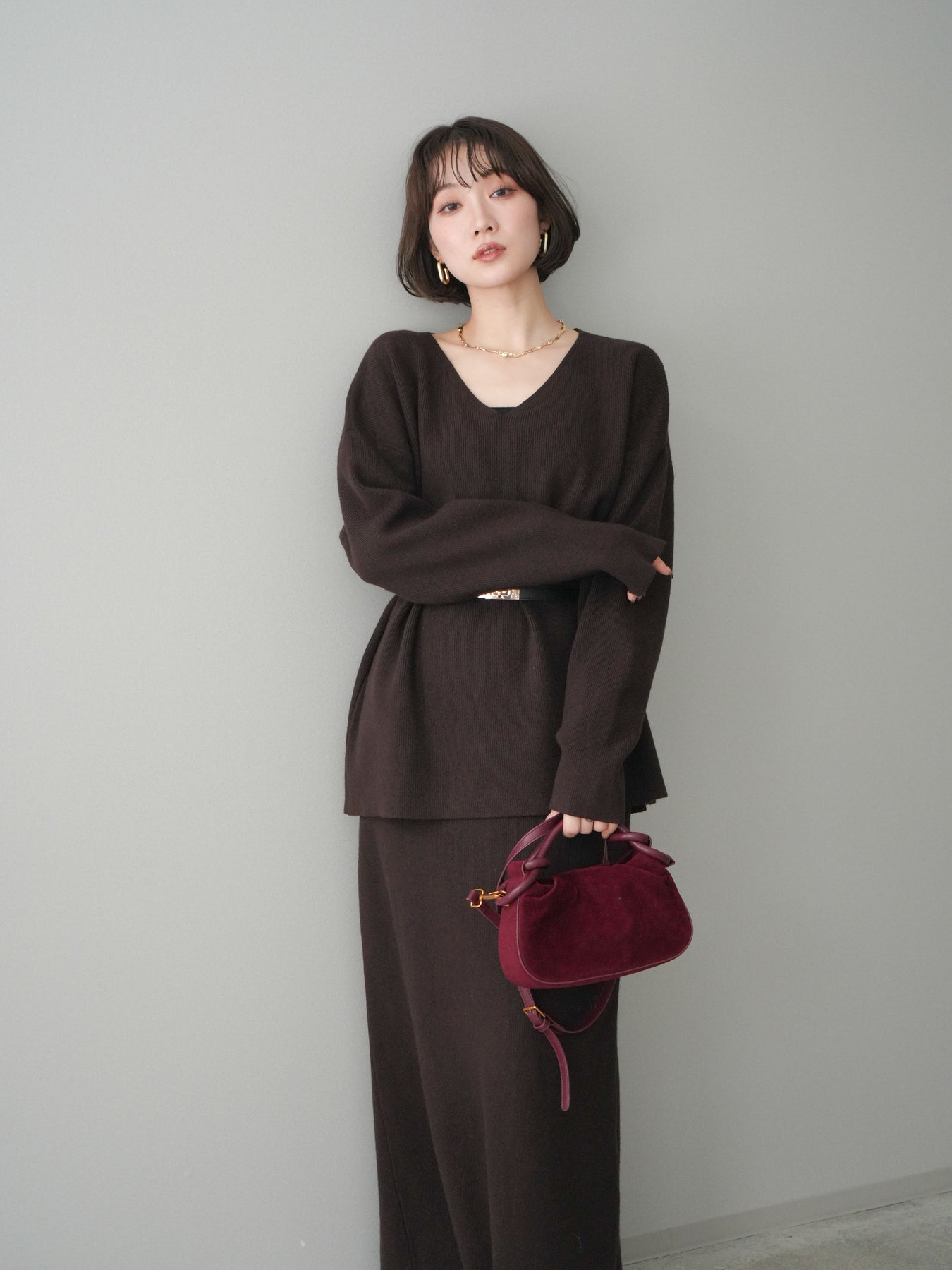 ◆ [予約]ベルト付Vネックニット&スカートSET UP