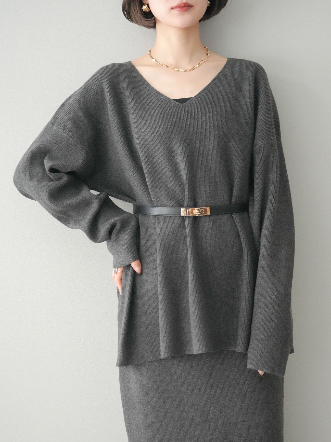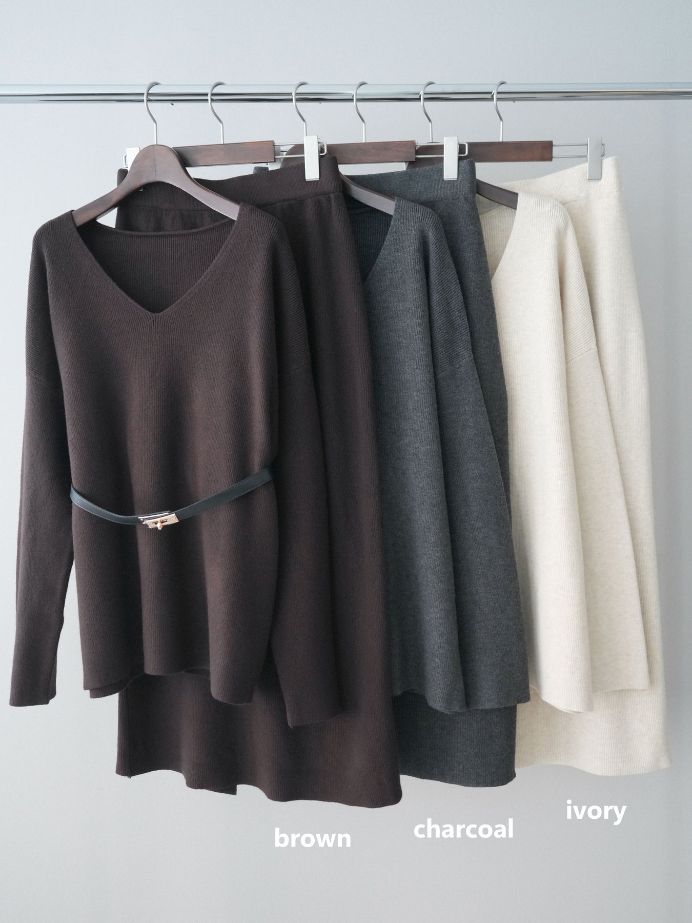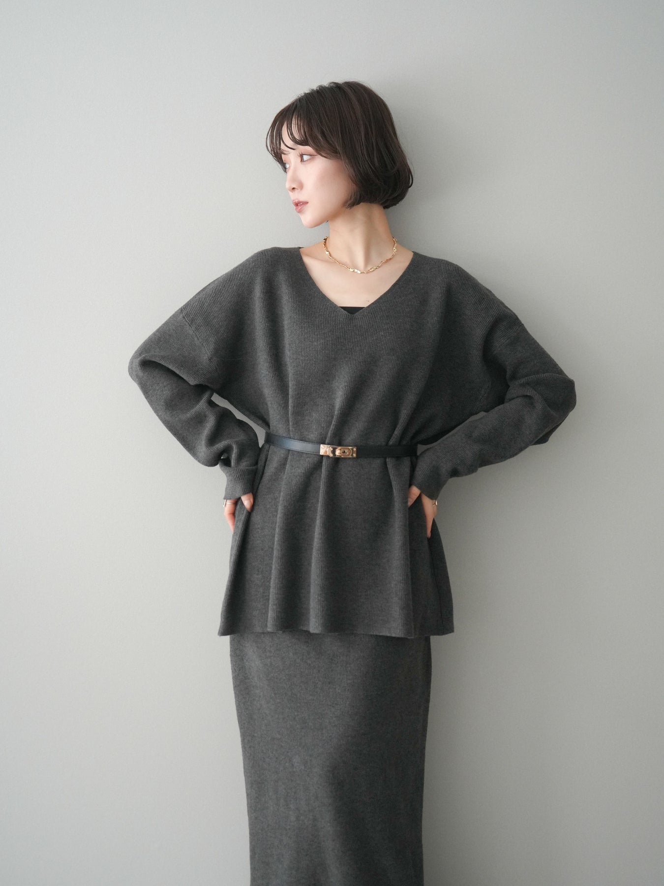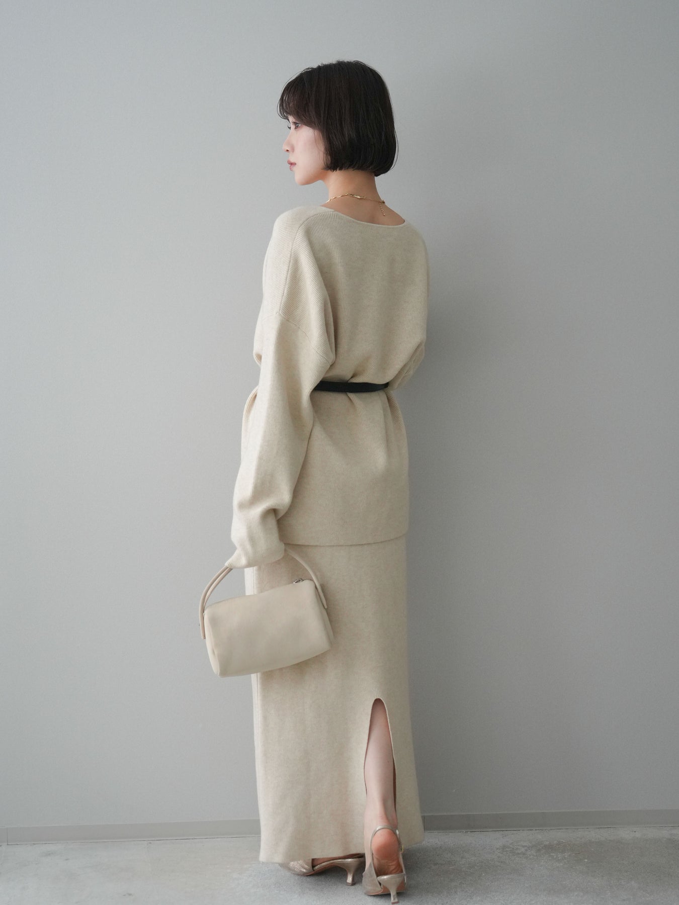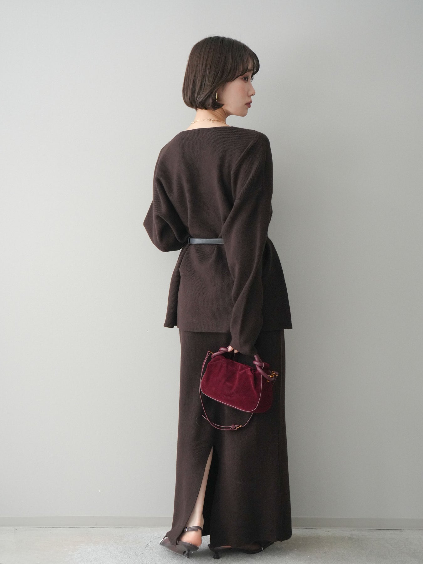 ◆ [予約]ベルト付Vネックニット&スカートSET UP