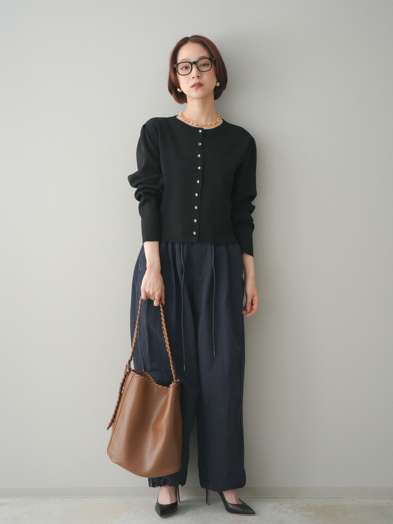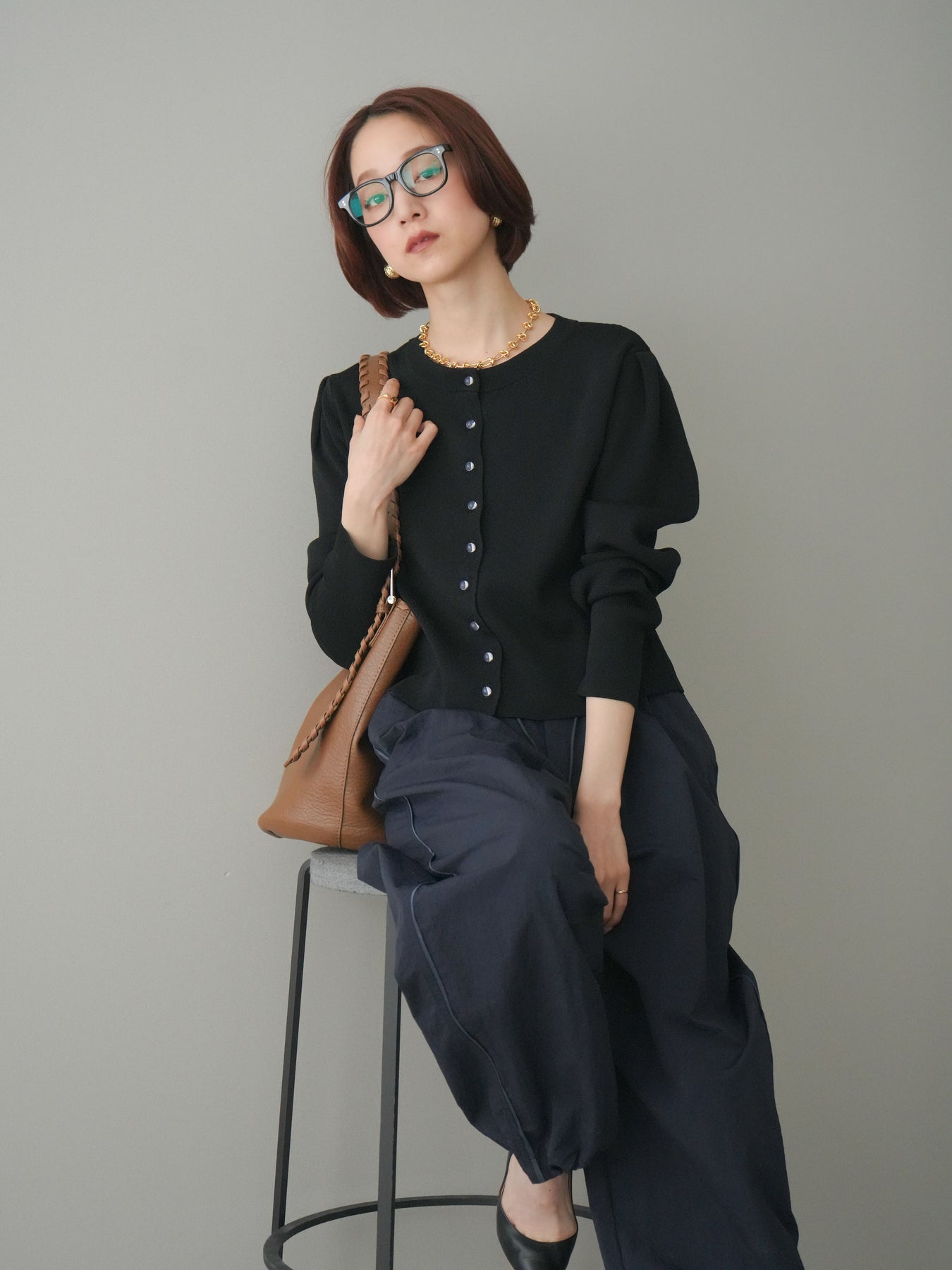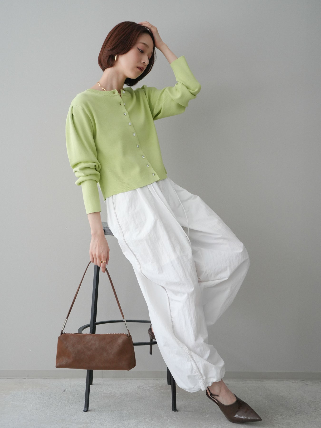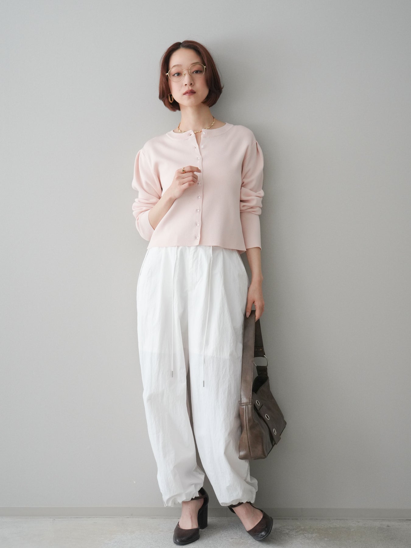 フロントに並ぶクリアボタンが、さりげない抜け感を演出するニットカーディガン。タックを施したデザインが立体感を生み、シンプルながらも表情のある一着に仕上がっています。程よくコンパクトなシルエットで、前を留めてトップスとしても、羽織りとしても着用しやすいのが魅力。きれいめにもカジュアルにも馴染み、ボトムスを選ばず幅広いスタイリングに活躍します。 ※ボトムス、キャミソール(インナー)以外の商品は一律でインナーは付属していません。