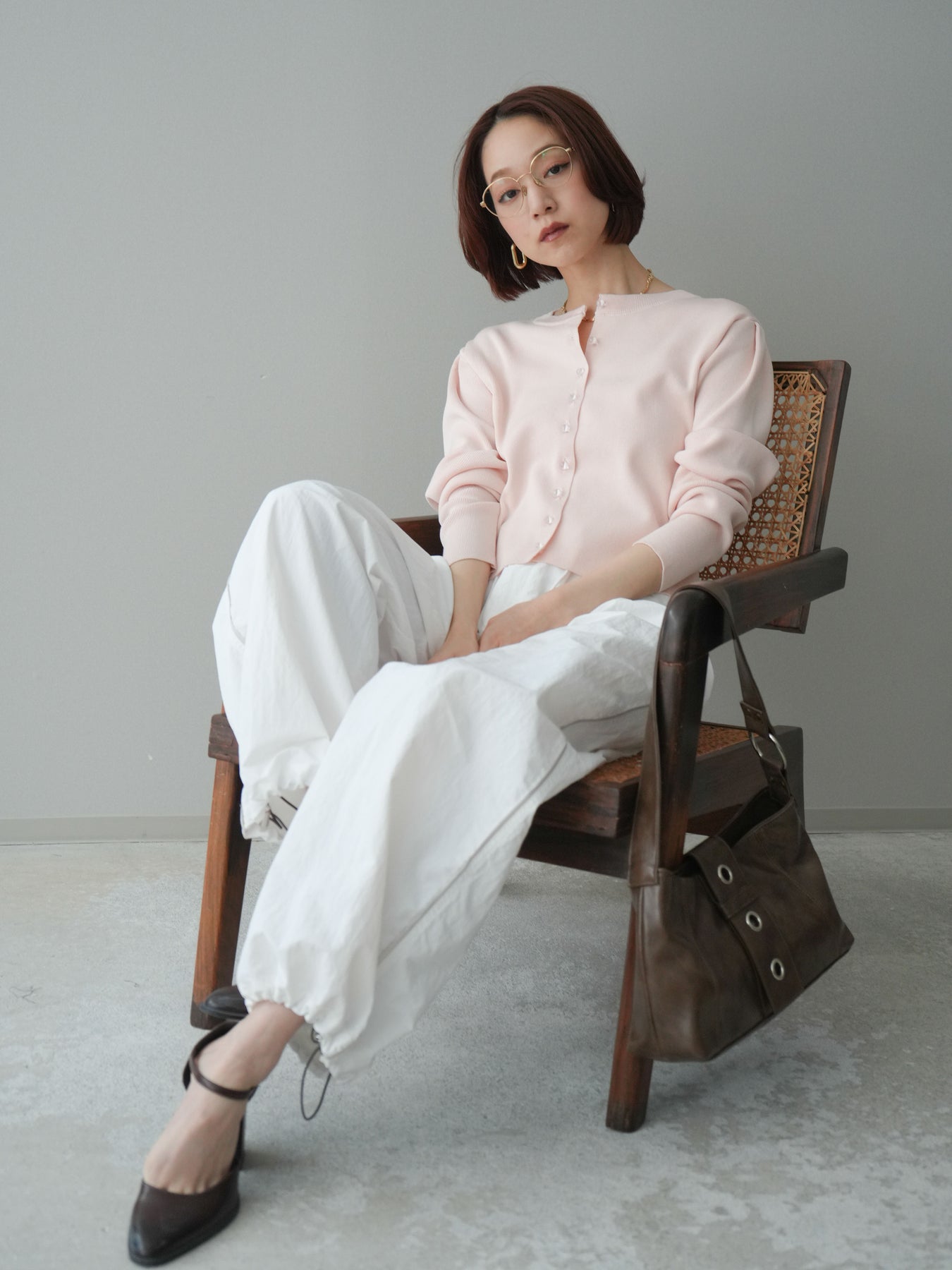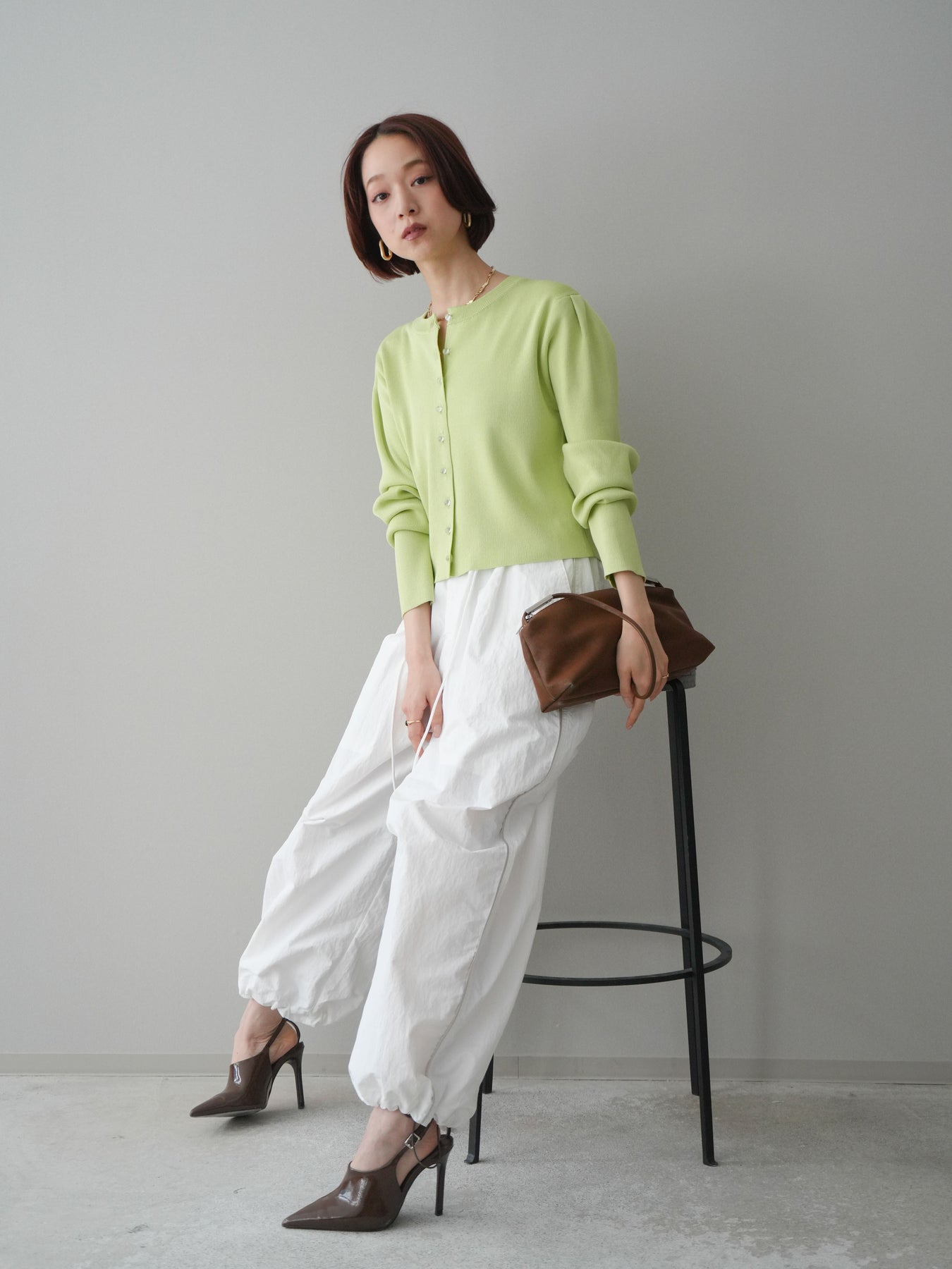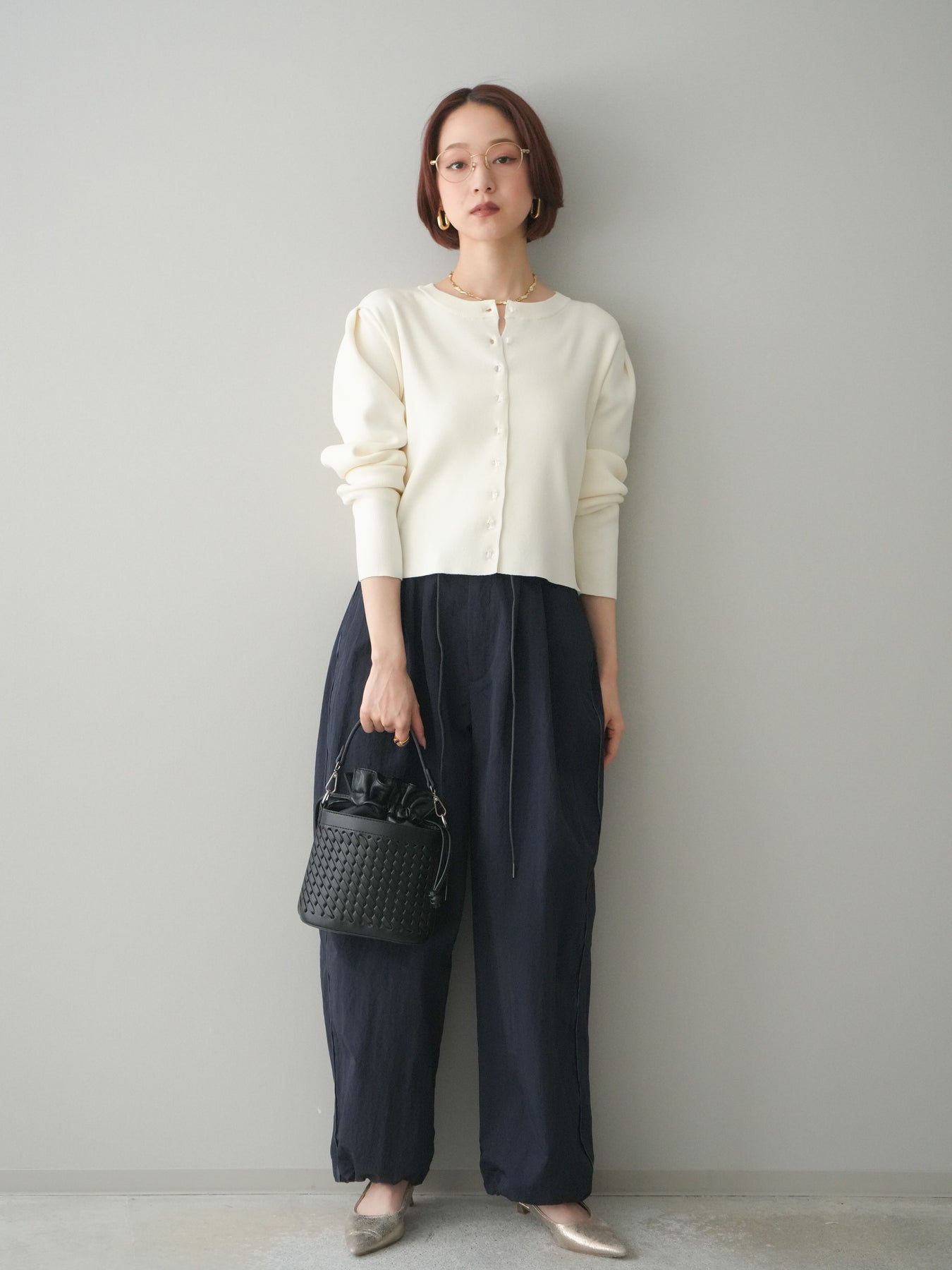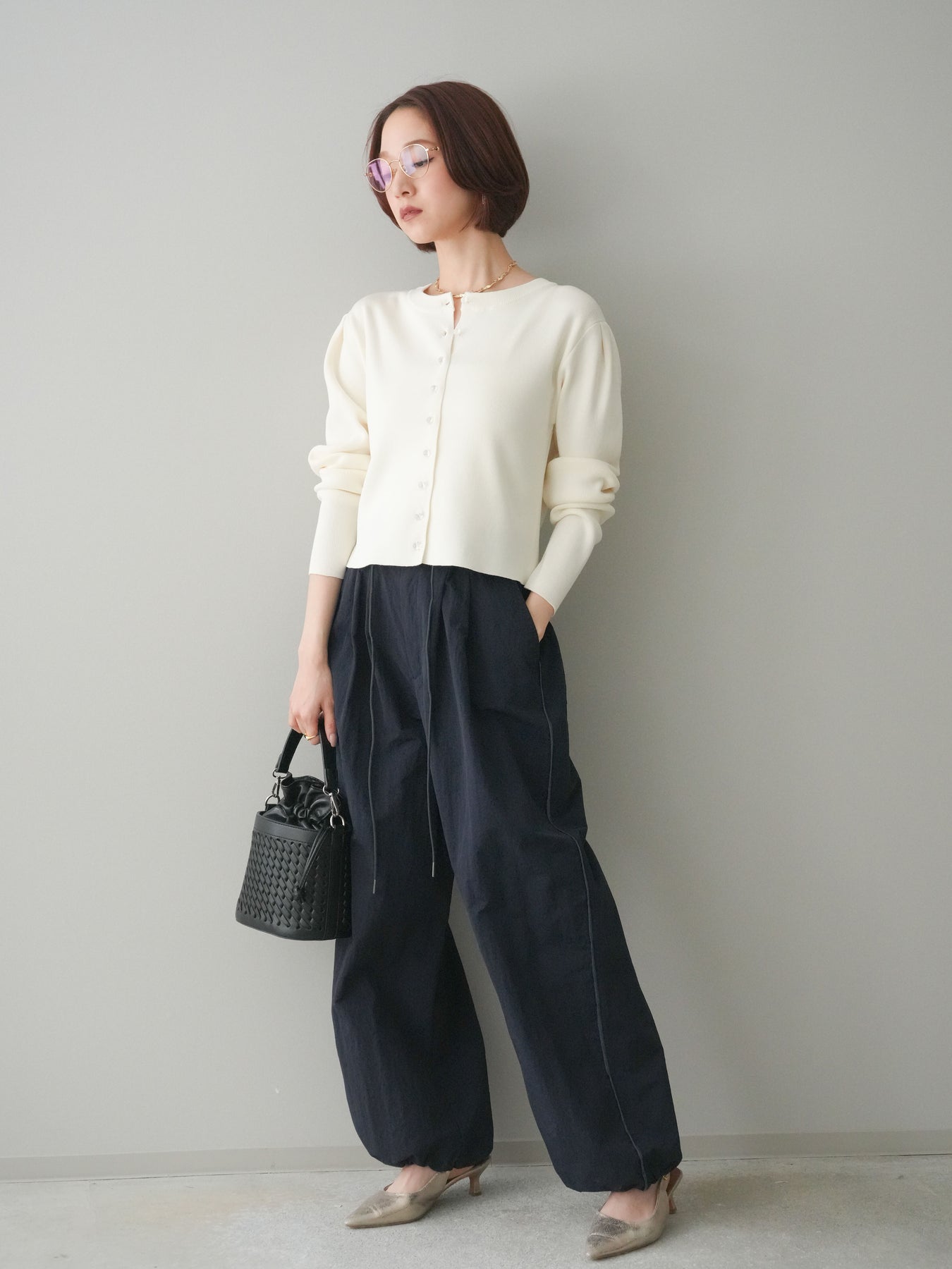 フロントに並ぶクリアボタンが、さりげない抜け感を演出するニットカーディガン。タックを施したデザインが立体感を生み、シンプルながらも表情のある一着に仕上がっています。程よくコンパクトなシルエットで、前を留めてトップスとしても、羽織りとしても着用しやすいのが魅力。きれいめにもカジュアルにも馴染み、ボトムスを選ばず幅広いスタイリングに活躍します。 ※ボトムス、キャミソール(インナー)以外の商品は一律でインナーは付属していません。