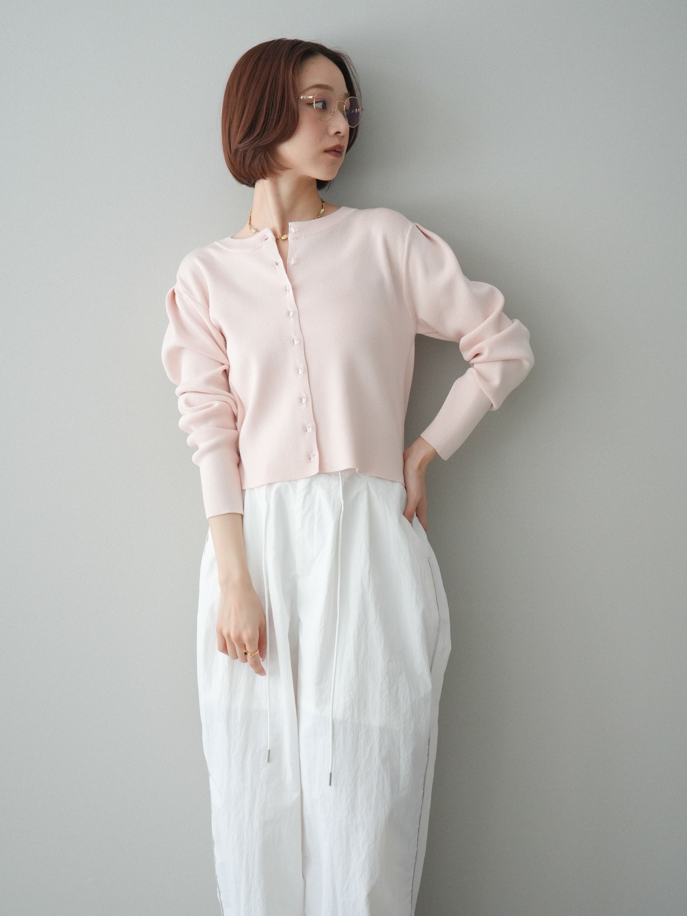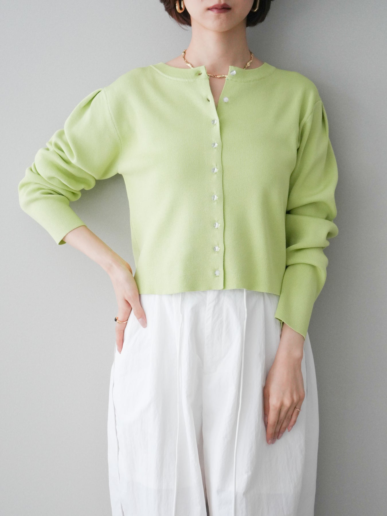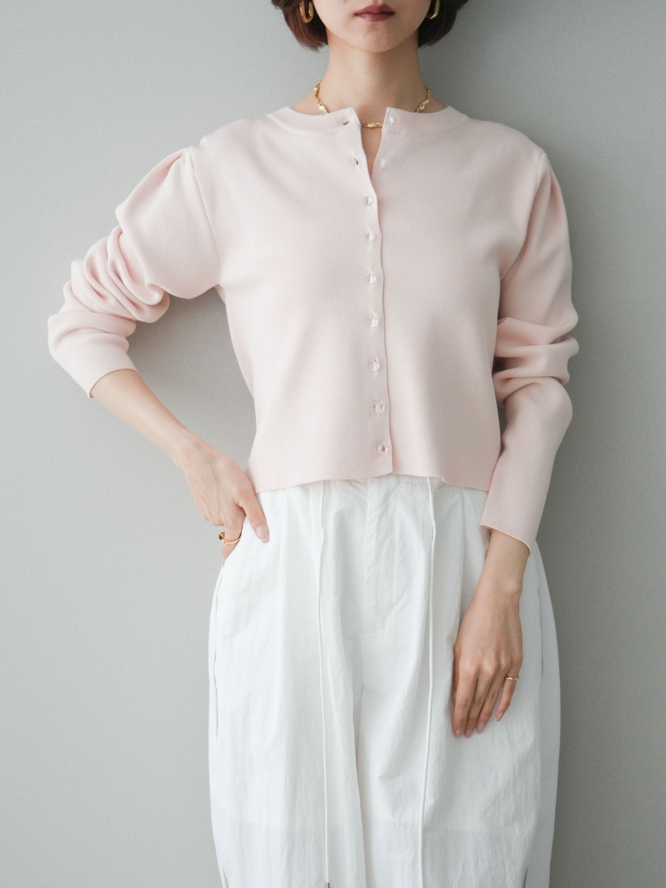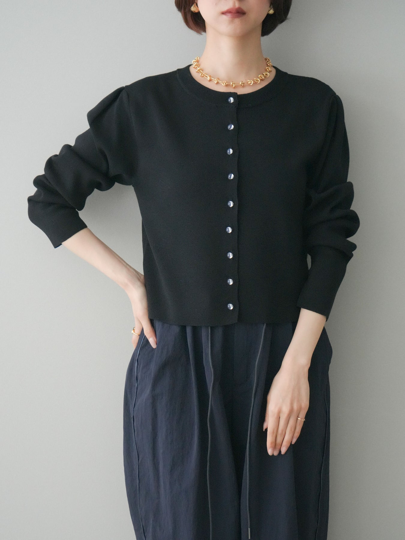 ◆ [予約]クリアボタンタックニットカーディガン