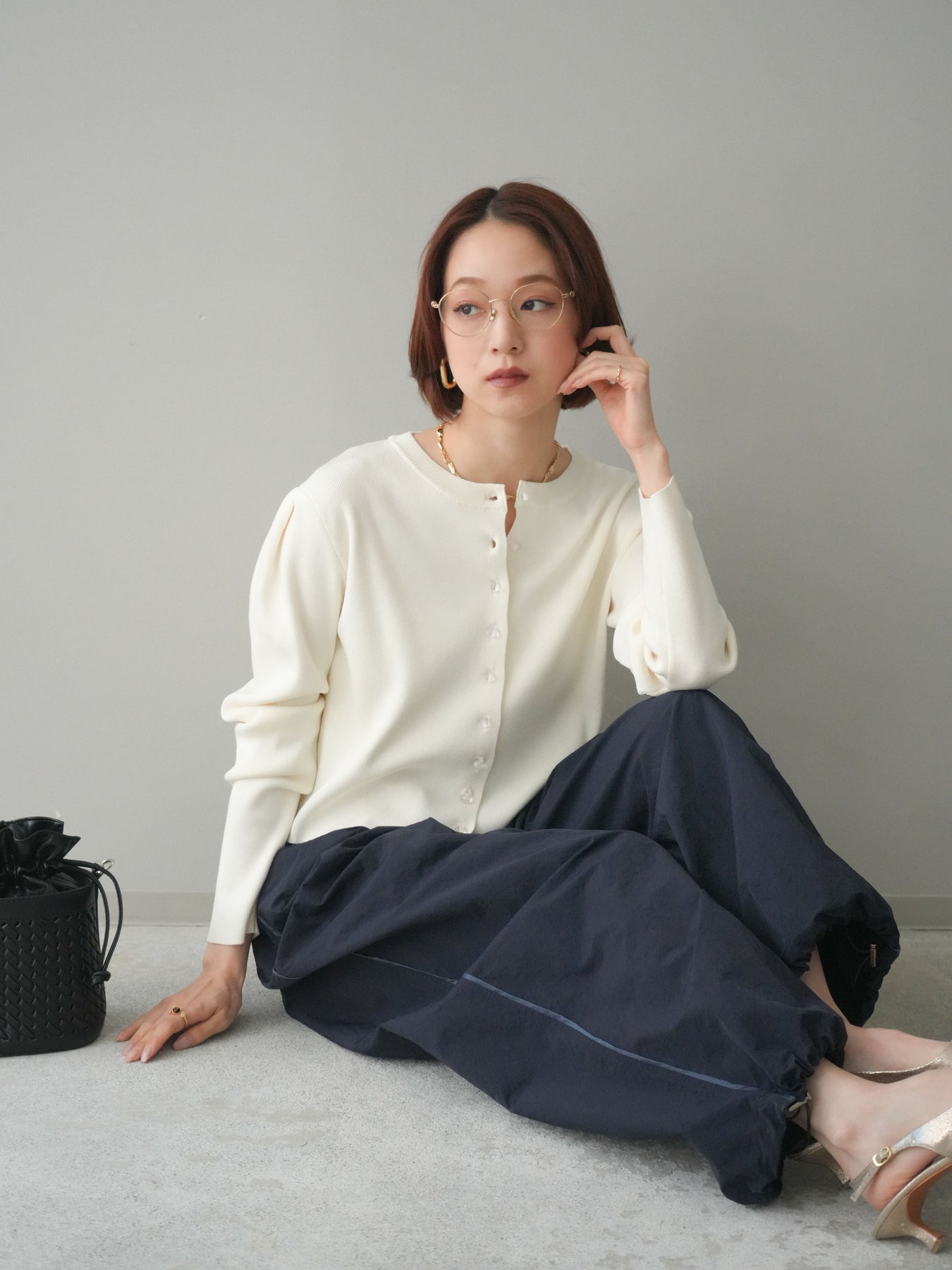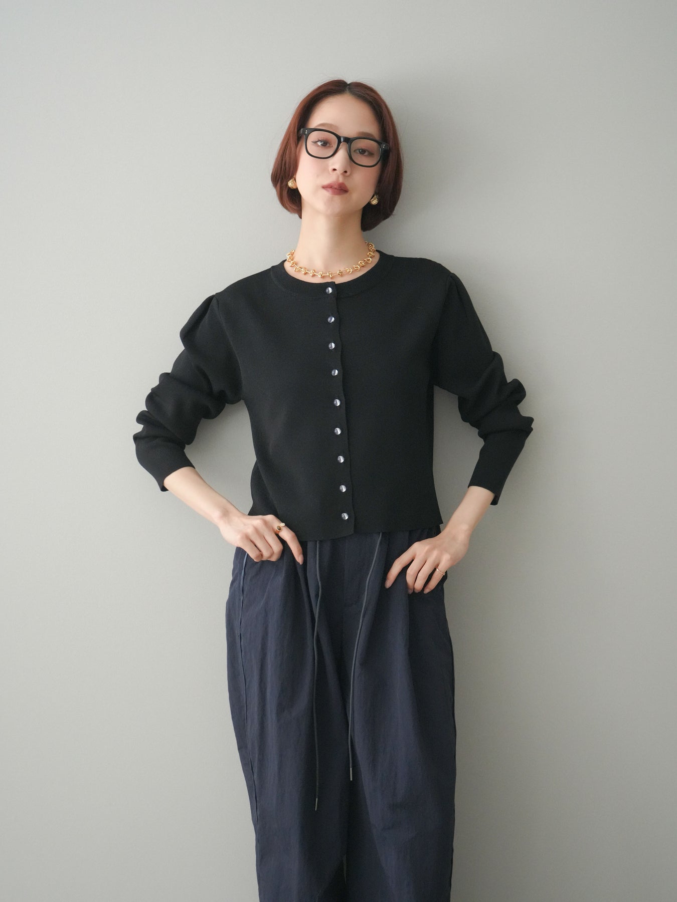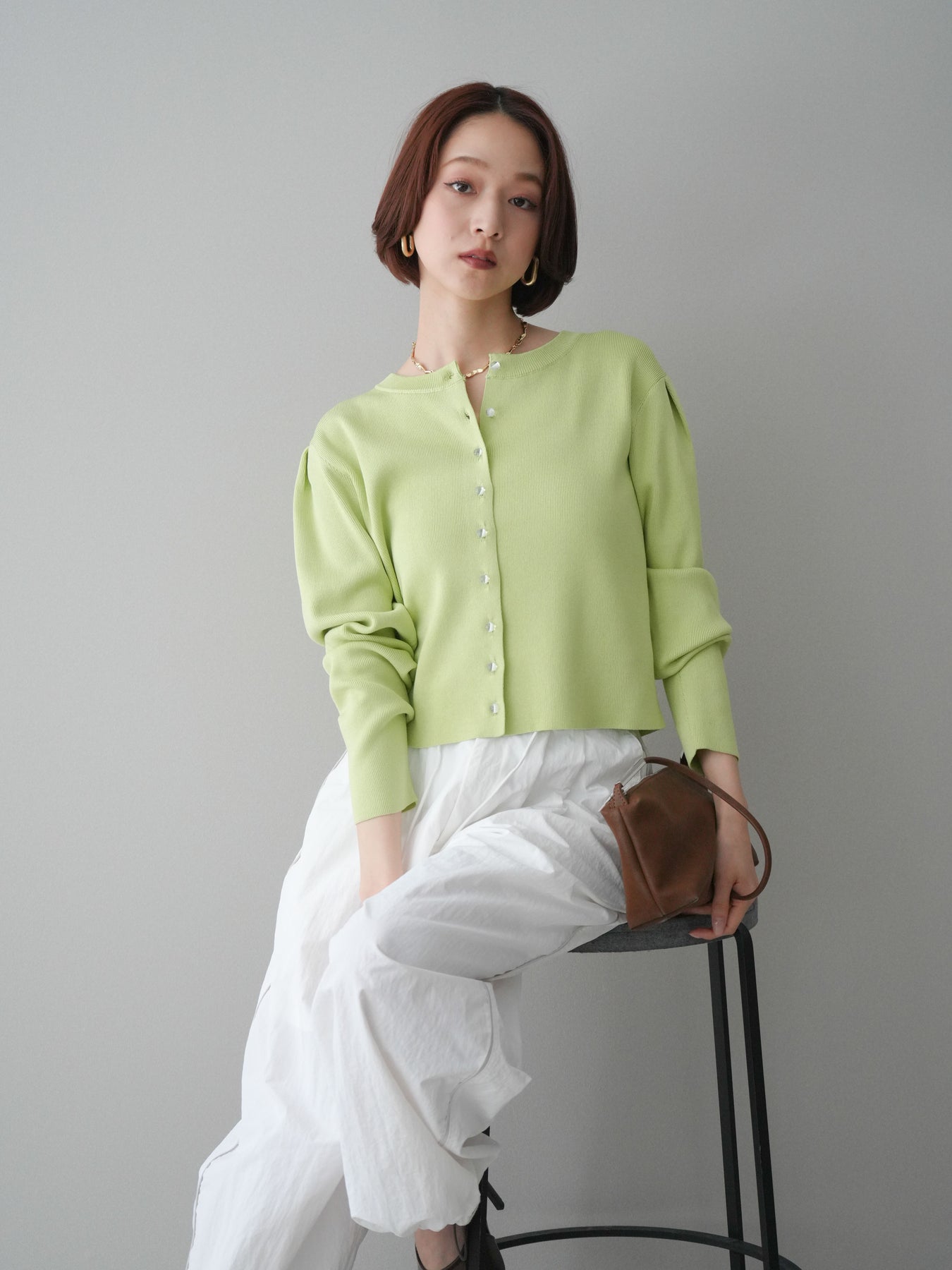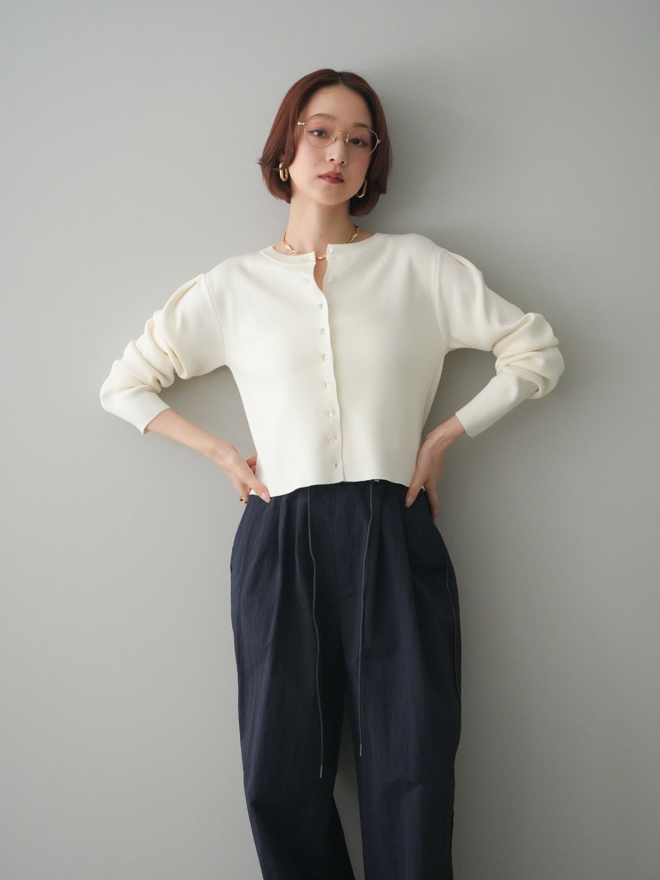 ◆ [予約]クリアボタンタックニットカーディガン