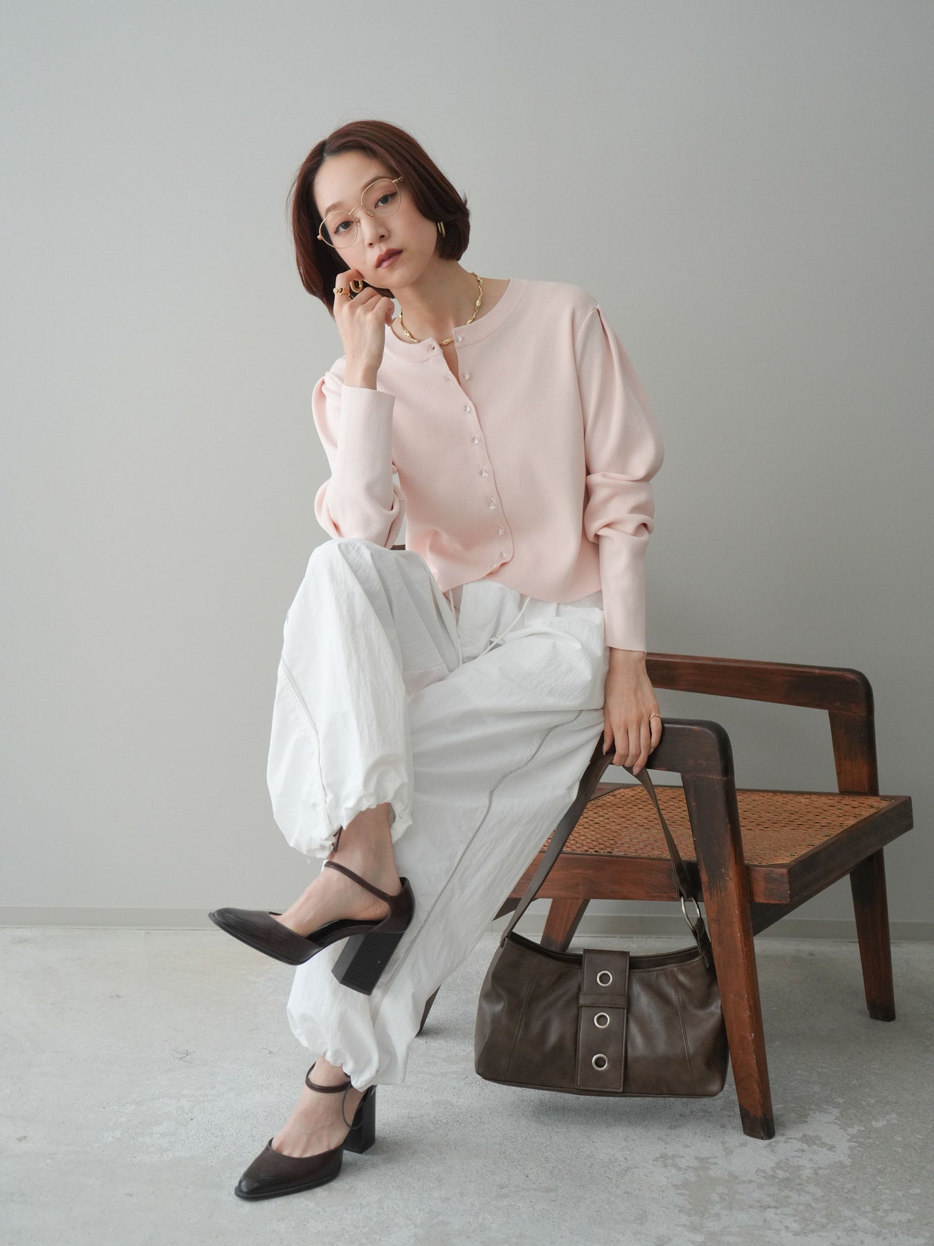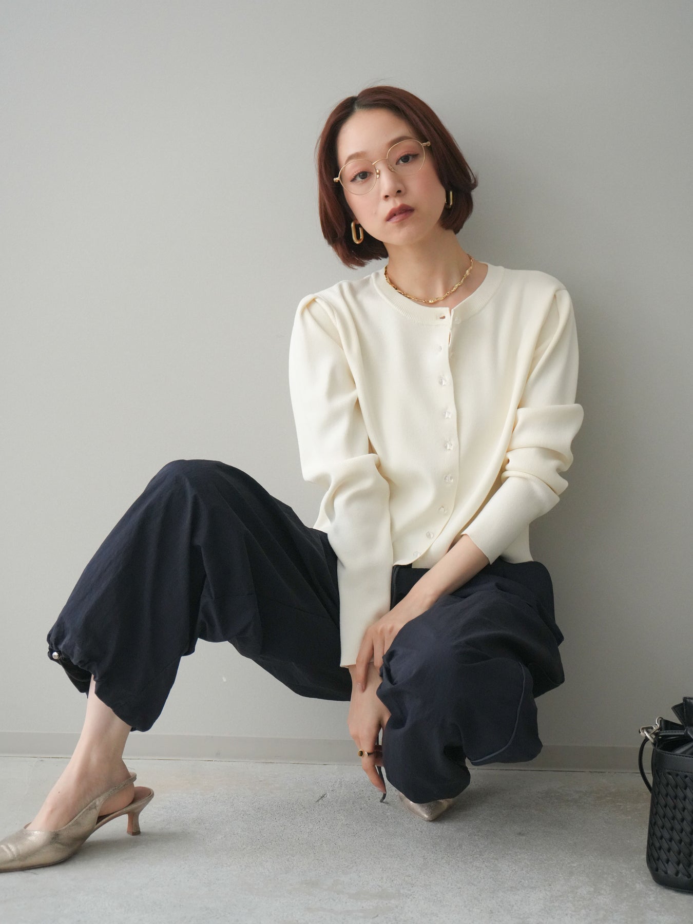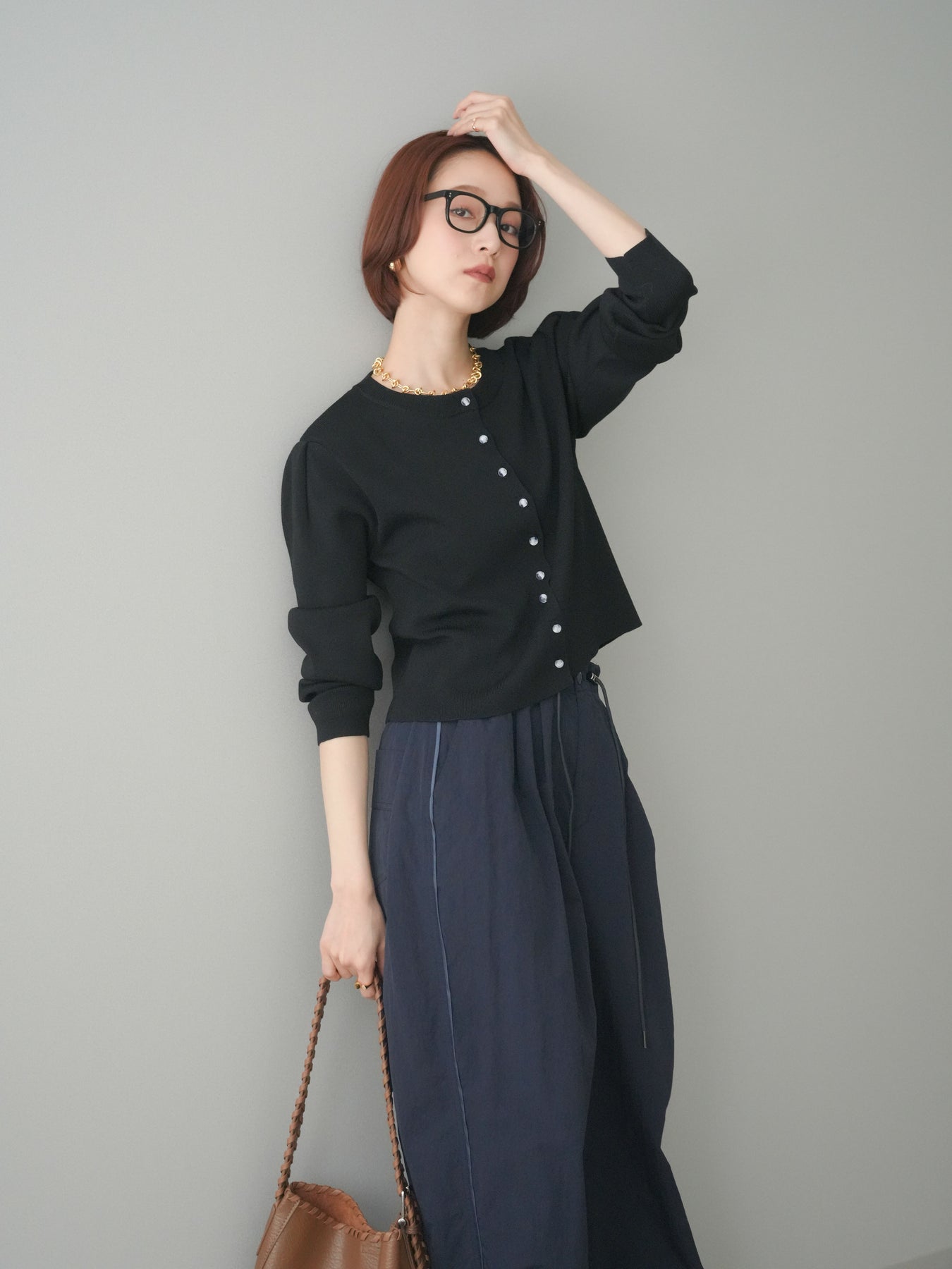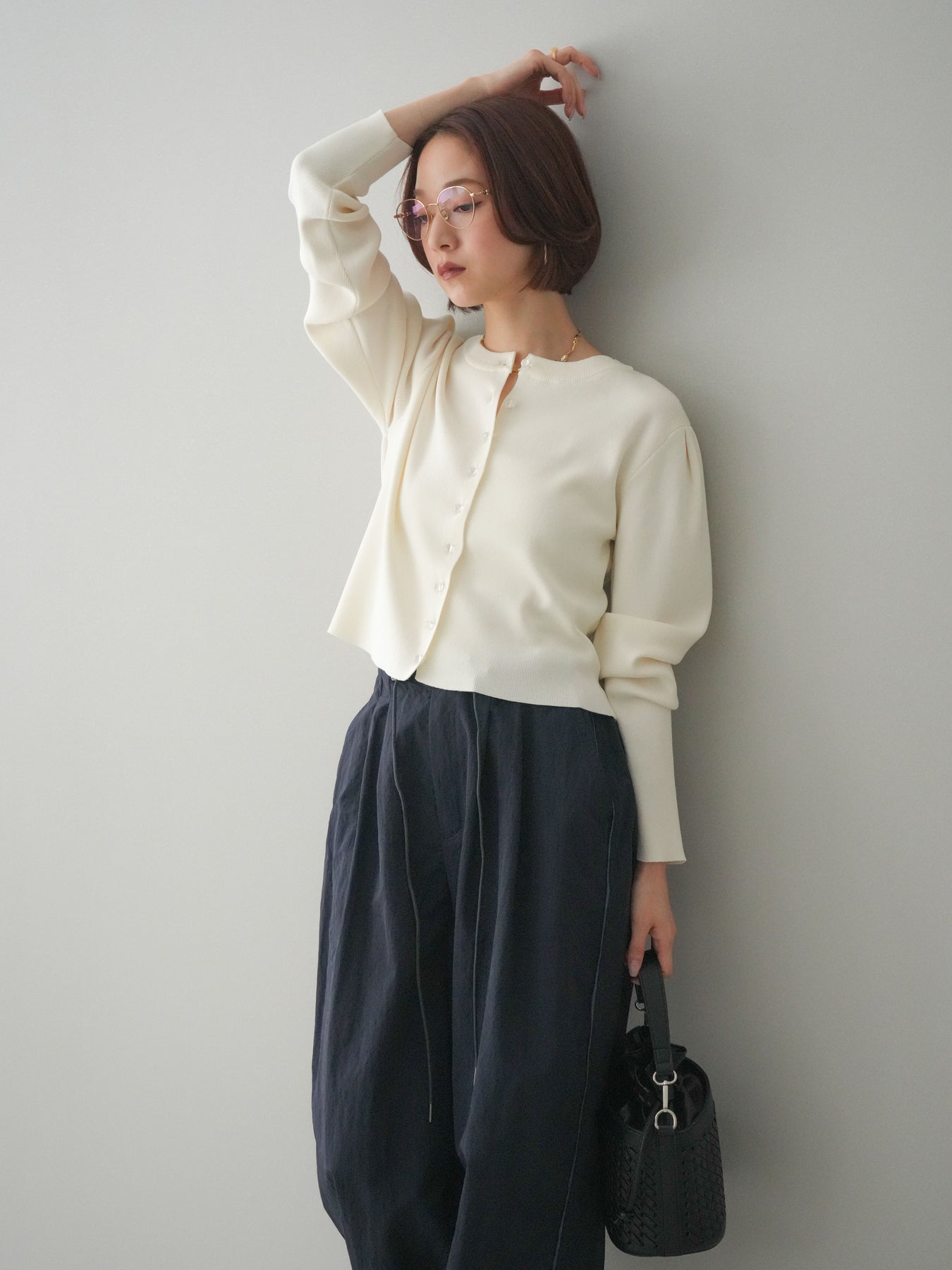 ◆ [予約]クリアボタンタックニットカーディガン
