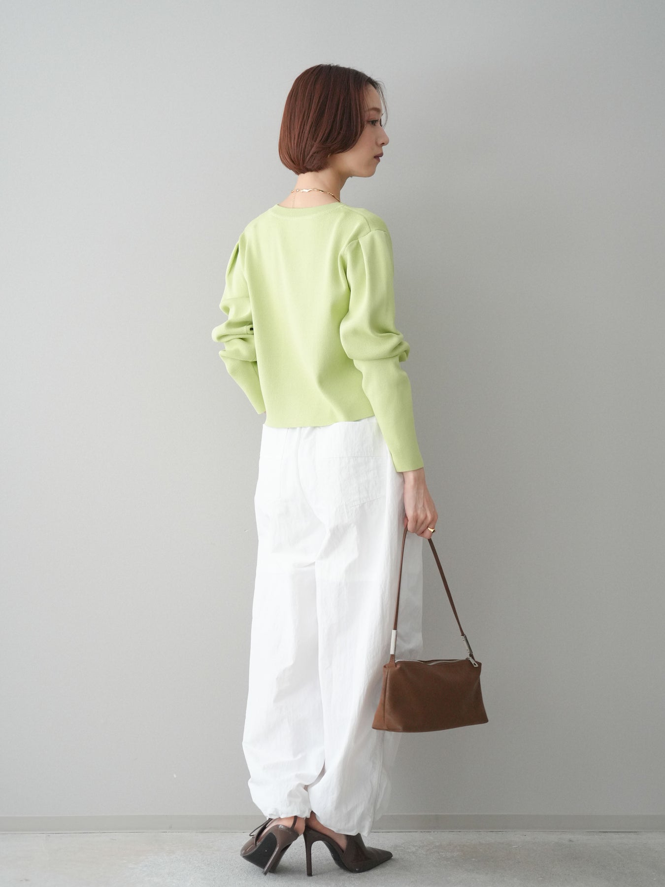 ・お手入れ方法:手洗い水温30℃以下、おしゃれ着用液体洗剤または中性洗剤のご使用をお薦めします。素材の特性上、洗濯の際に色落ち・縮みが生じる恐れがありますので単独で・短時間でのお洗濯をお薦めします。脱水は短時間で、洗濯後は形を整えてから陰干ししてください。アイロンは当て布使用。※タンブラー乾燥は控え、色物とは分けてください。 色落ち・色移りを防ぐため、必ず単独で洗ってください。濡れたままの状態で擦れると、色落ち色移りすることがあります。つけ置き洗いや雨や汗で濡れたまま放置は避け、速やかに処理してください。着用中の摩擦や汗、水濡れ、濃淡差があるものとの重ね着にご注意ください。 また、素材の特性上伸びやすい為ハンガーの使用はお控えいただき畳んで保管ください。 保管にあたってはハンガーにかけずに平らな状態での収納をお願いいたします。