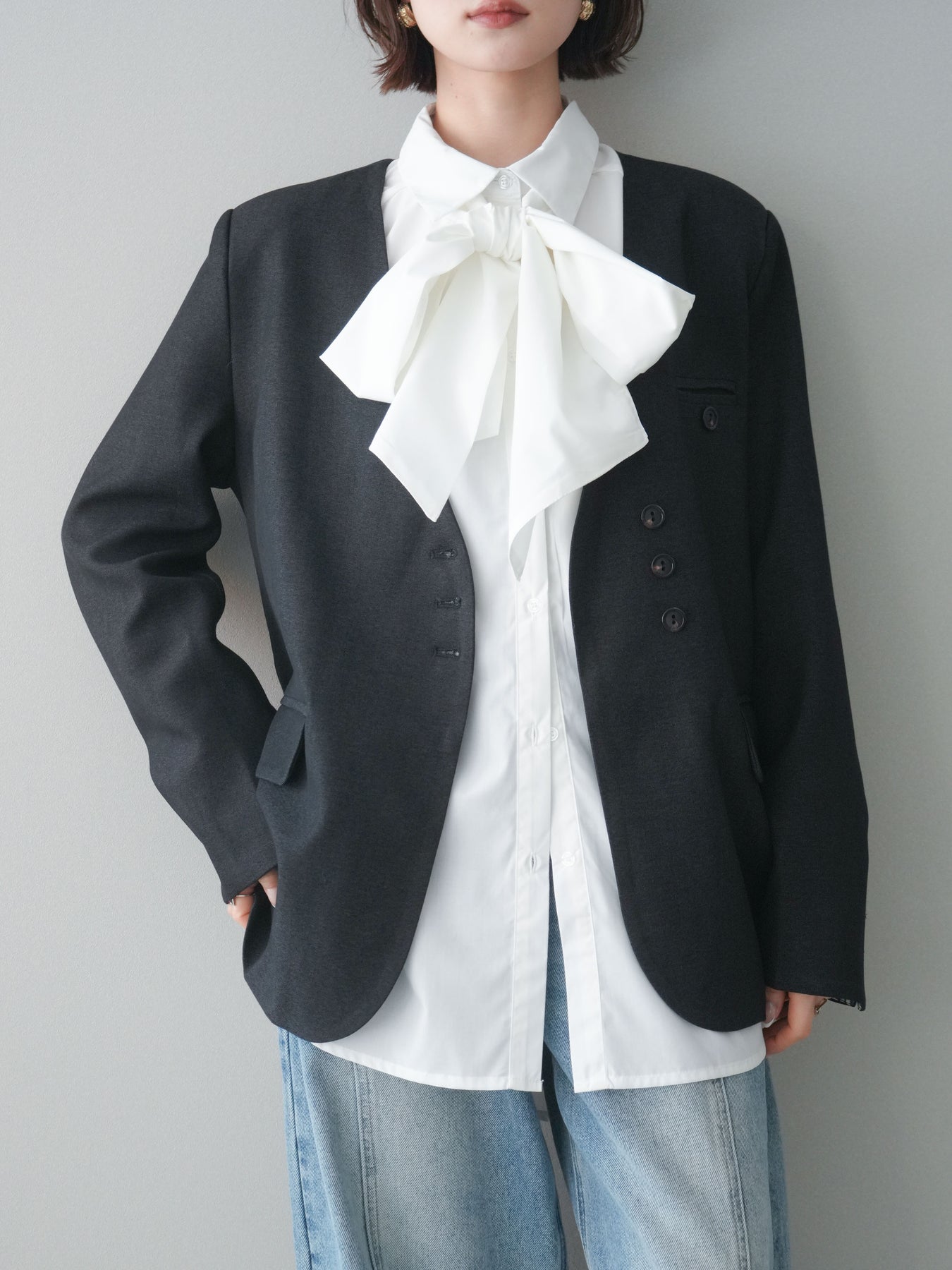 ◆ [予約]ボウタイ付オーバーシャツ