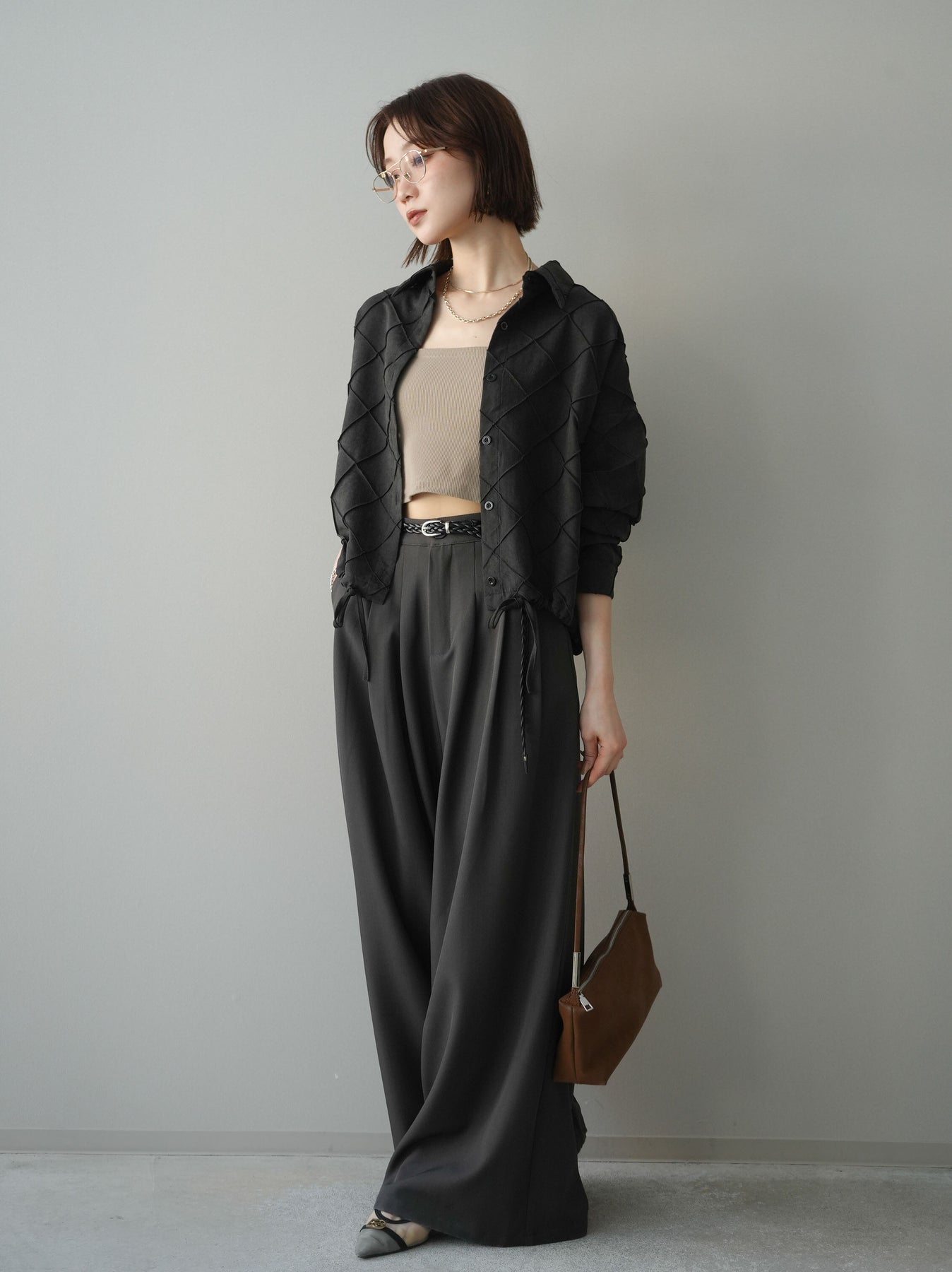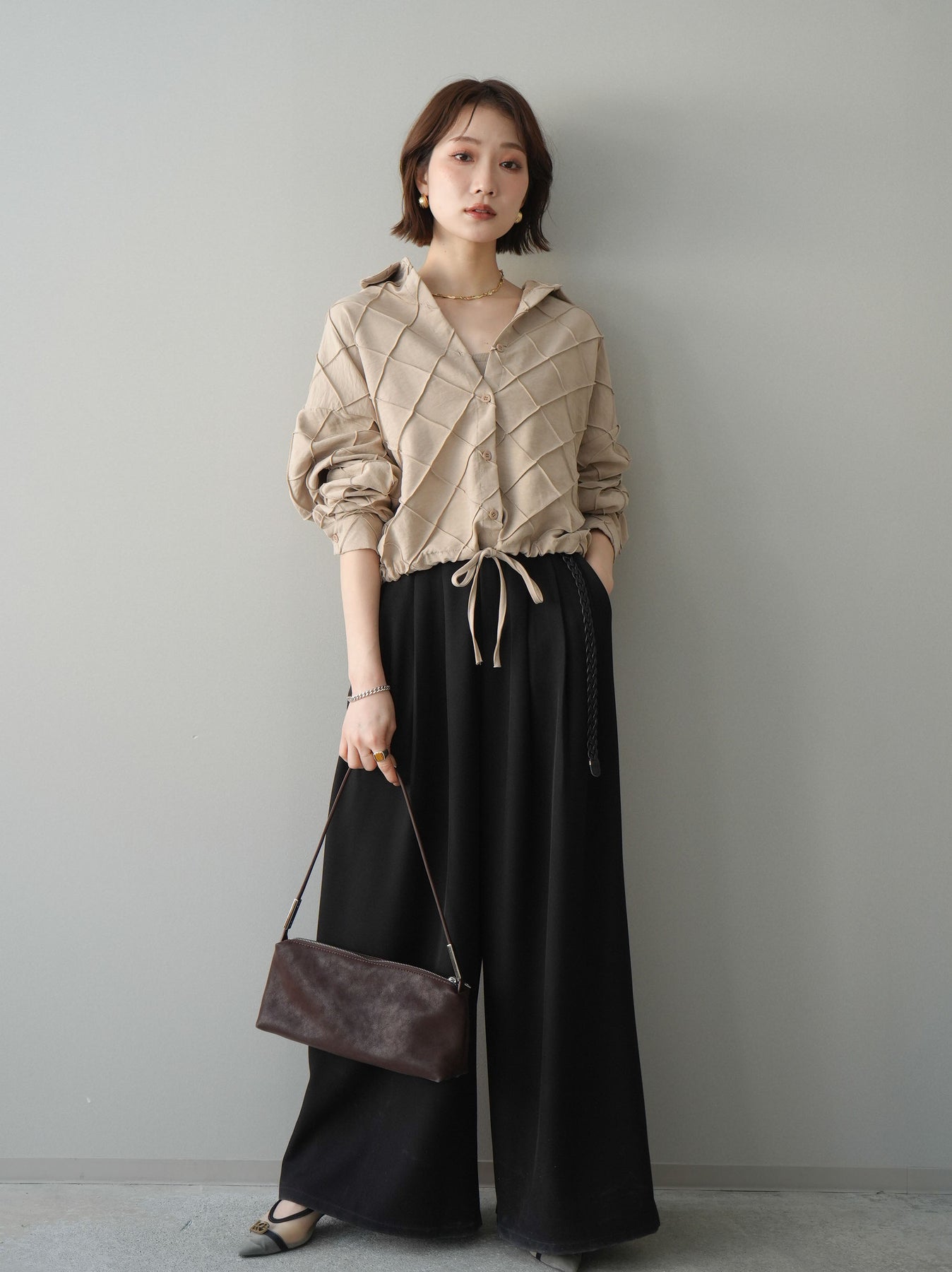 ◆ [予約]編み込みベルト付タックワイドパンツ