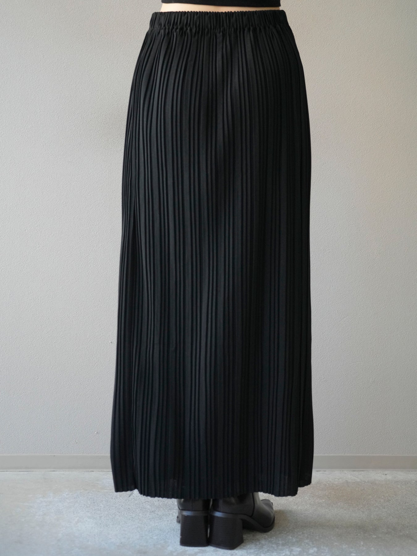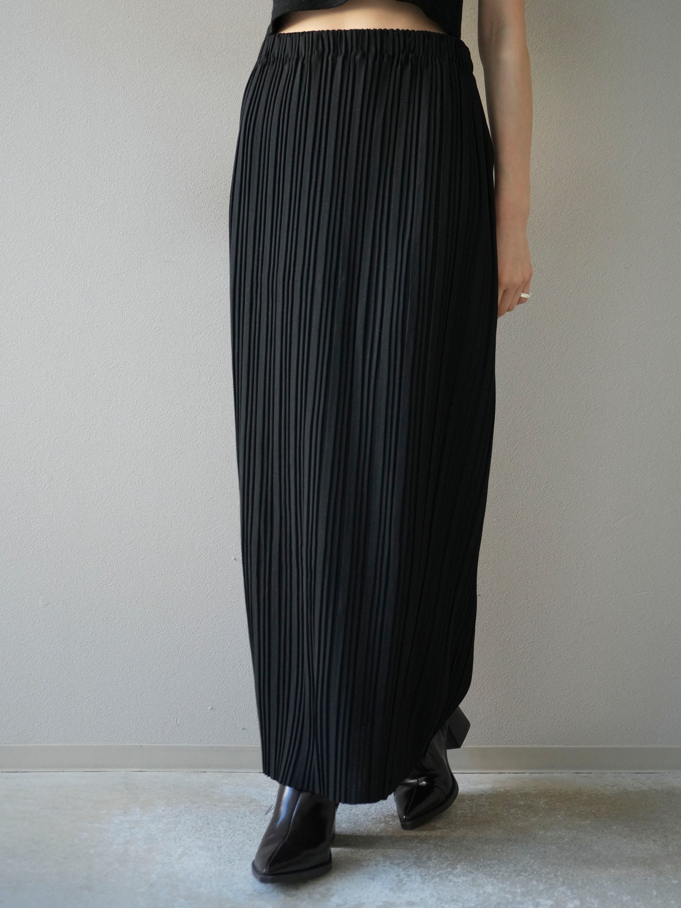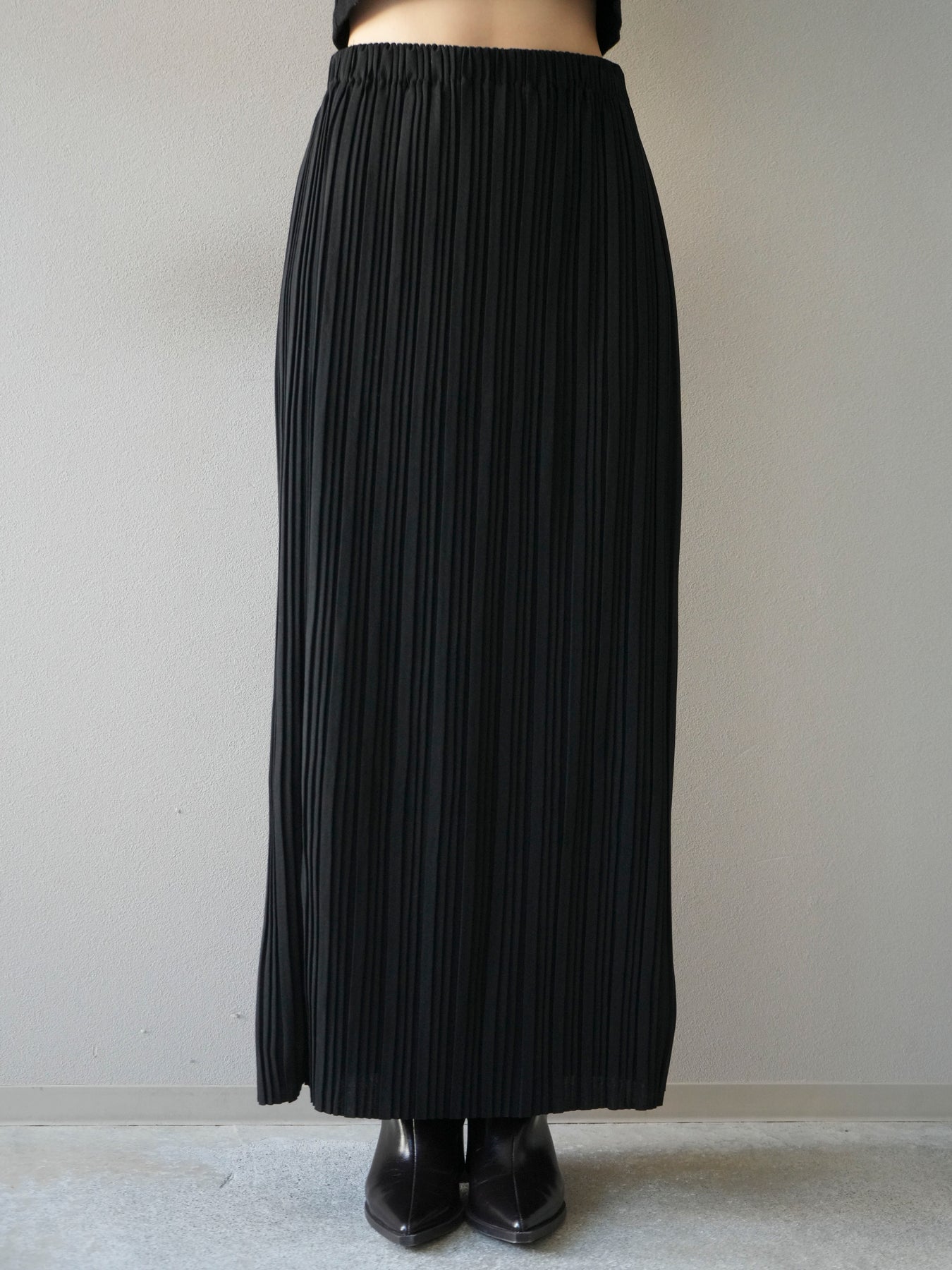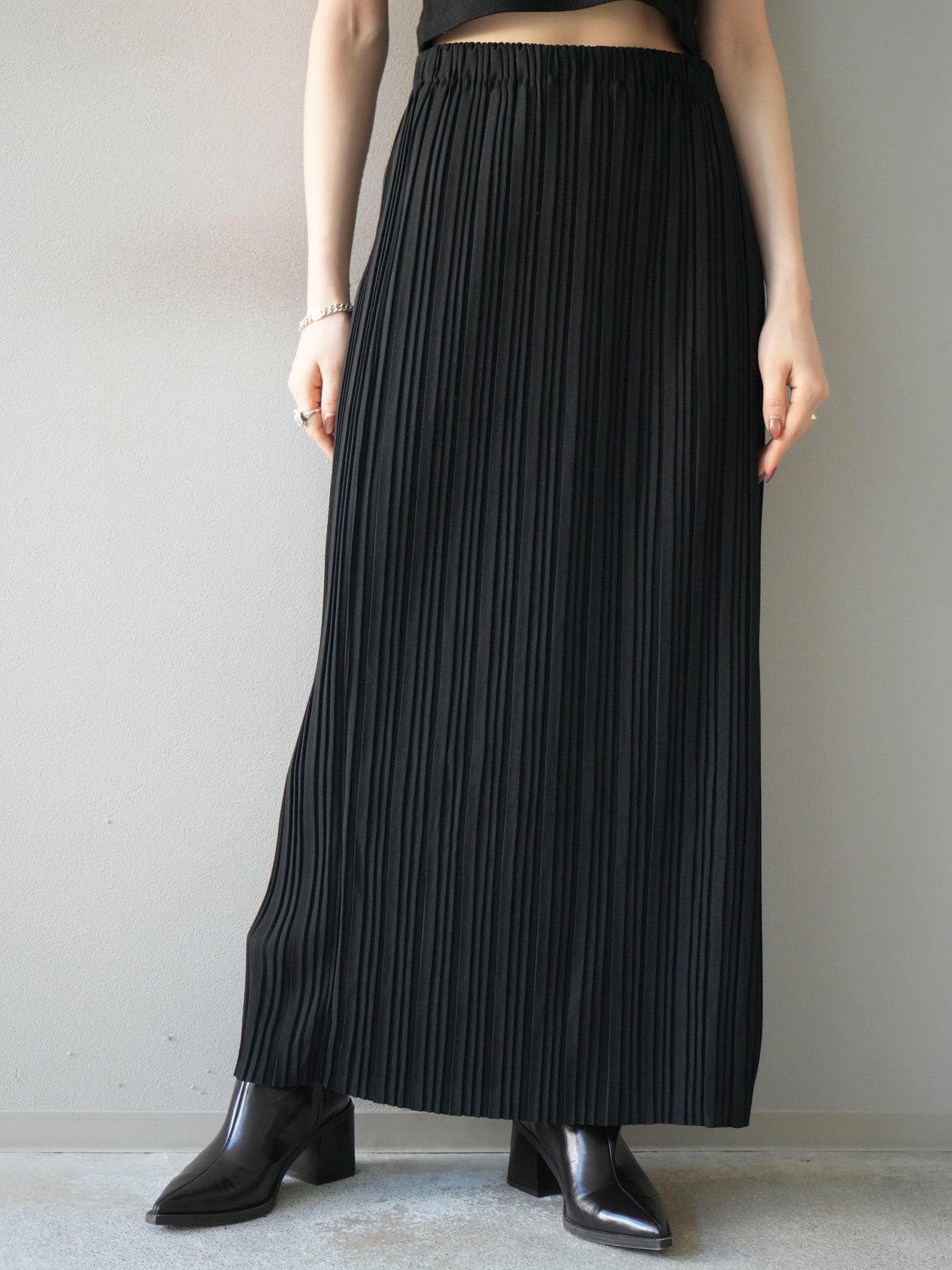 細やかなプリーツが縦のラインを強調し、すっきりとした印象を与えるIラインスカート。 軽やかで落ち感のある素材が美しいシルエットを生み出し、動くたびに上品な揺れを演出します。 ウエストは総ゴム仕様でストレスフリーな穿き心地ながら、きちんと見えも叶うデザイン。 シンプルながらも存在感があり、ニットやブラウスなど様々なトップスと好相性です。 オンオフ問わず着回せる、万能な定番アイテムです。