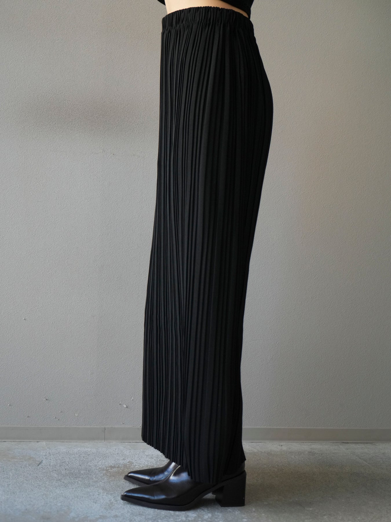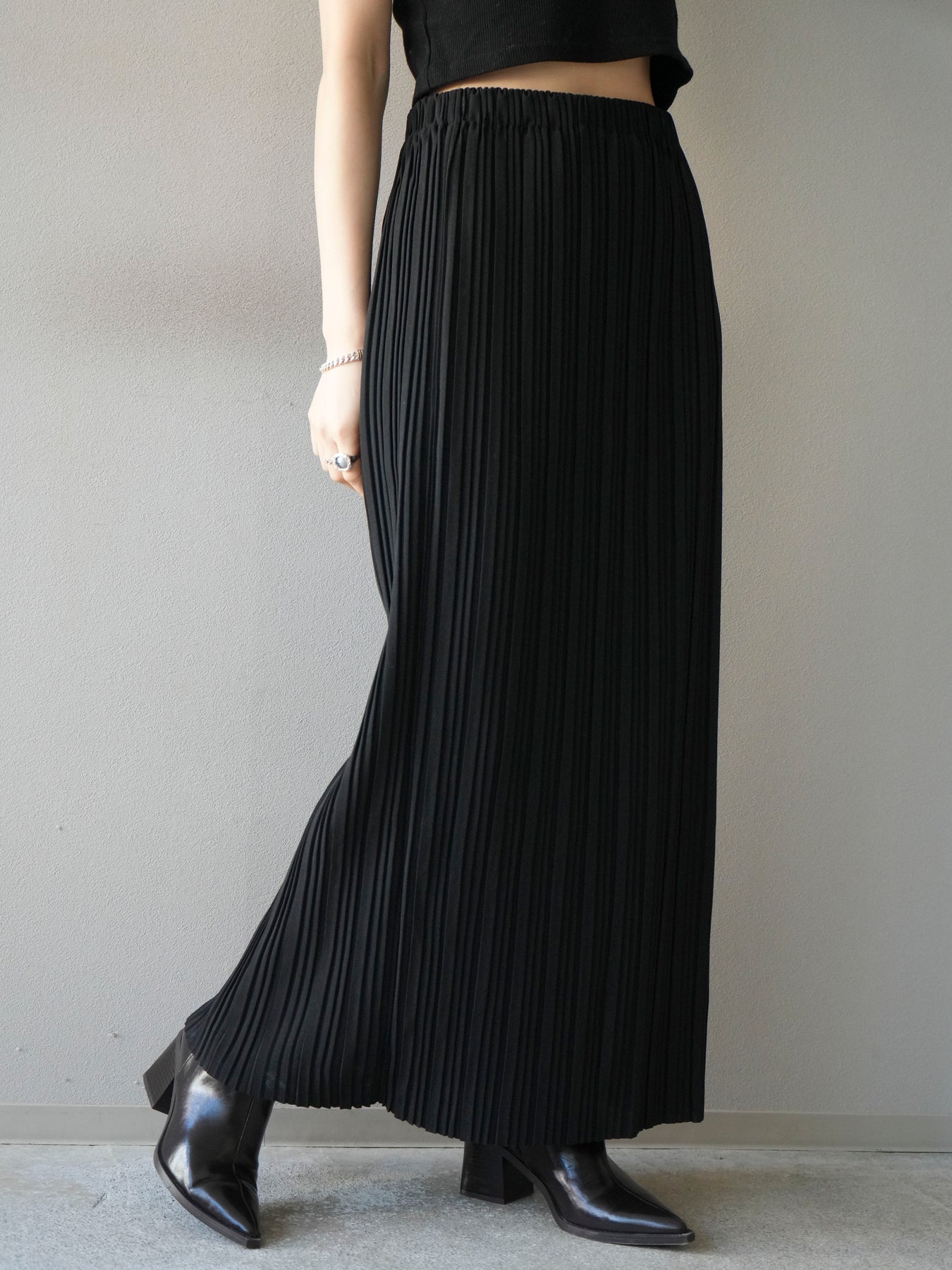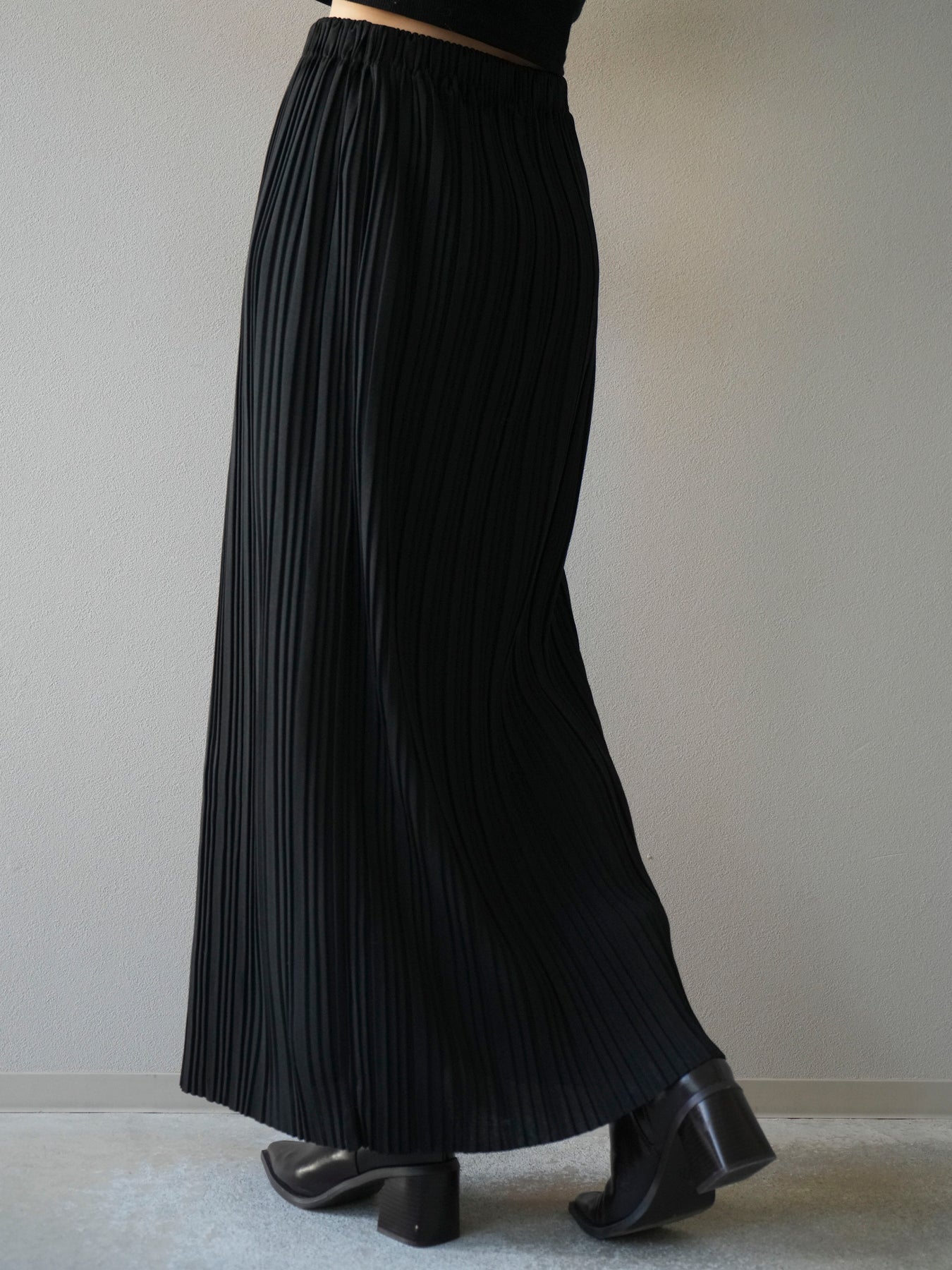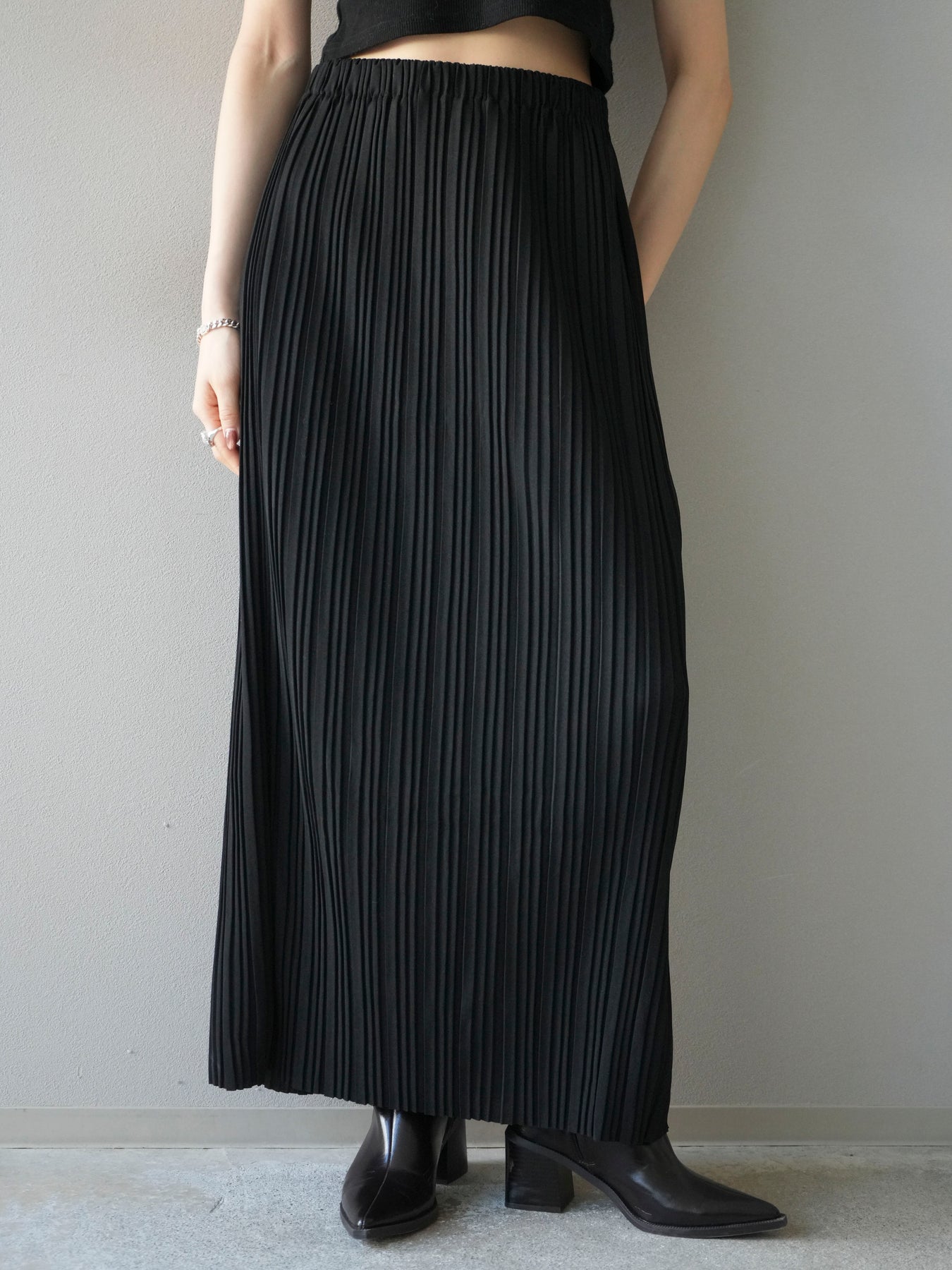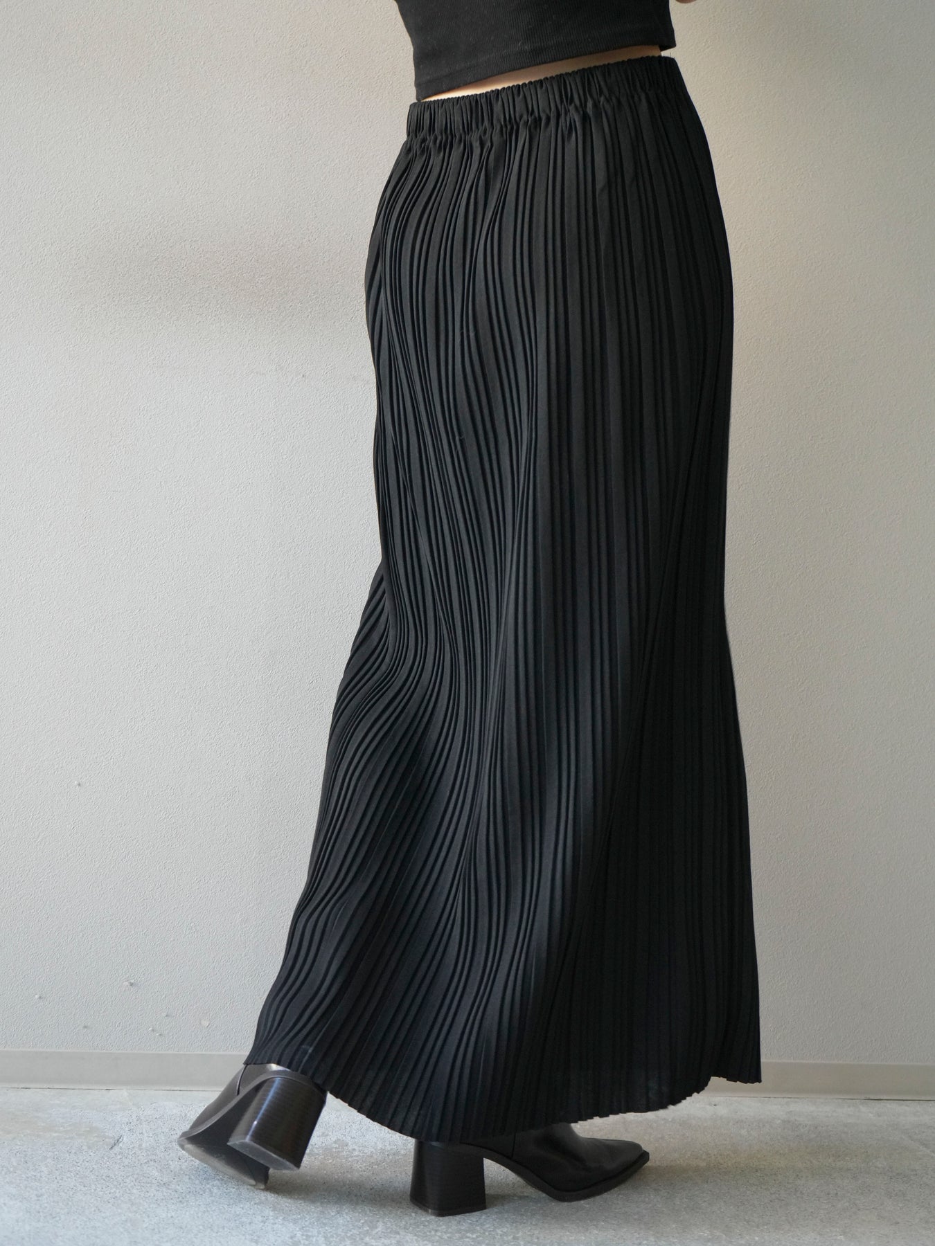 細やかなプリーツが縦のラインを強調し、すっきりとした印象を与えるIラインスカート。 軽やかで落ち感のある素材が美しいシルエットを生み出し、動くたびに上品な揺れを演出します。 ウエストは総ゴム仕様でストレスフリーな穿き心地ながら、きちんと見えも叶うデザイン。 シンプルながらも存在感があり、ニットやブラウスなど様々なトップスと好相性です。 オンオフ問わず着回せる、万能な定番アイテムです。