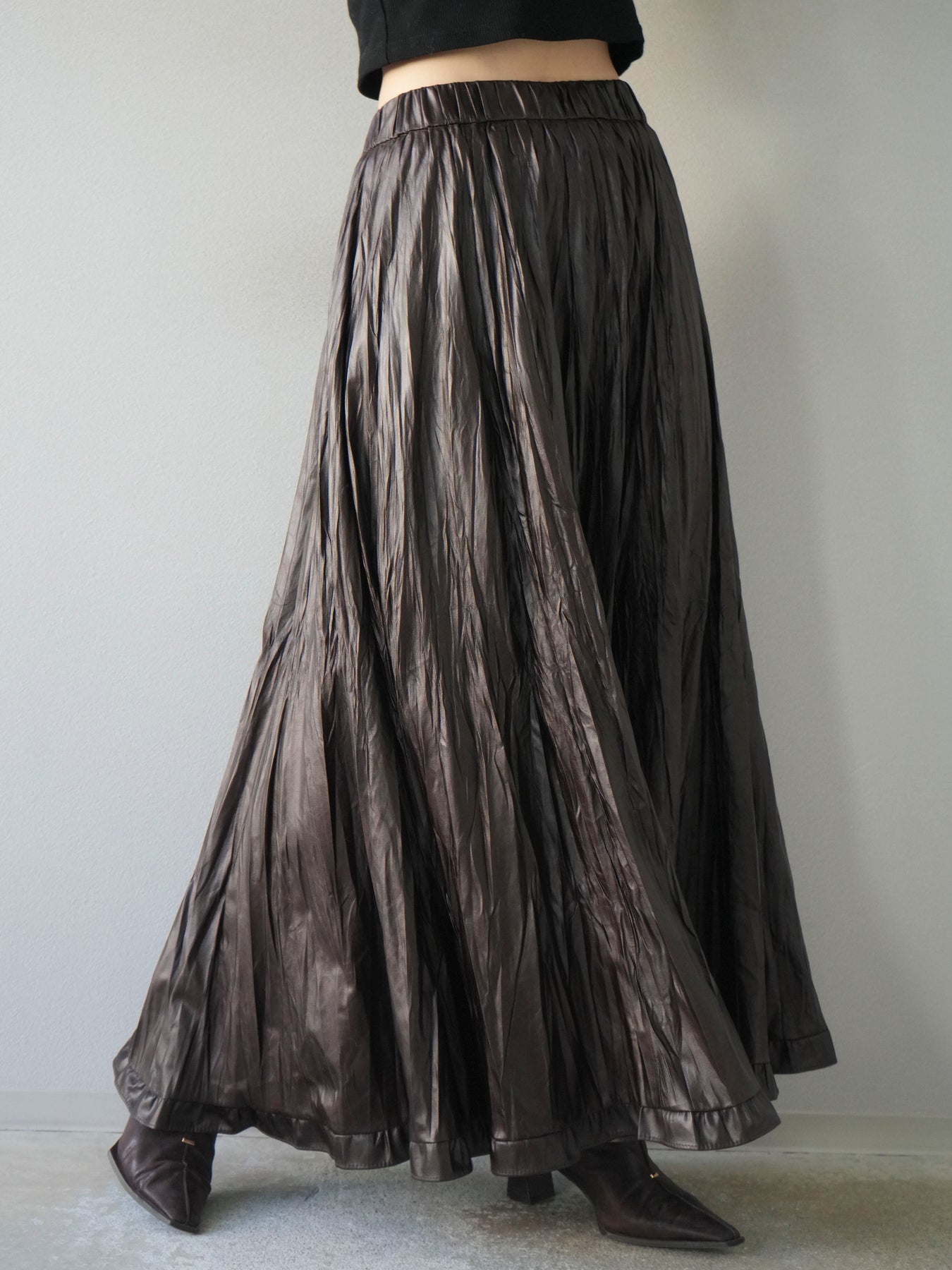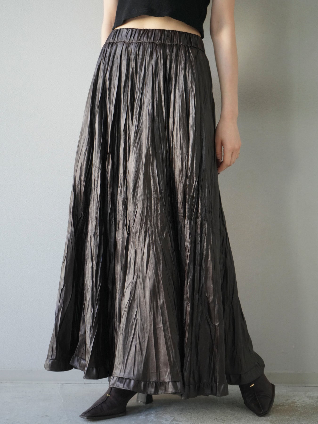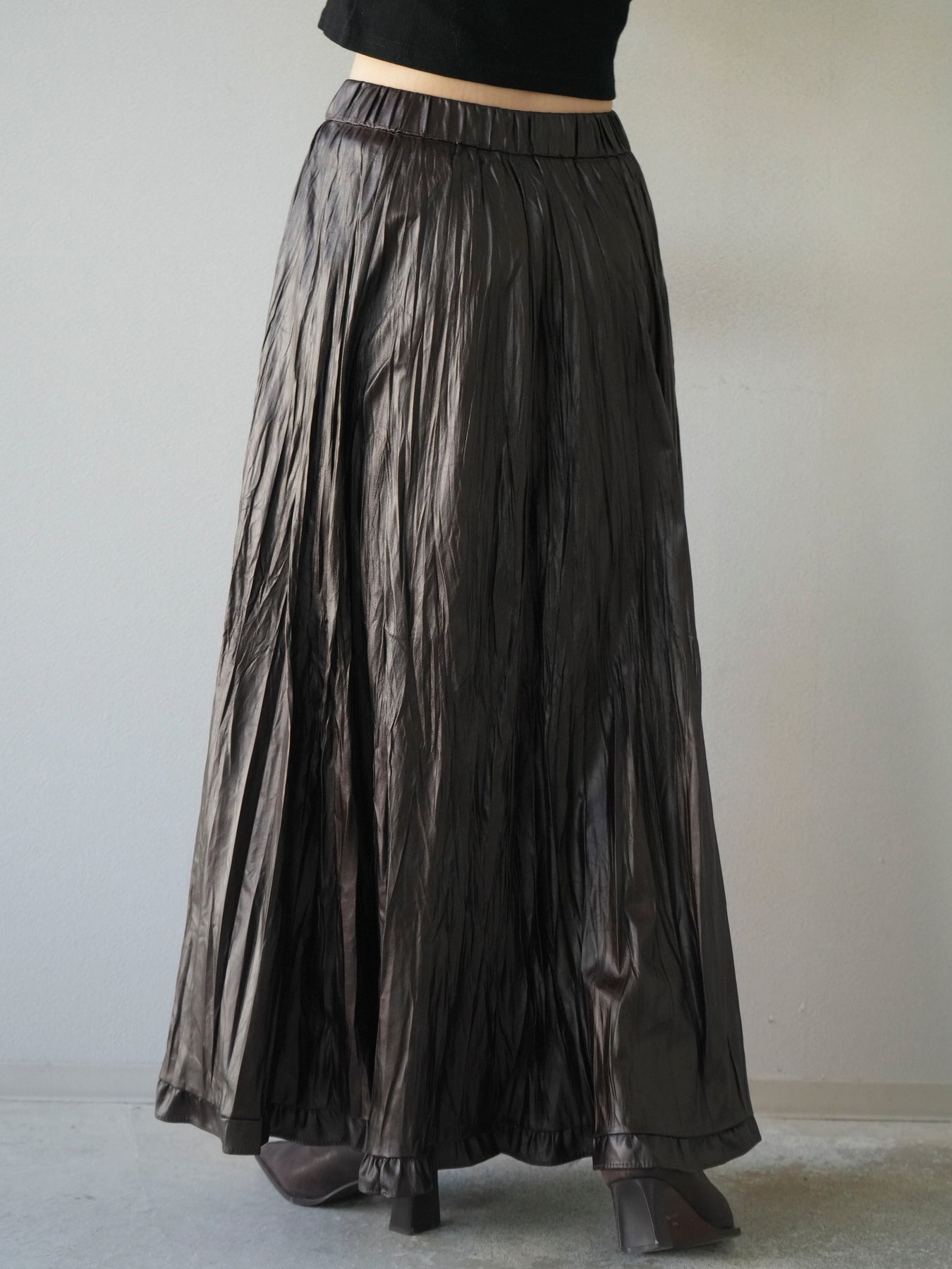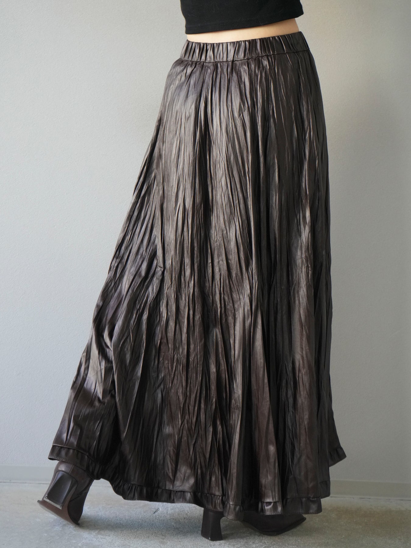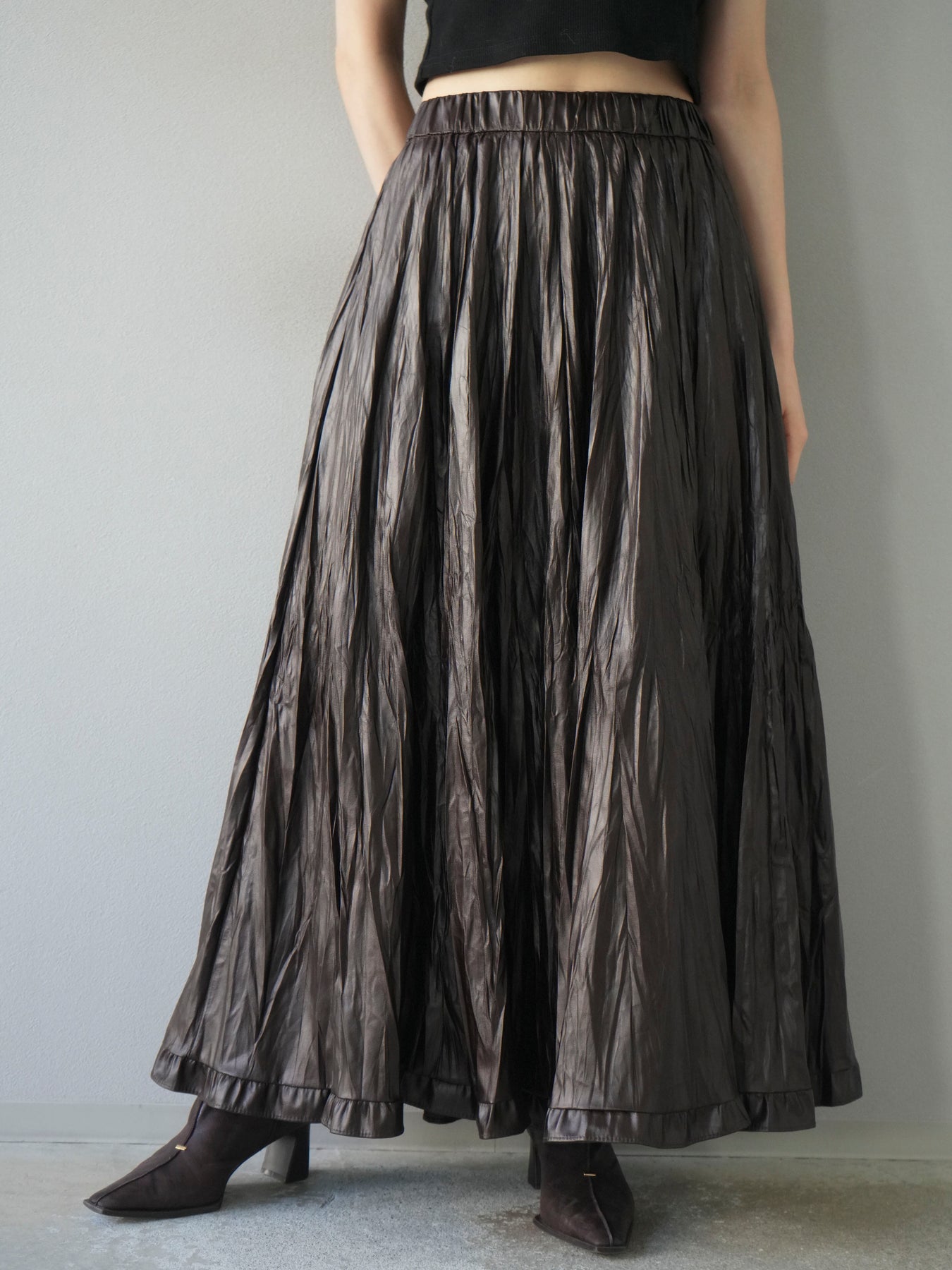 華やかな光沢感と立体感のある表情が魅力のフリルスカート。ワッシャー加工による動きのあるシルエットが歩くたびに軽やかに揺れ、存在感のあるスタイリングを叶えます。ウエストはバックゴム仕様で快適な履き心地をキープしつつ、着脱も簡単。トップスを選ばず、ニットやシャツとの組み合わせもバランスよく仕上がります。