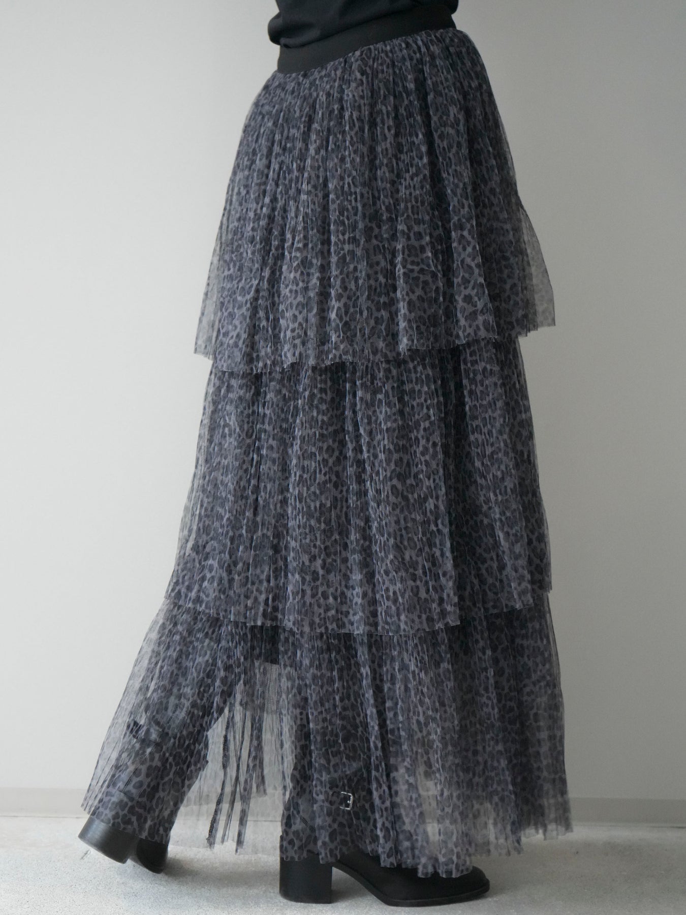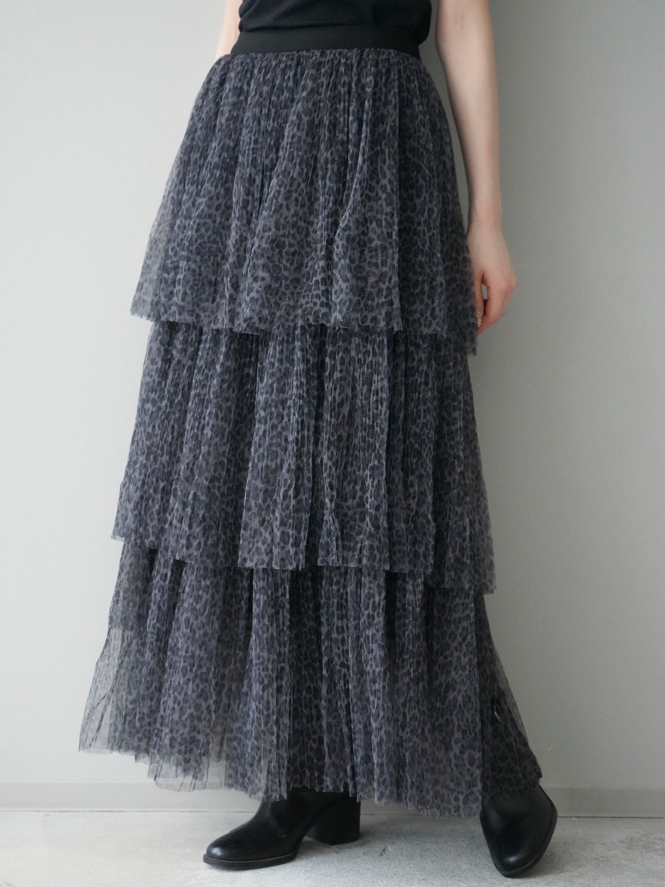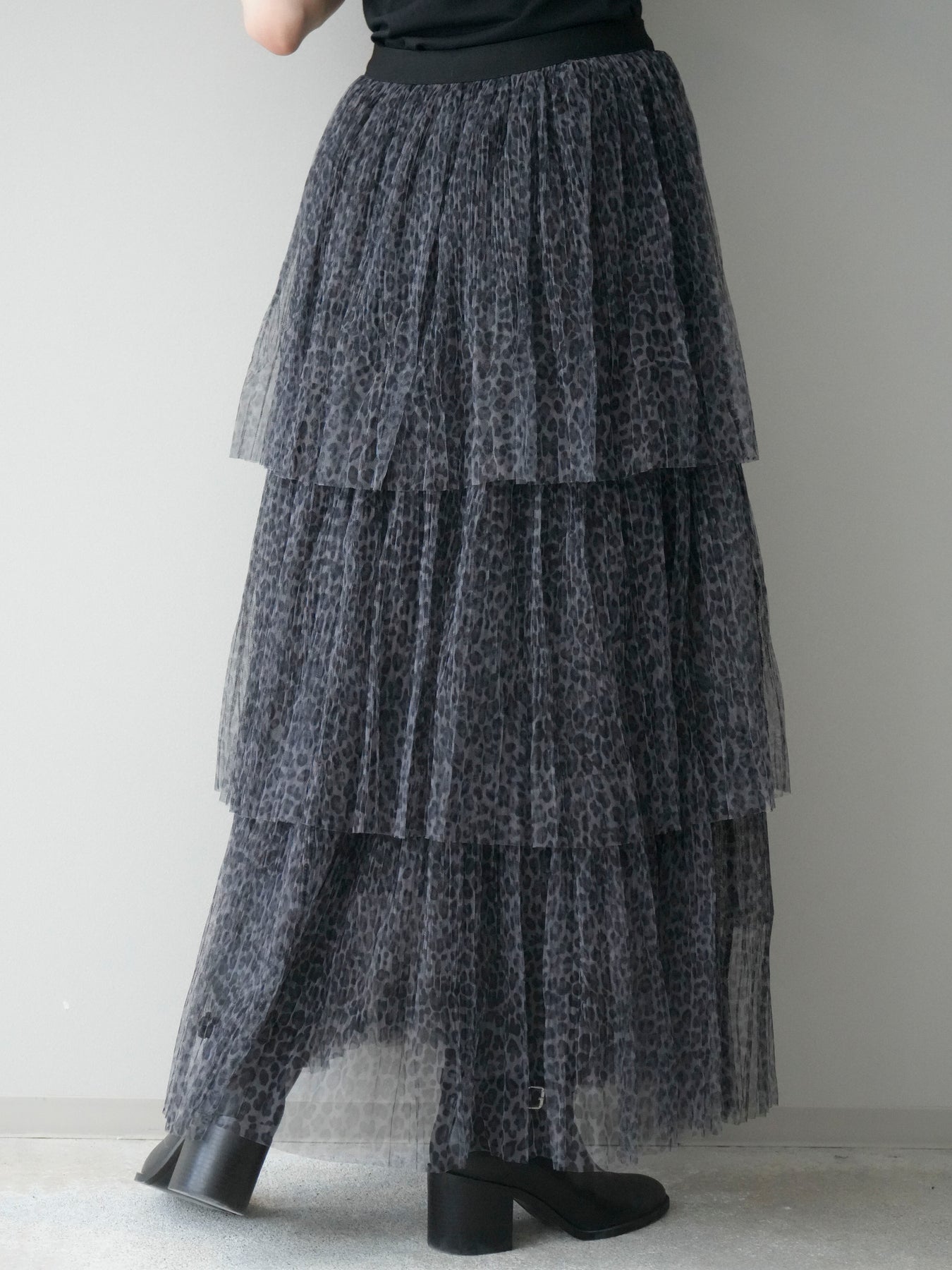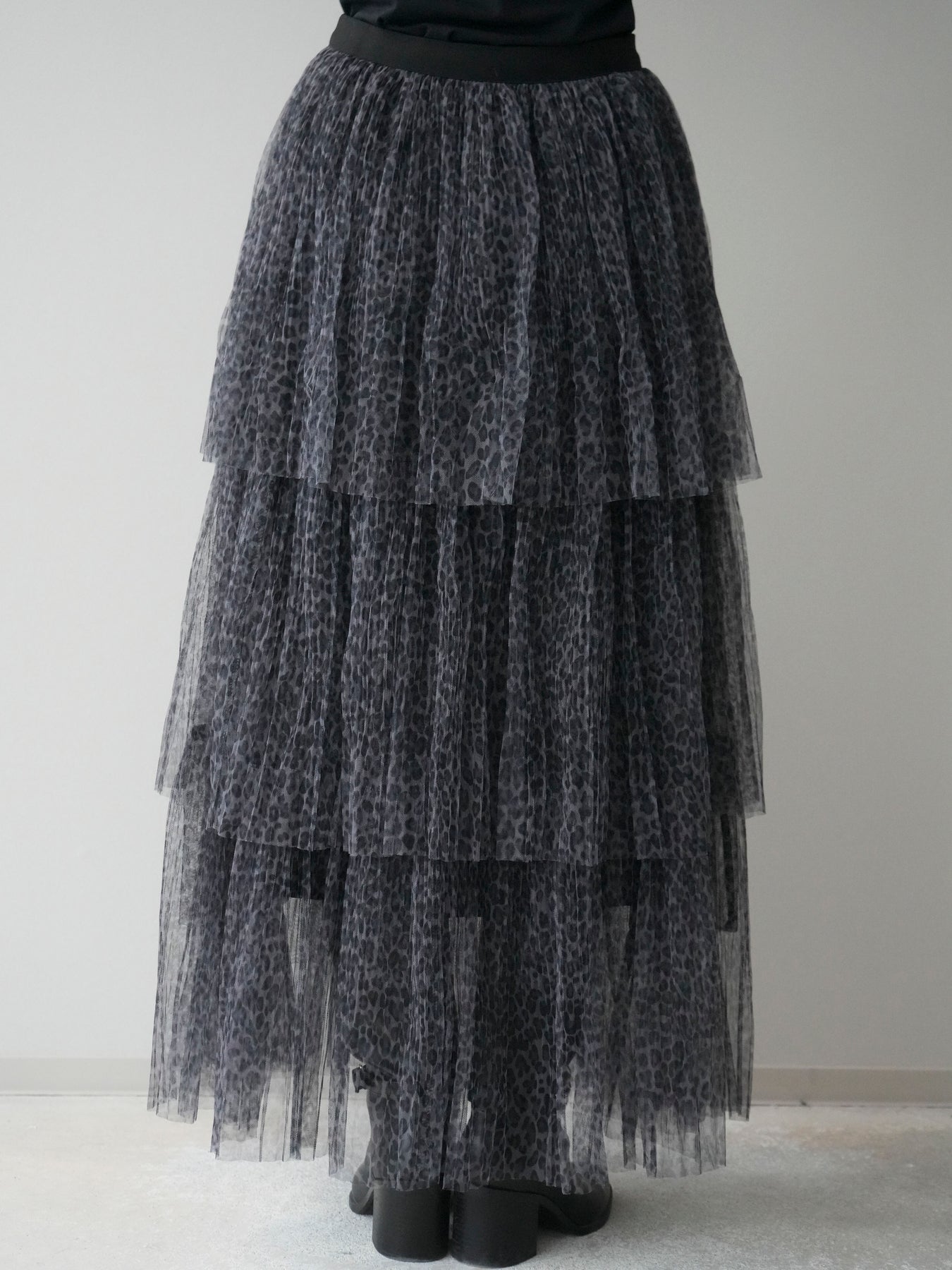 [予約]レオパード柄チュールフリルスカート/gray