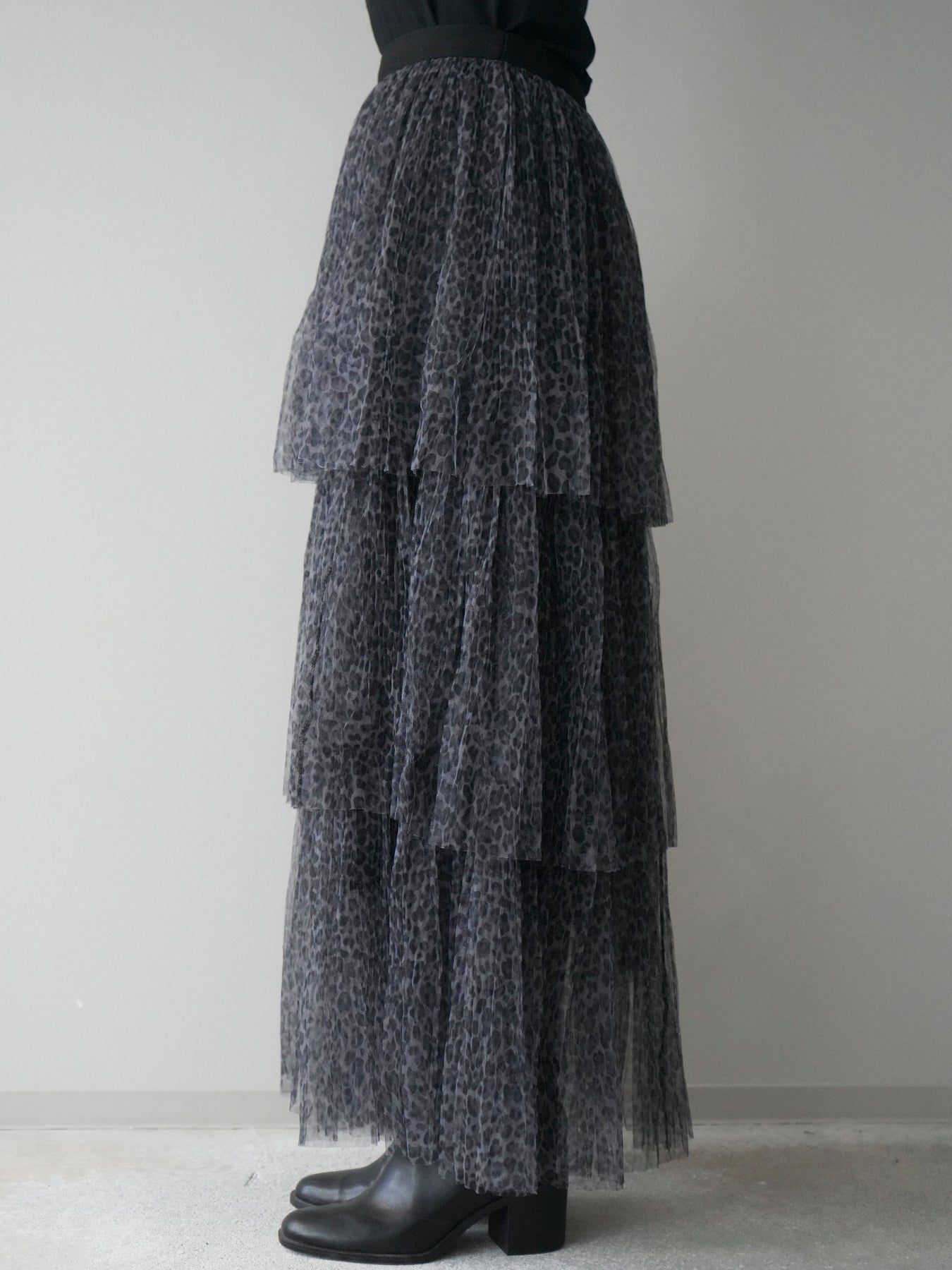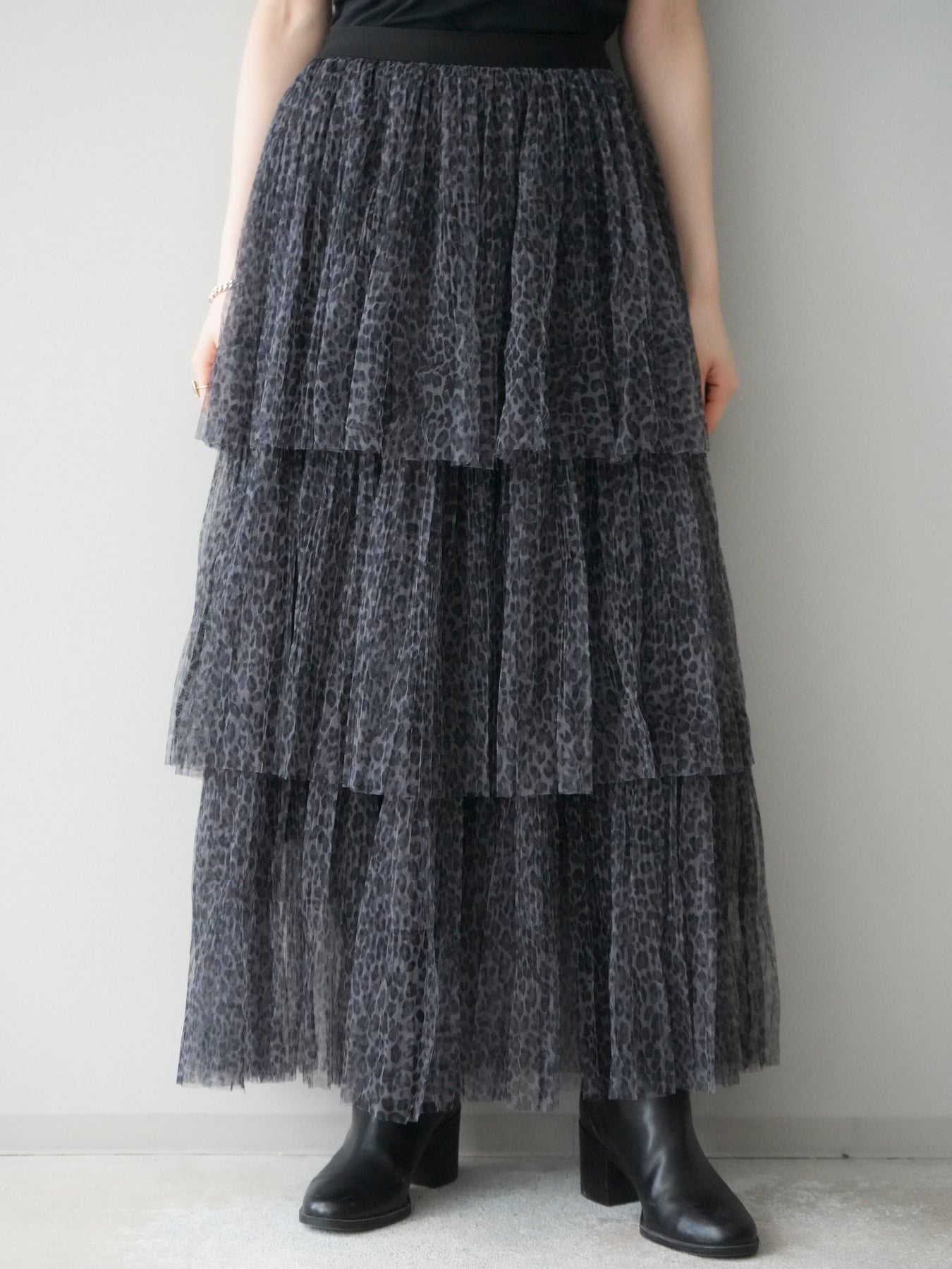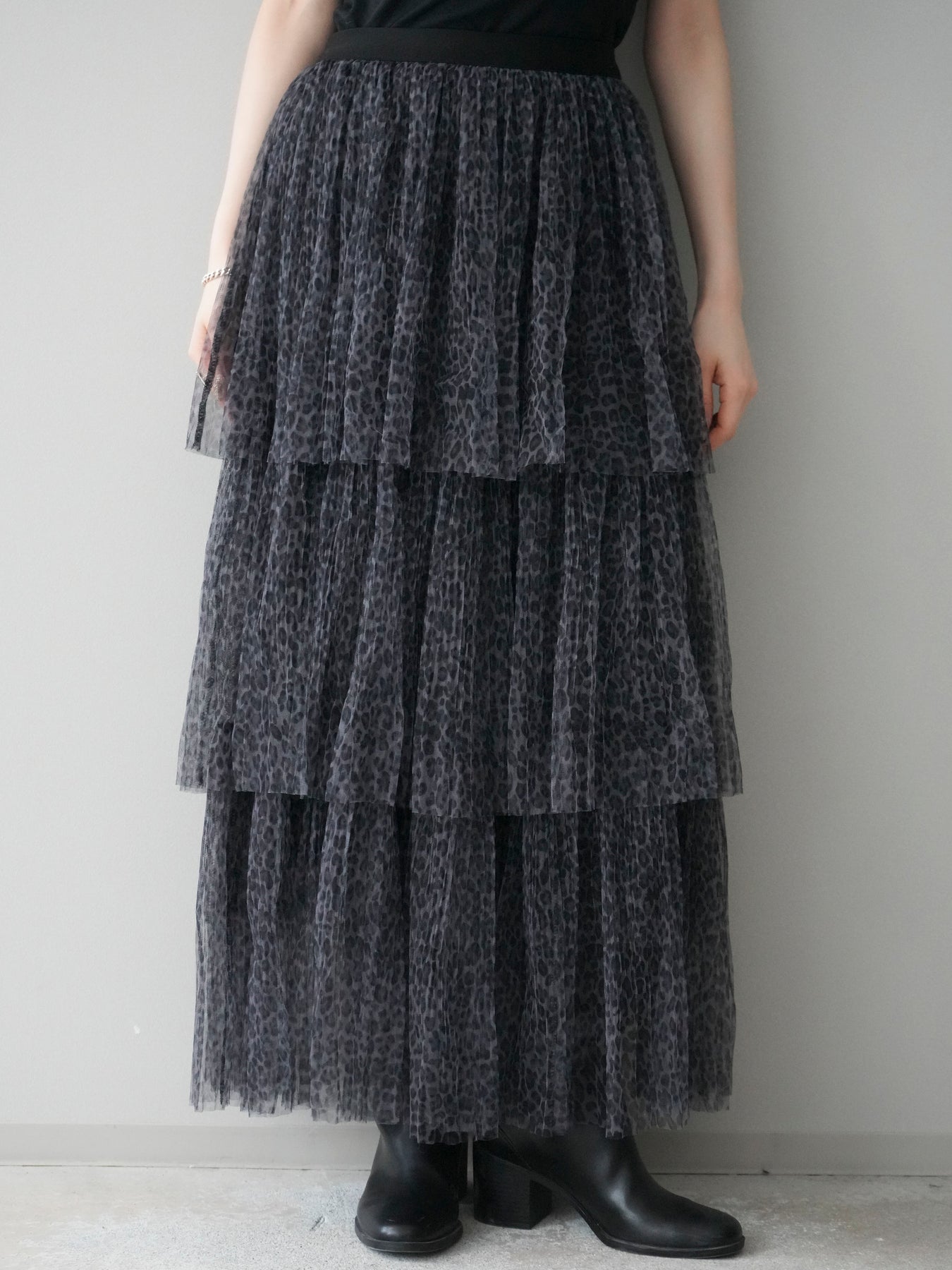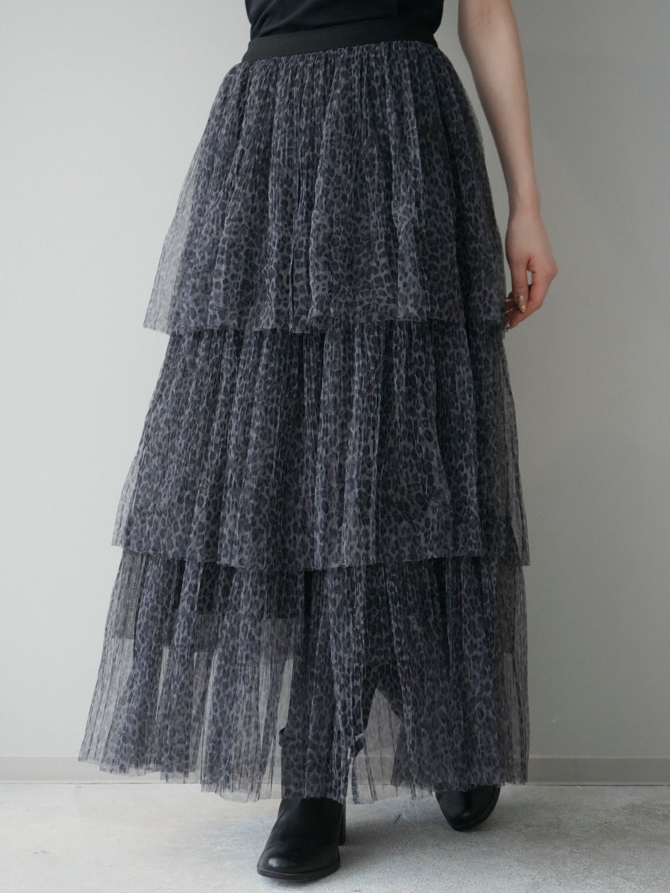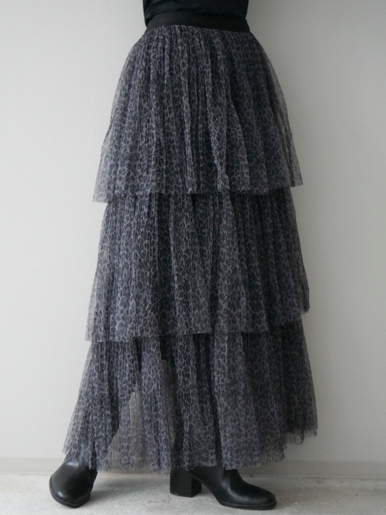 [予約]レオパード柄チュールフリルスカート/gray