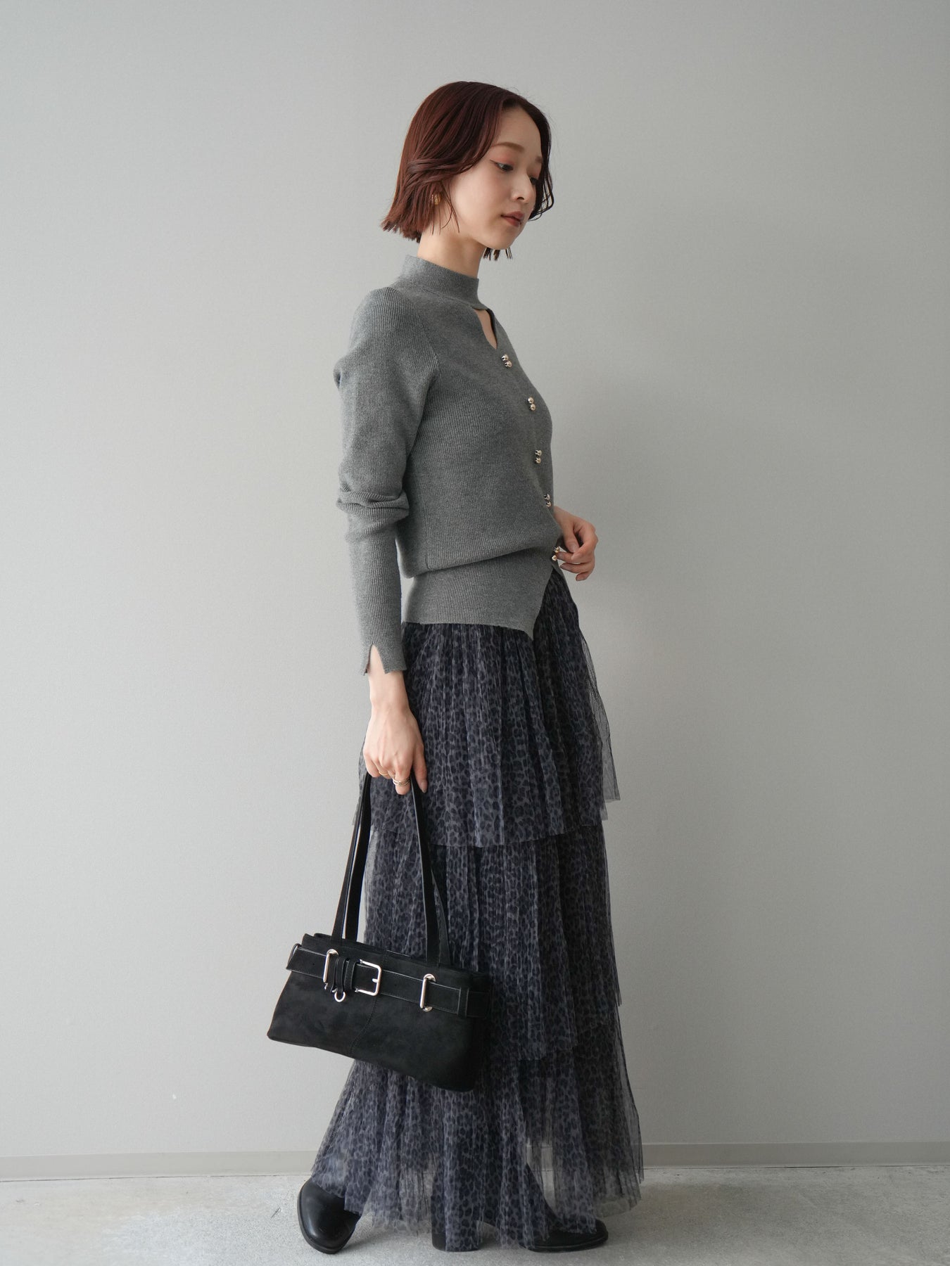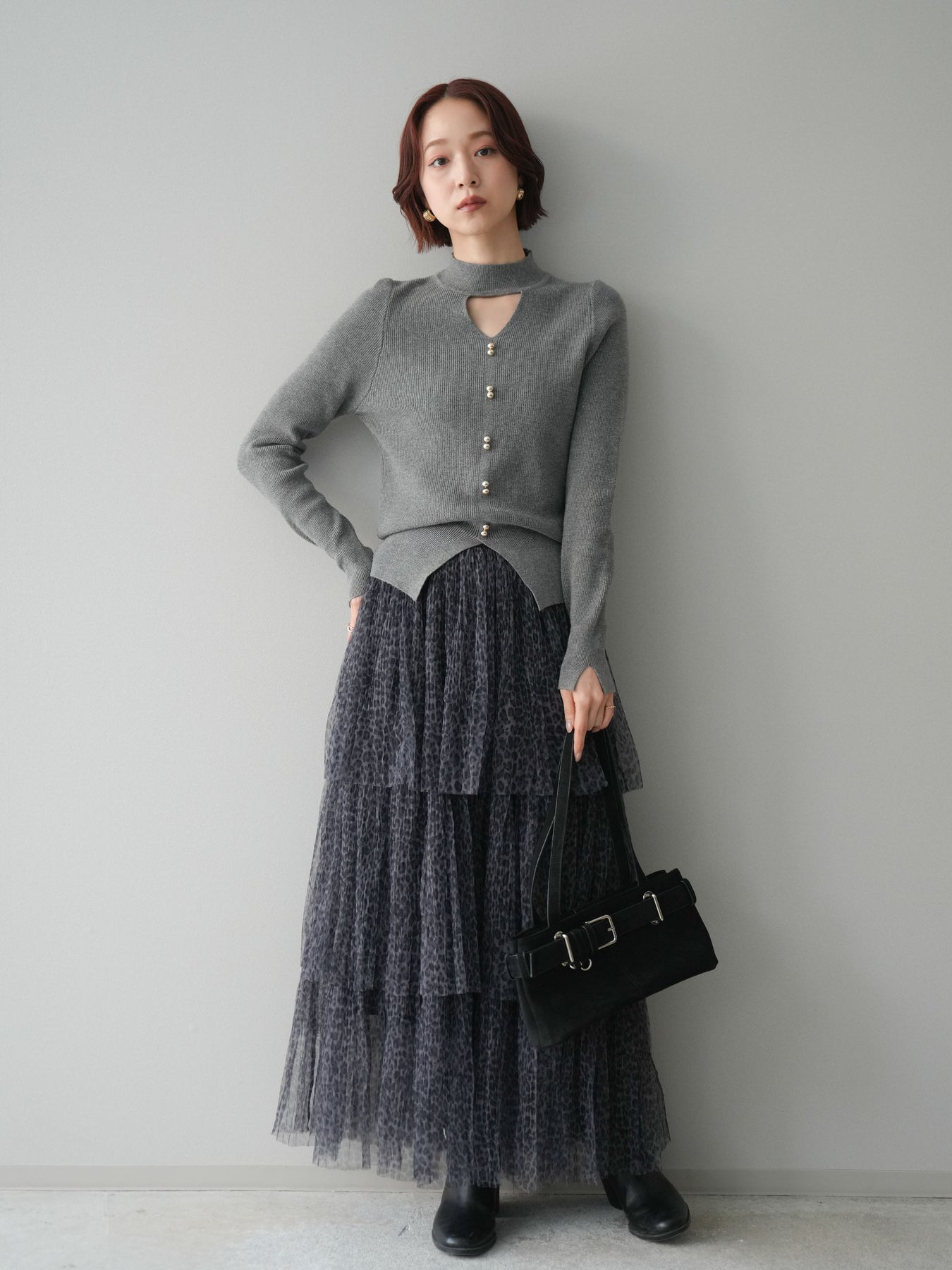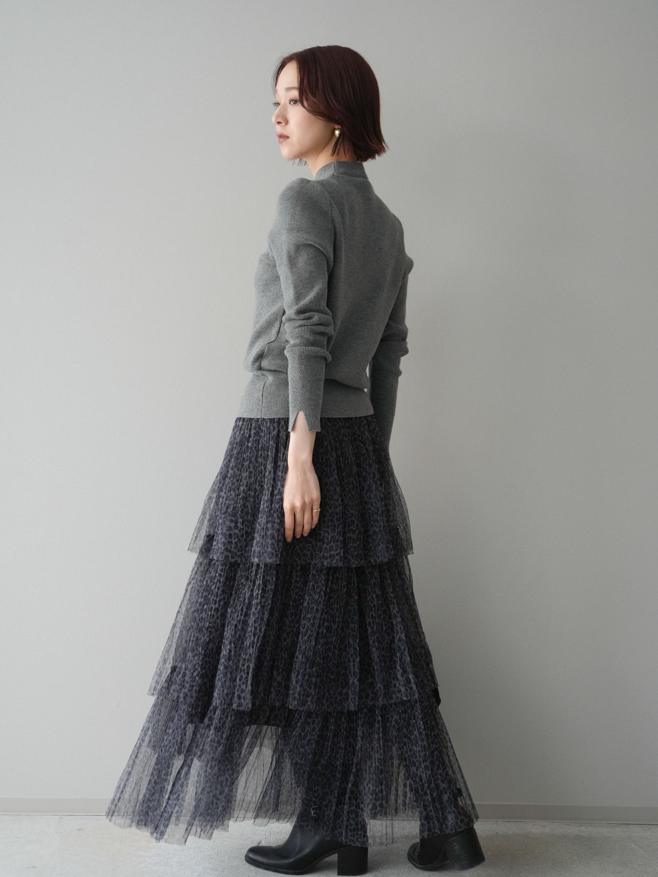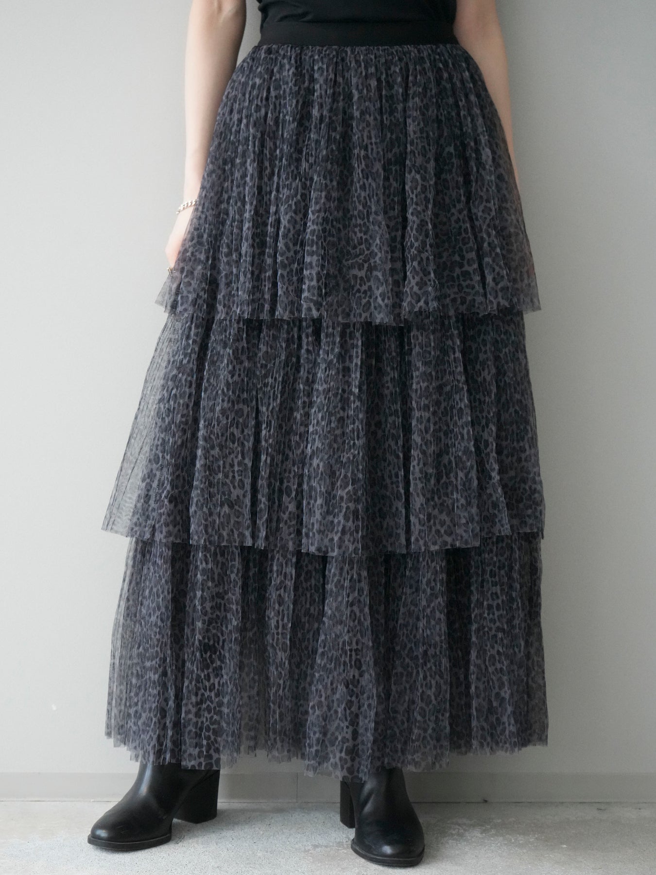 [予約]レオパード柄チュールフリルスカート/gray